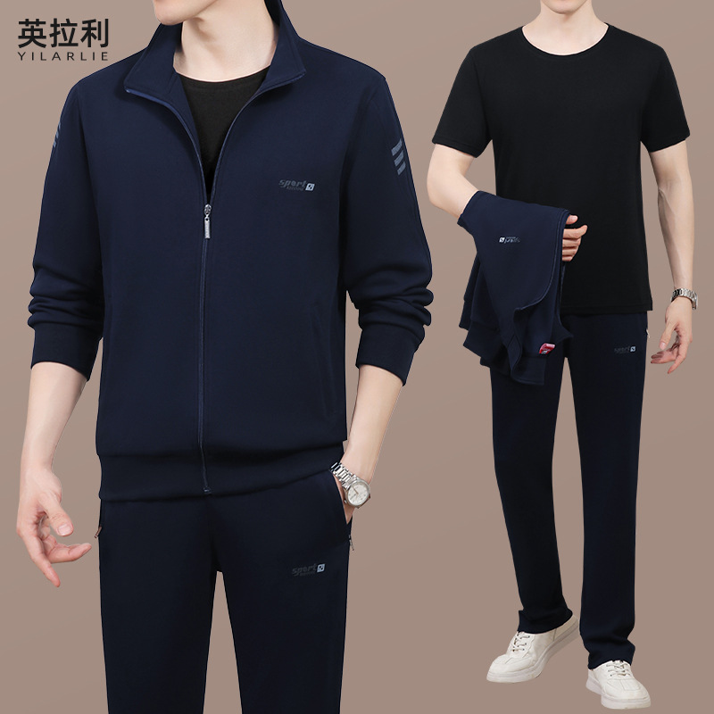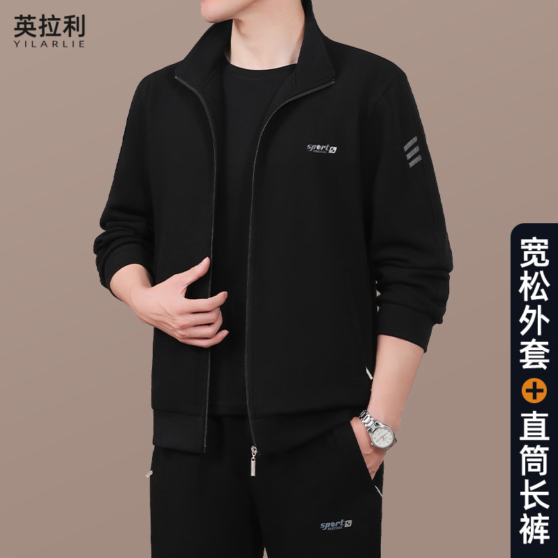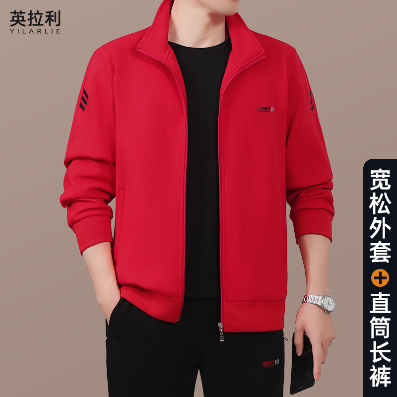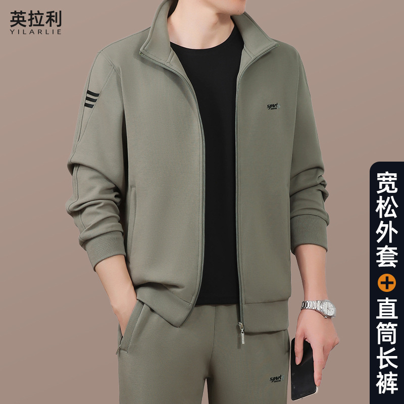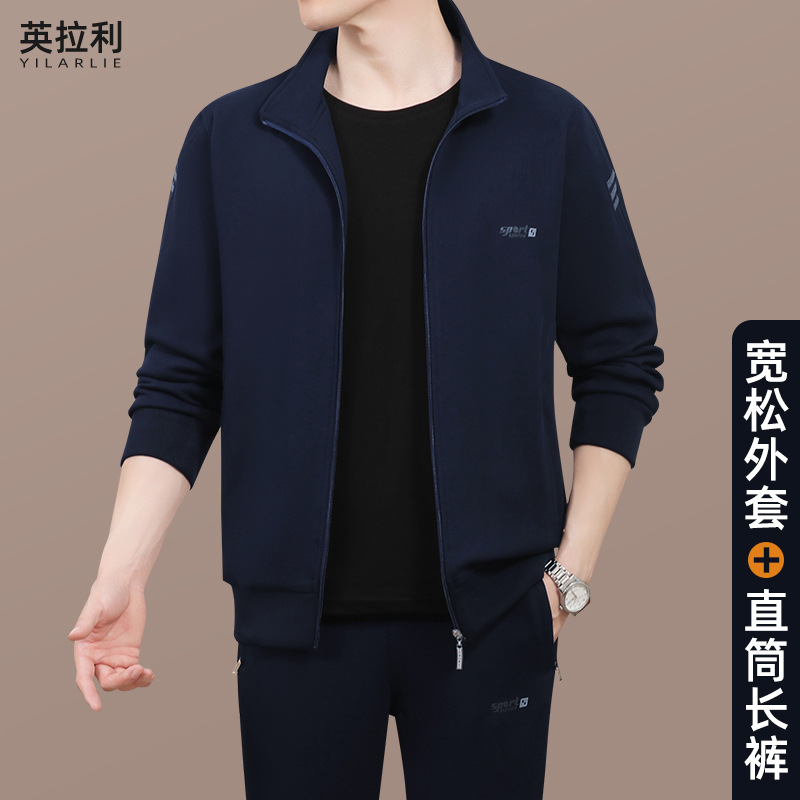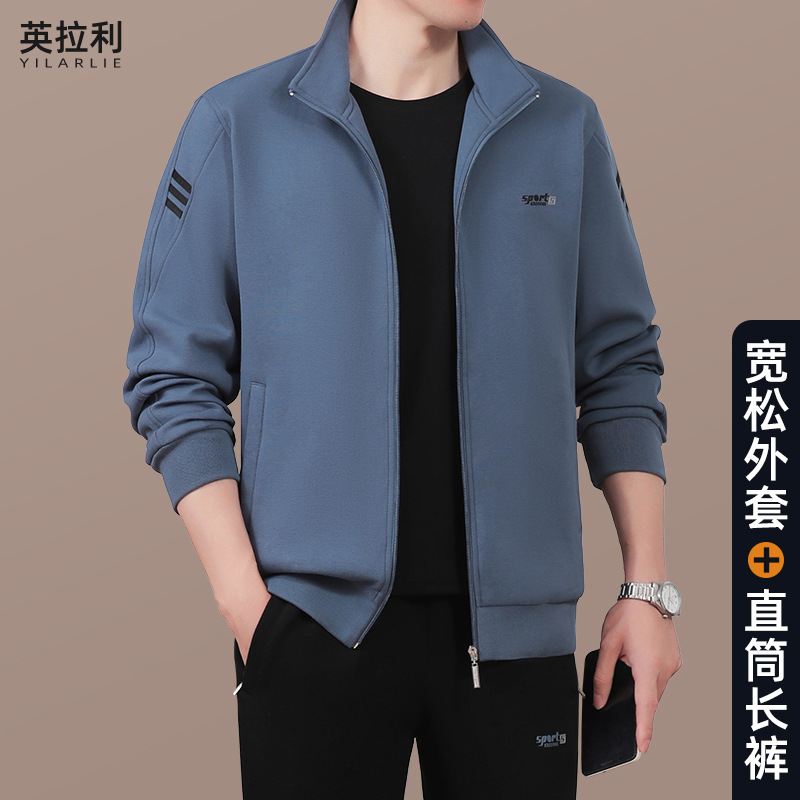 고급 중년 남성 스포츠 세트 봄 새로운 패션 캐주얼 아빠 코트 중년 세트 남성 봄과 가을스토어 가기
