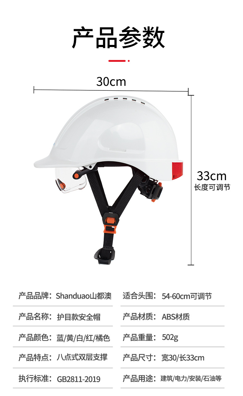 안전 헬멧 GB ABS 안티 스매싱 벨트 내시경 고글 방진 스플래시 방지 통기성 건설 현장 두꺼운 인쇄