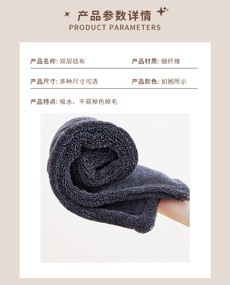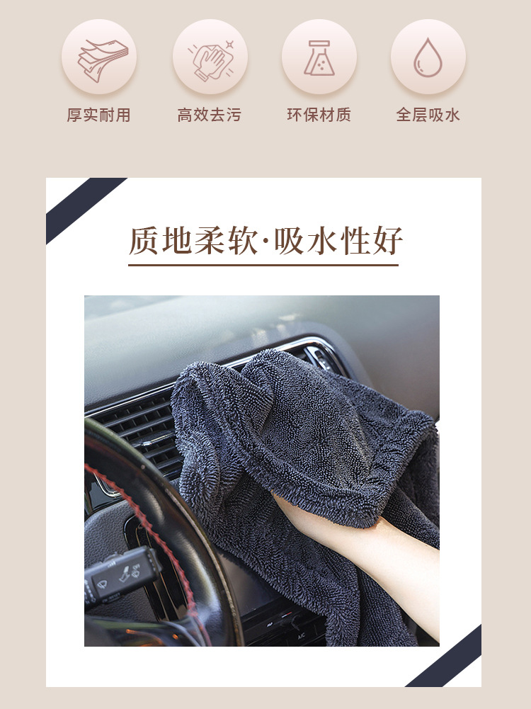 테무 크로스보더 양면 꼬임 타월 흡수성 타월 자동차 닦는 천 세차용 두꺼운 자동차 걸레