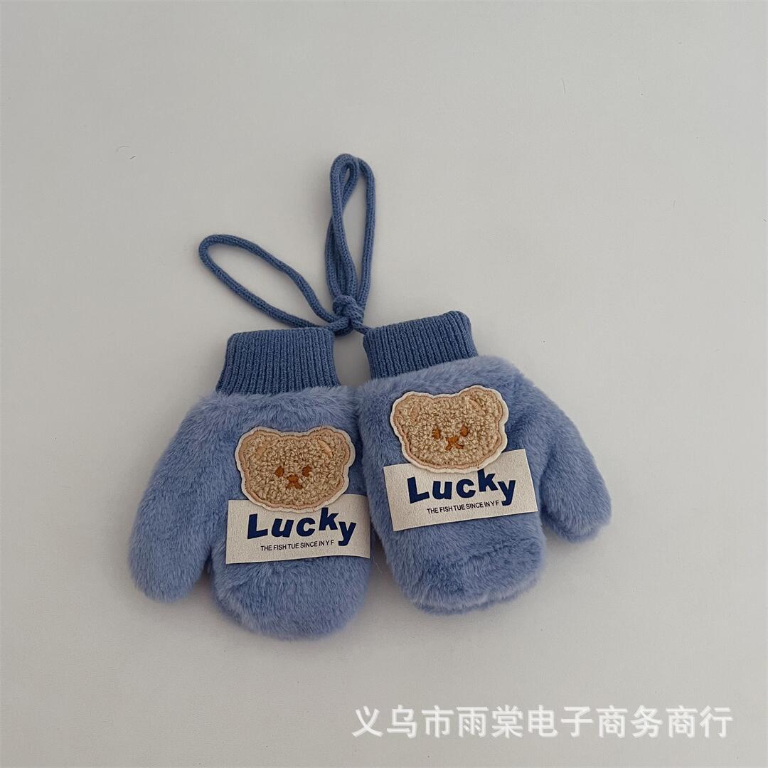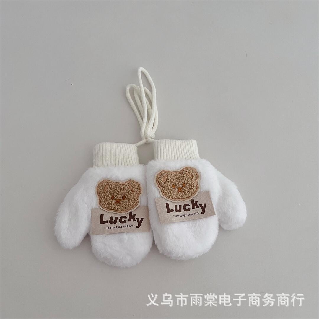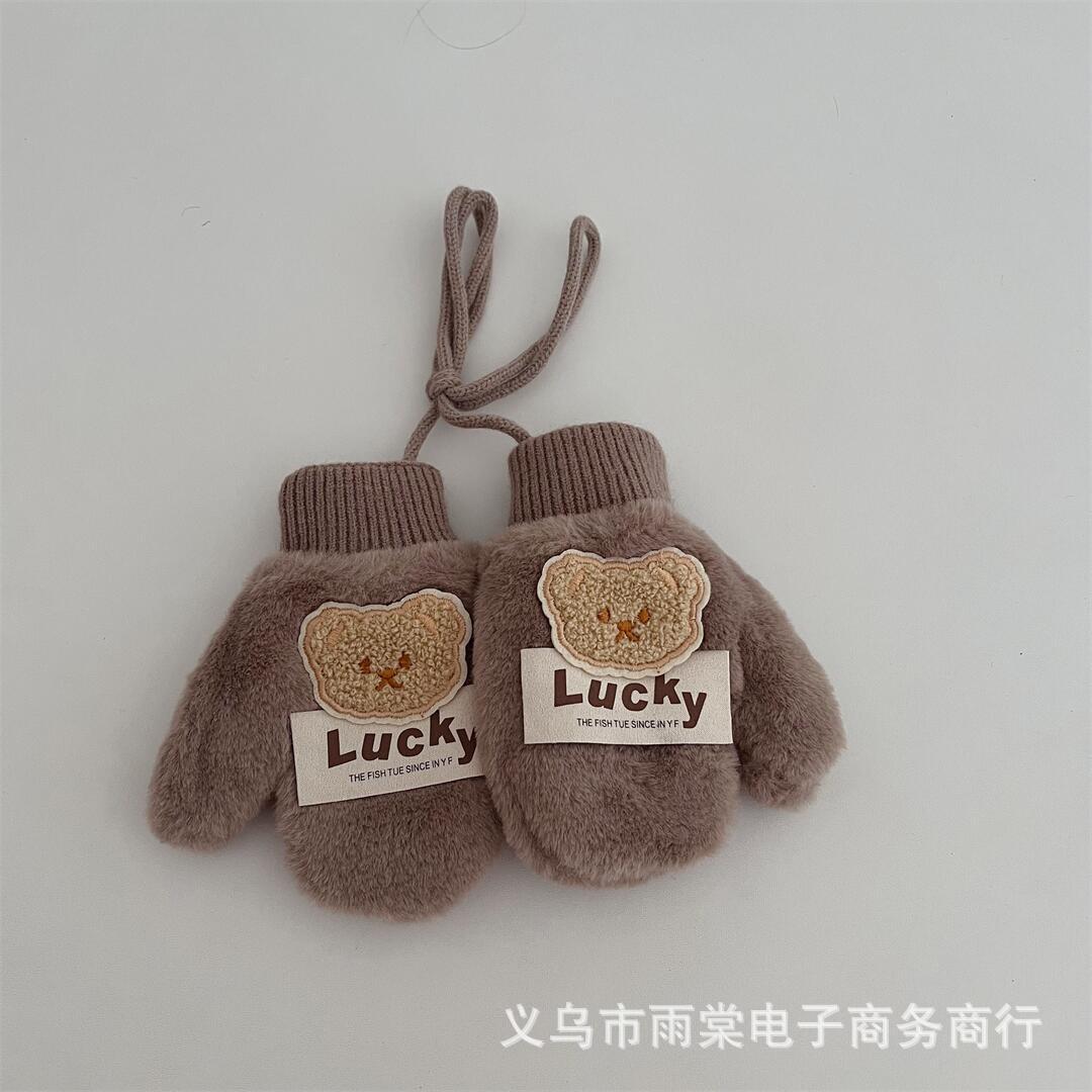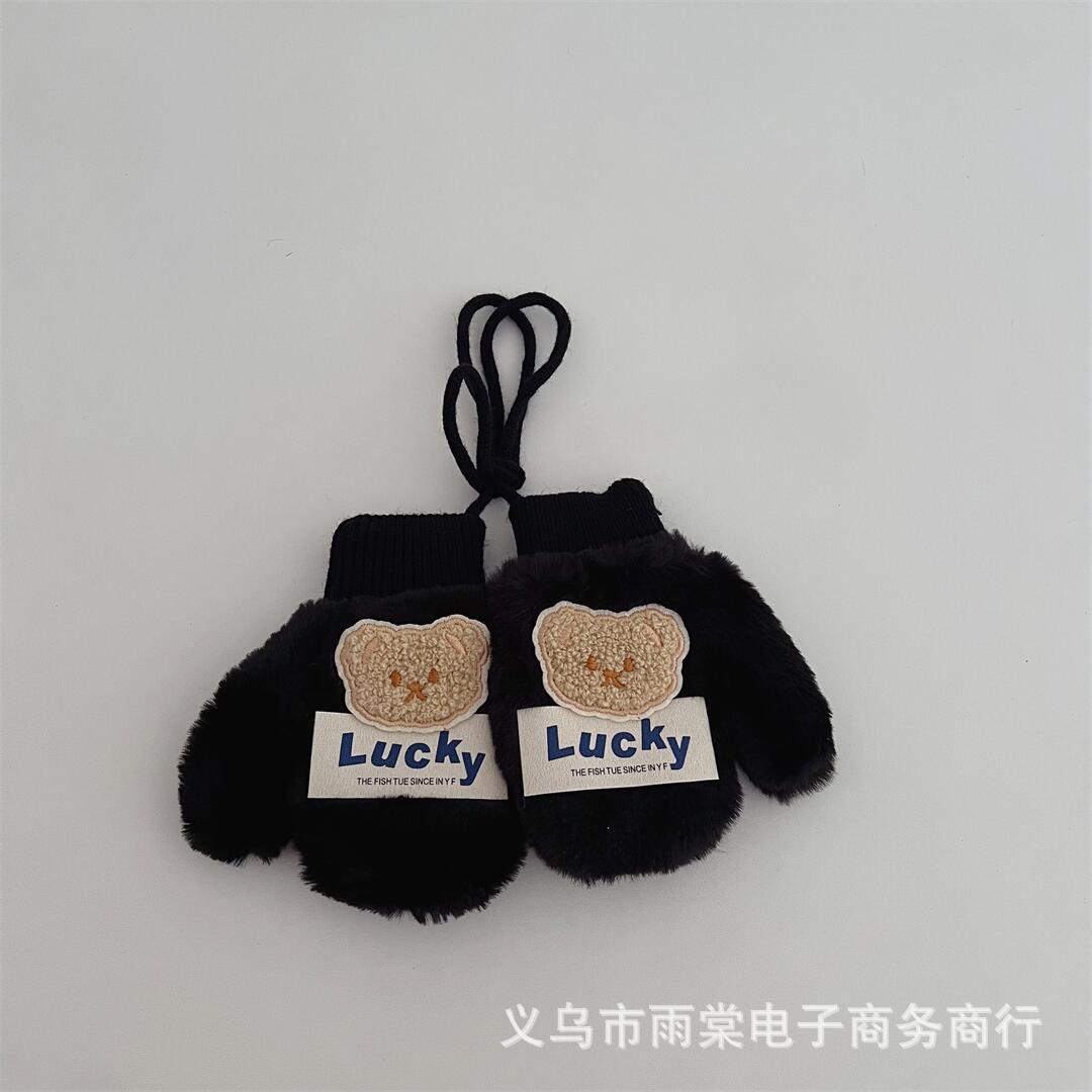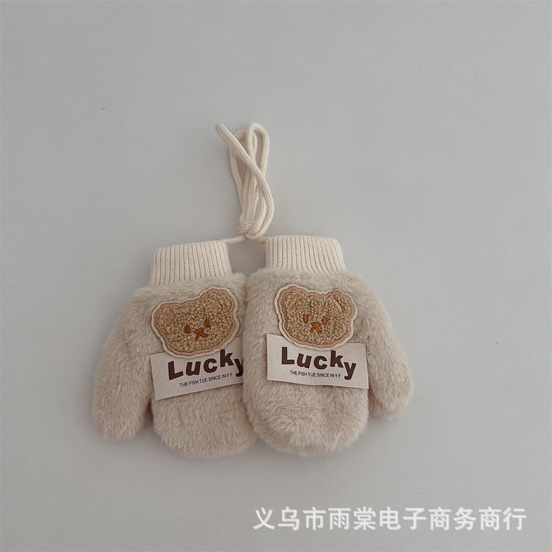 어린이 장갑 겨울 새로운 소년과 소녀 아기 만화 곰 편지 라벨 봉제 따뜻한 목 교수형 장갑