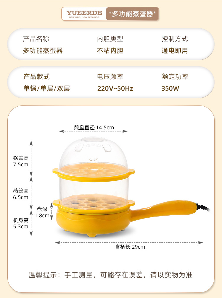 Yuetsi 직접 공급 플러그인 오믈렛 아티팩트 기숙사 미니 프라이팬 다기능 이중층 계란 기선스토어 가기