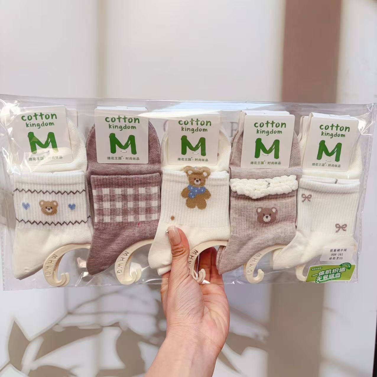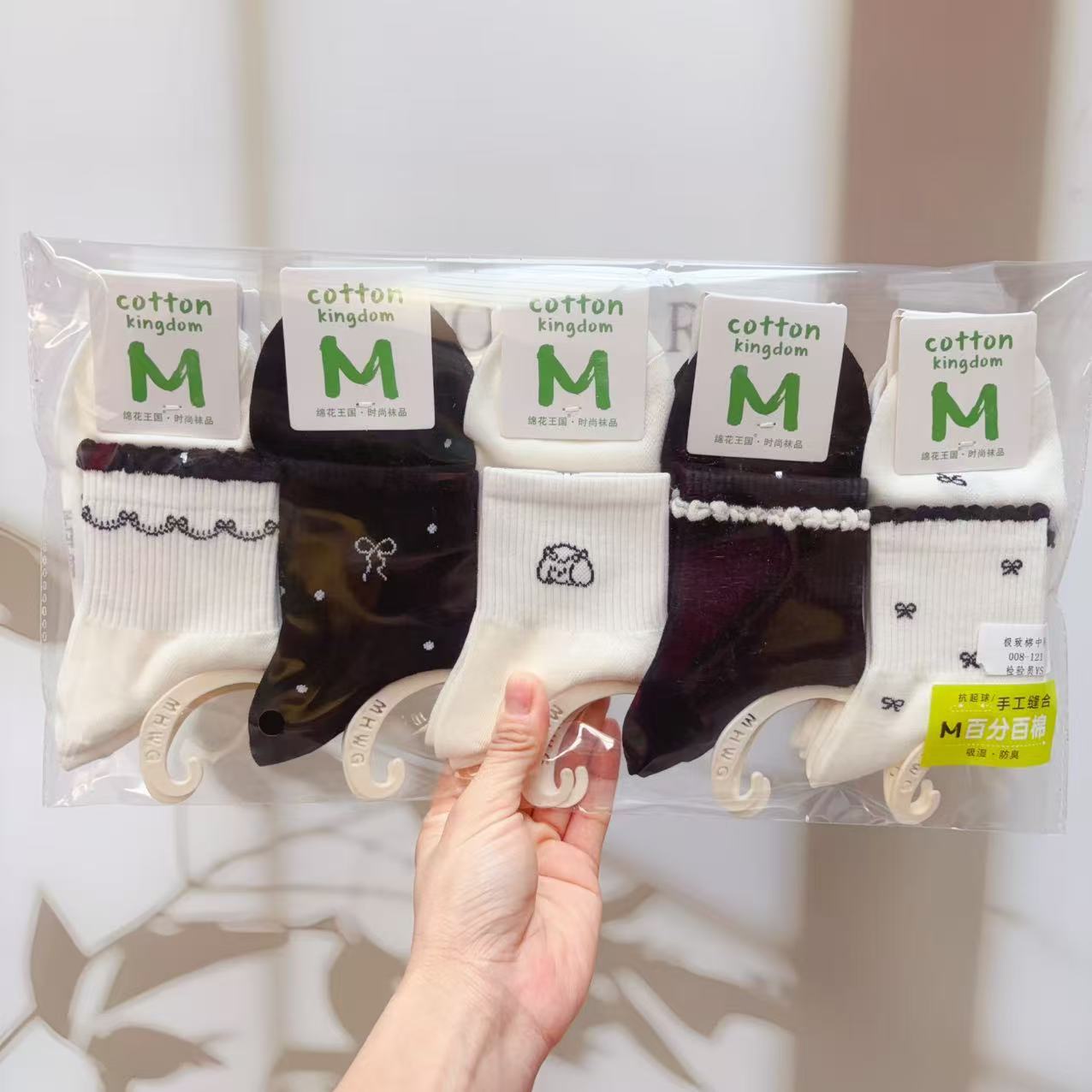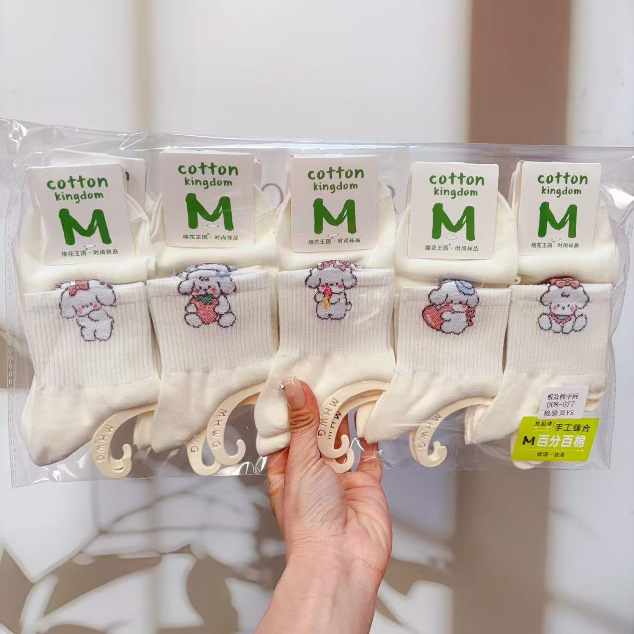 Cotton Kingdom 가을, 겨울 새로운 여성 중간 튜브 양말 만화 여성 양말 일본 대학 스타일 한국 스타일 학생면 양말스토어 가기