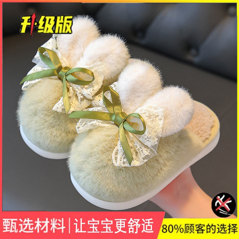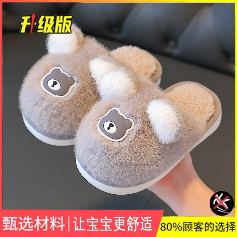 어린이 면화 슬리퍼 겨울 소녀 소년 어린이 아기 면화 슬리퍼 미끄럼 방지 실내 집 어린이 모피 신발
