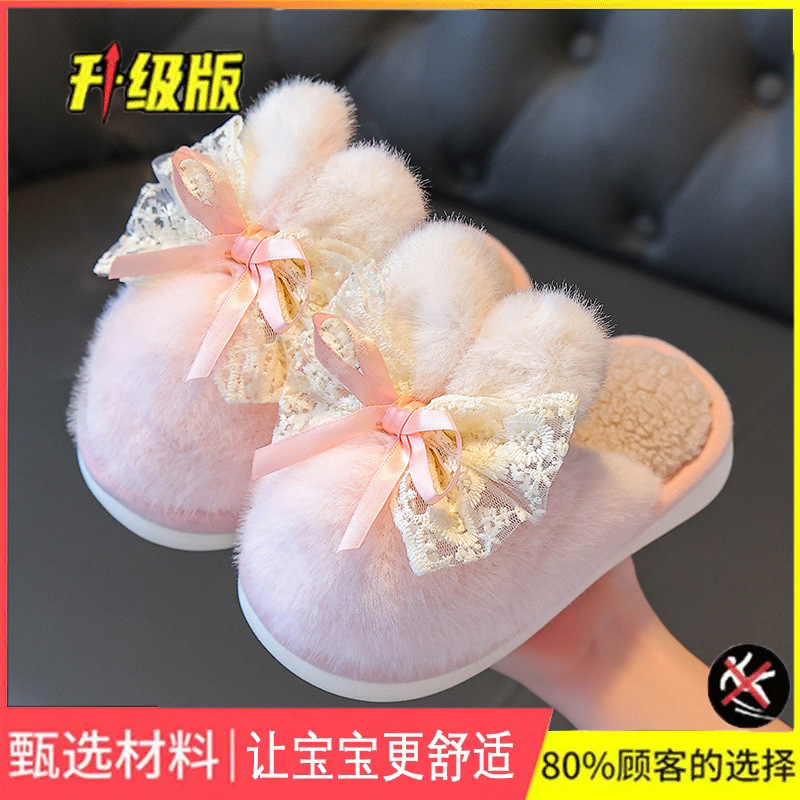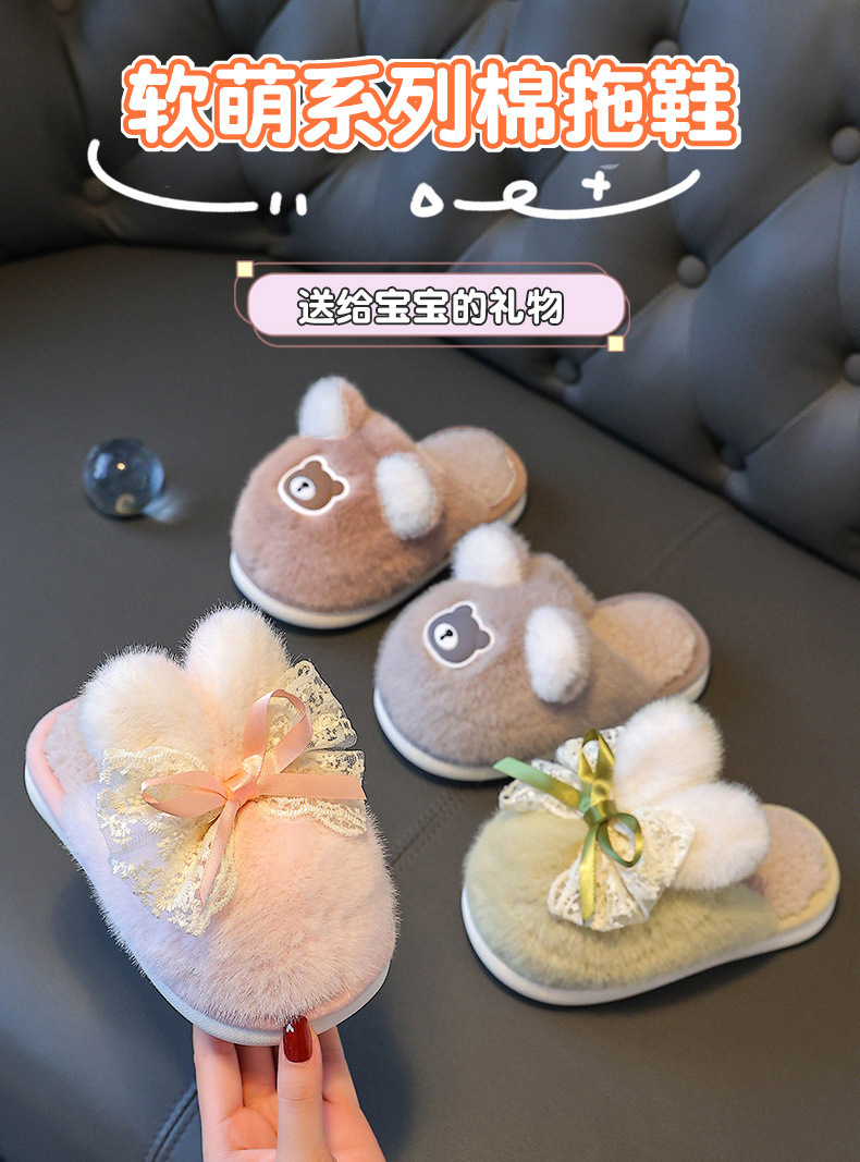 어린이 면화 슬리퍼 겨울 소녀 소년 어린이 아기 면화 슬리퍼 미끄럼 방지 실내 집 어린이 모피 신발스토어 가기