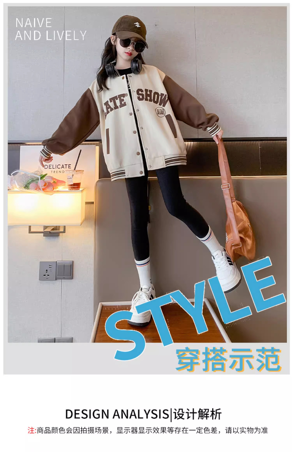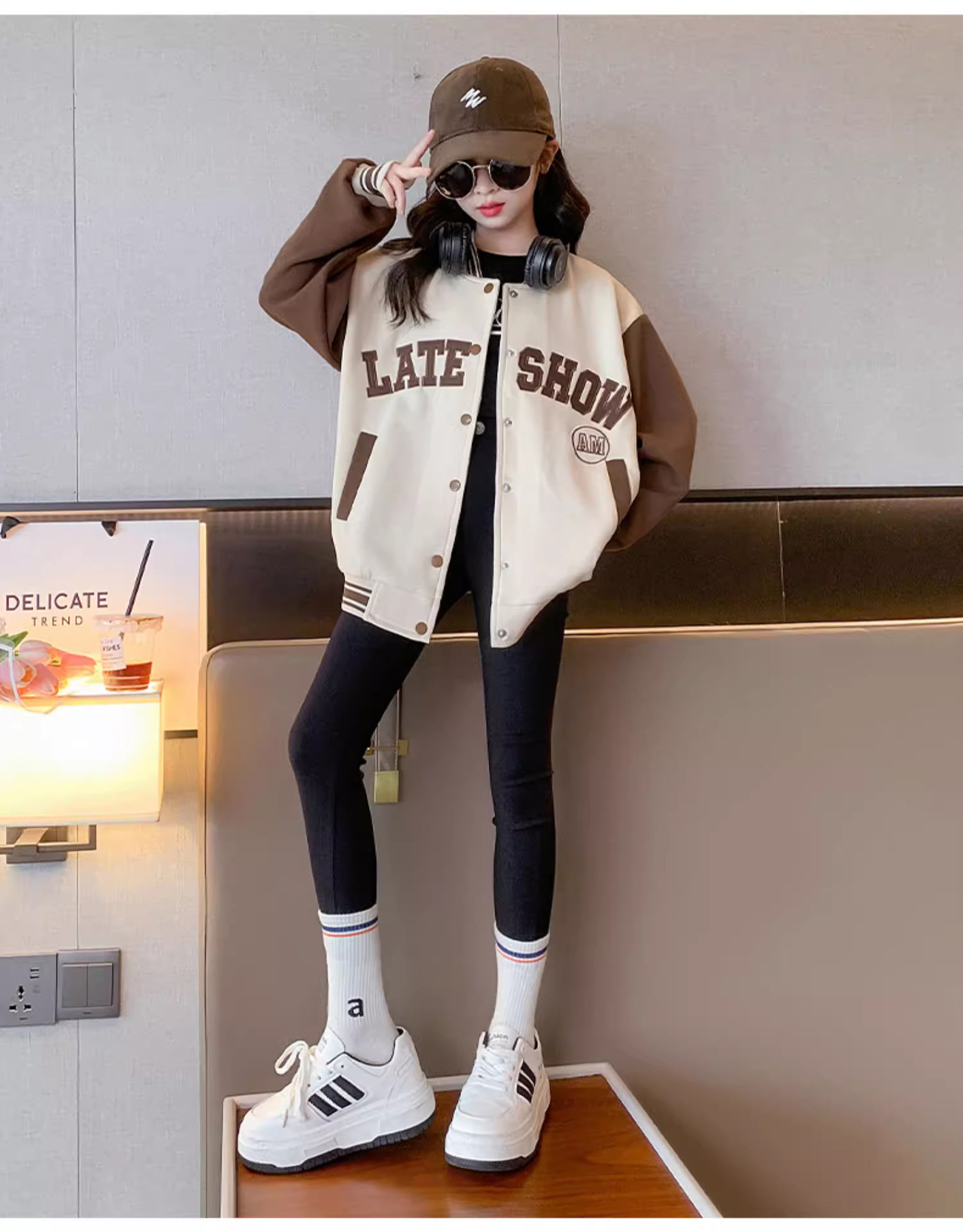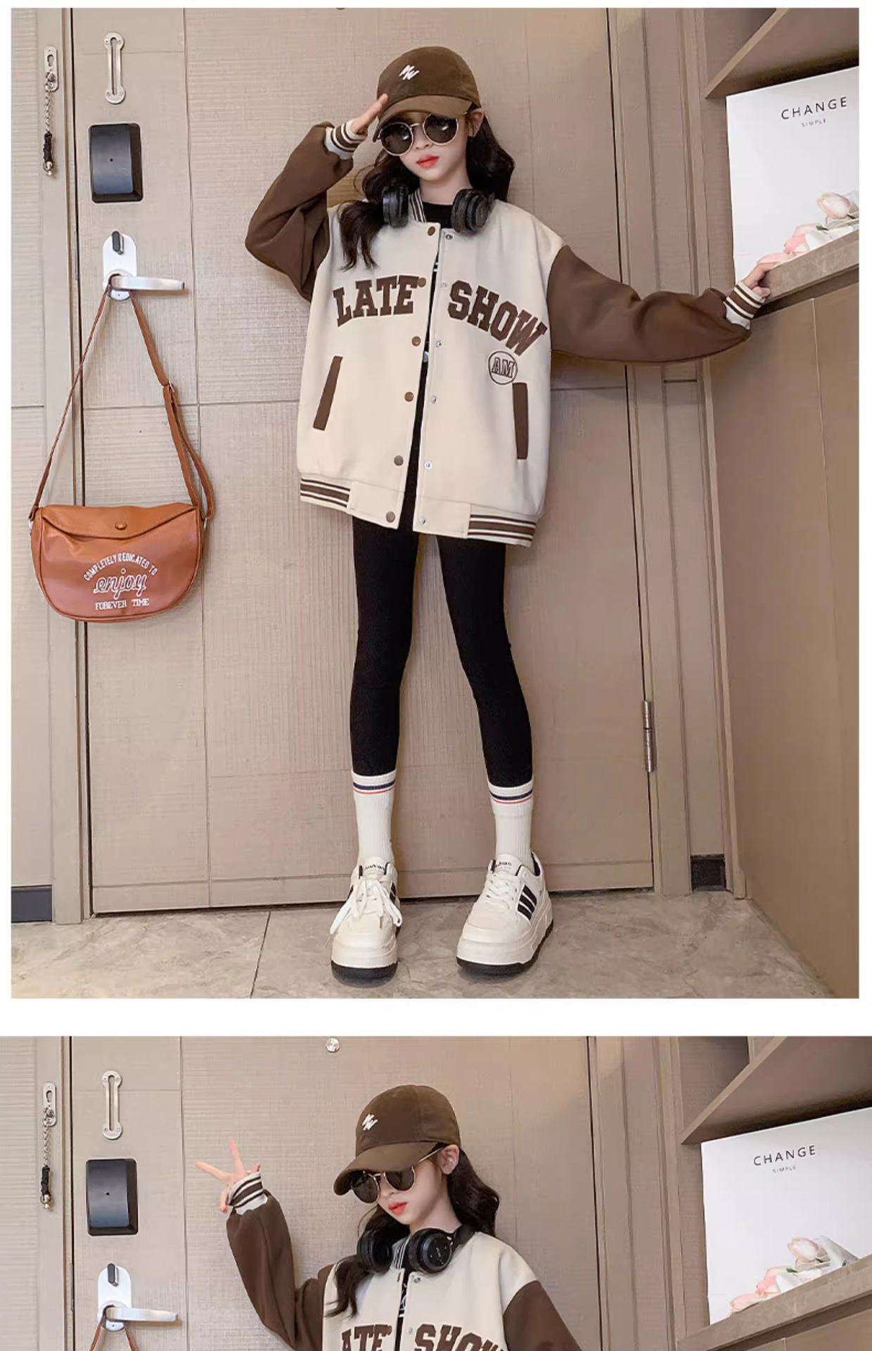 소녀 가을 야구 세트 코트 2024 새로운 소녀 큰 아이 스포츠 코트 어린이 봄과 가을 재킷 탑스토어 가기