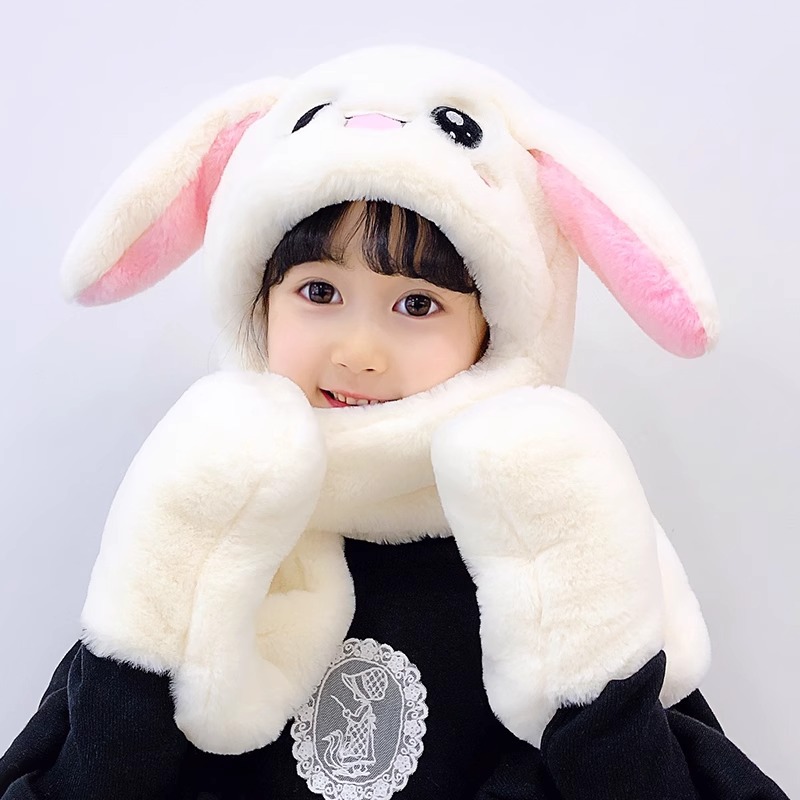 어린이 모자와 스카프 통합 가을과 겨울 토끼 귀 이동 소녀 귀여운 3 조각 세트 소년 소녀 아기 스카프