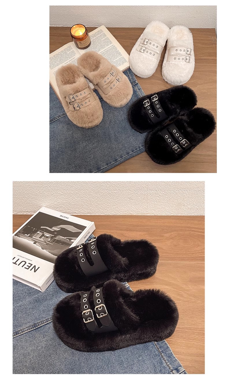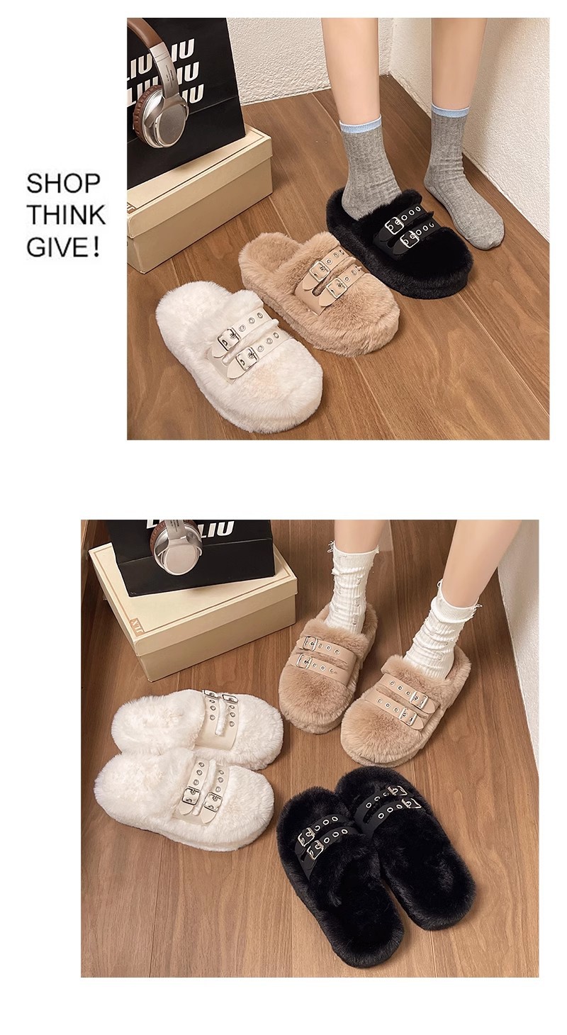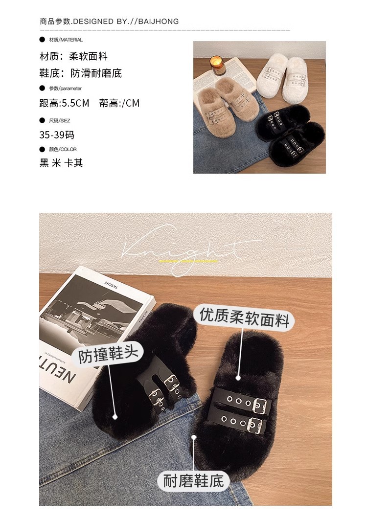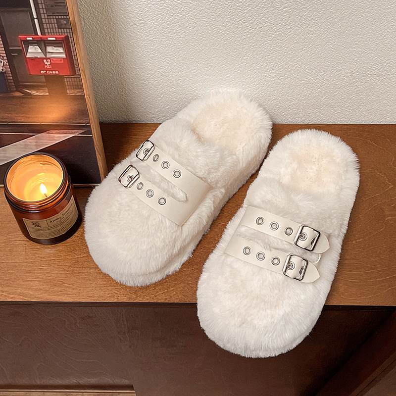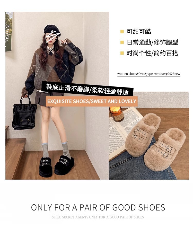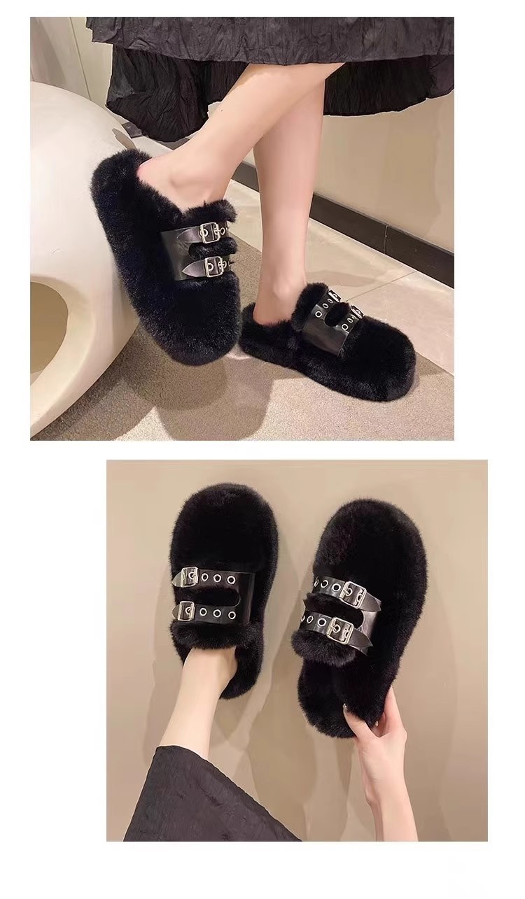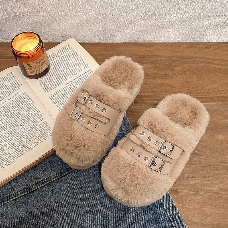 니치 하이 엔드 패션 Baotou Maomao 슬리퍼 여성의 가을과 겨울 2024 새로운 아우터웨어 벨트 버클 바오터우 코튼 슬리퍼