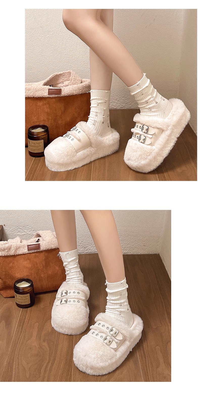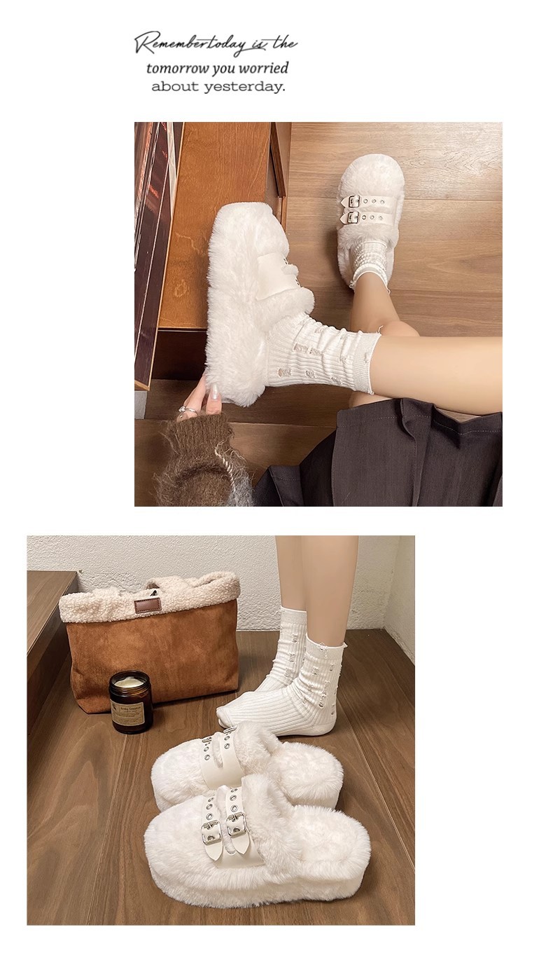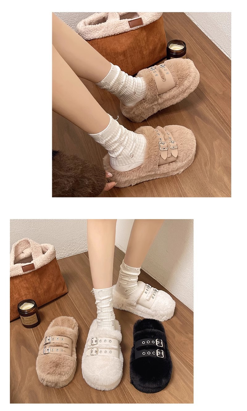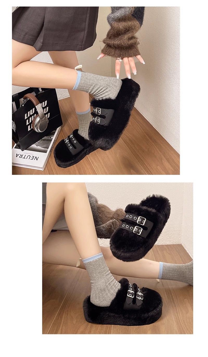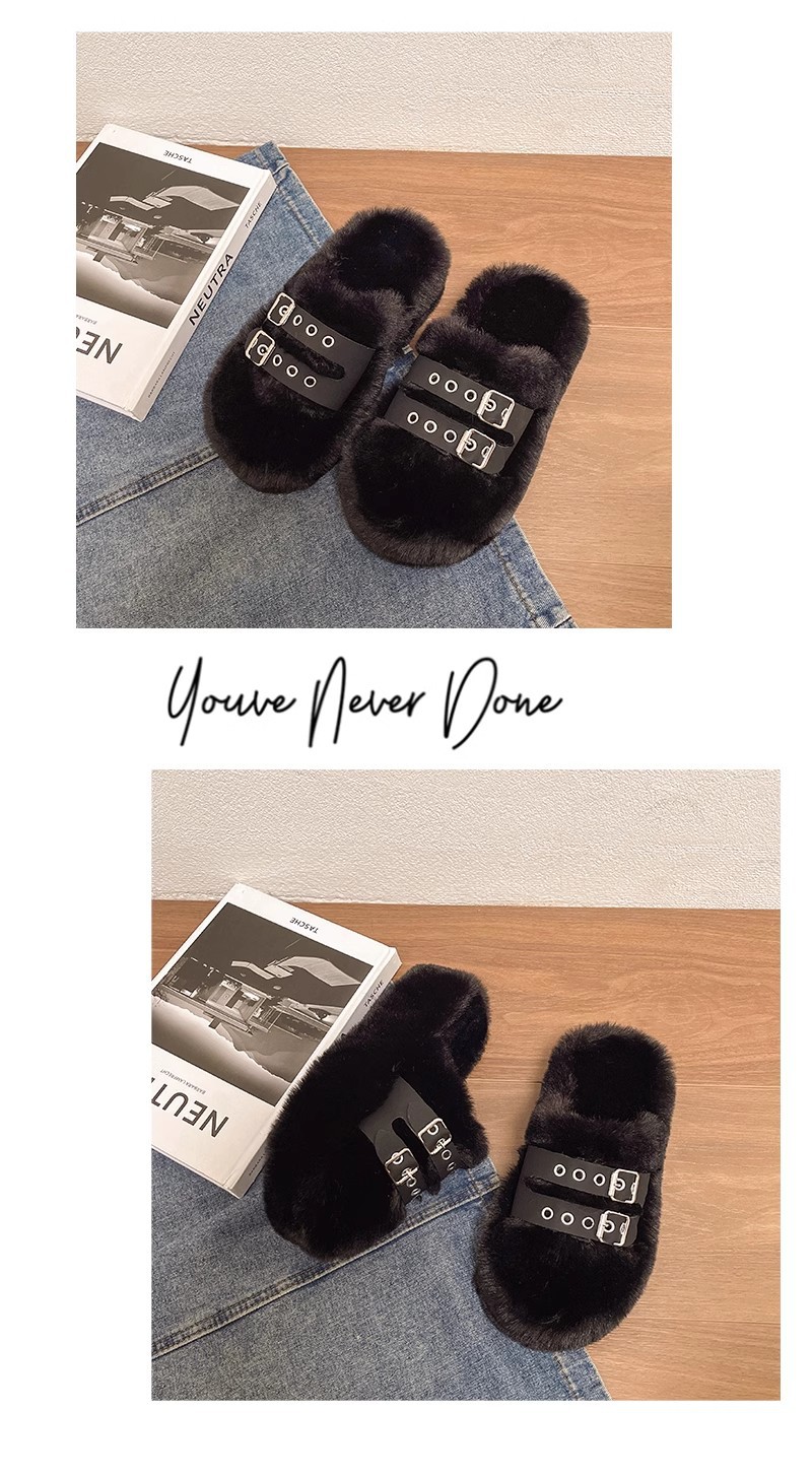 니치 하이 엔드 패션 Baotou Maomao 슬리퍼 여성의 가을과 겨울 2024 새로운 아우터웨어 벨트 버클 바오터우 코튼 슬리퍼