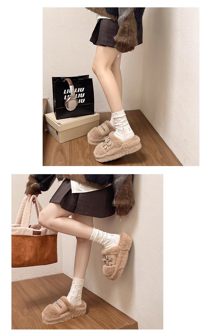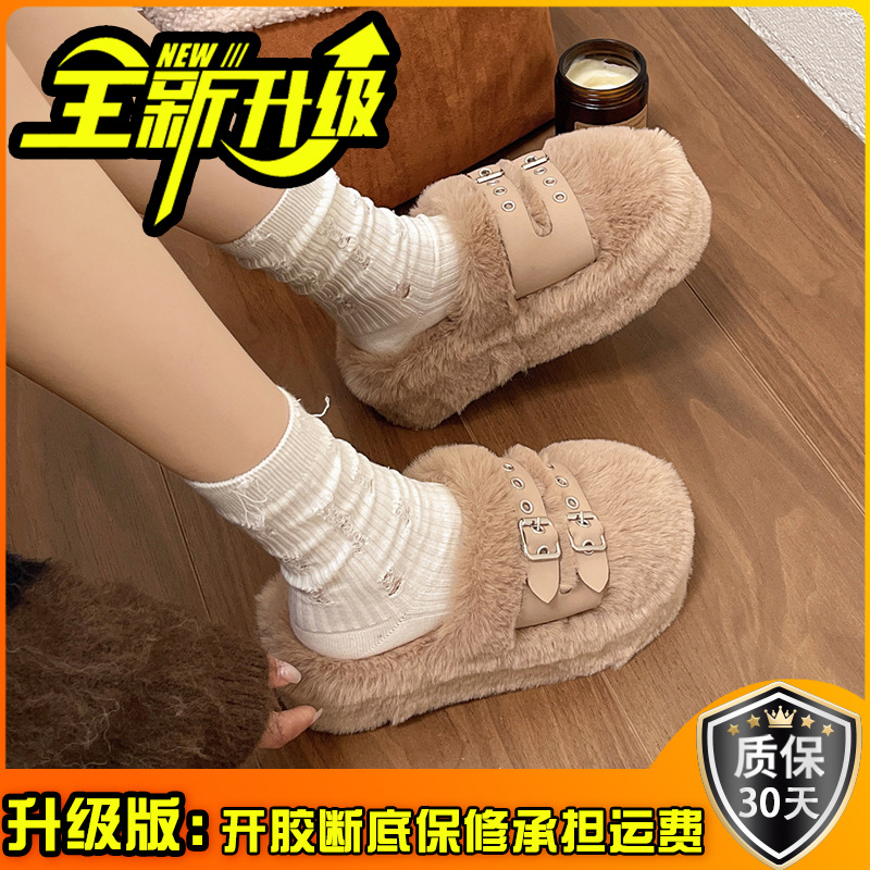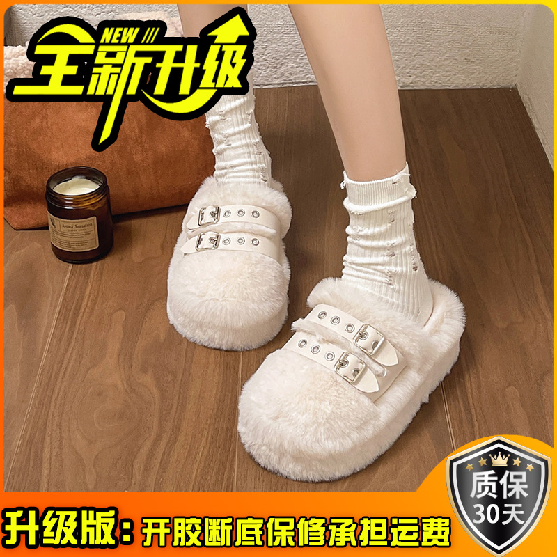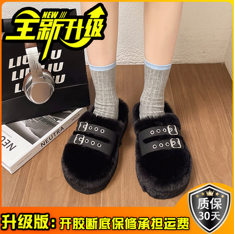 니치 하이 엔드 패션 Baotou Maomao 슬리퍼 여성의 가을과 겨울 2024 새로운 아우터웨어 벨트 버클 바오터우 코튼 슬리퍼스토어 가기