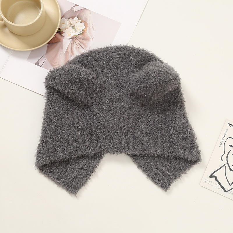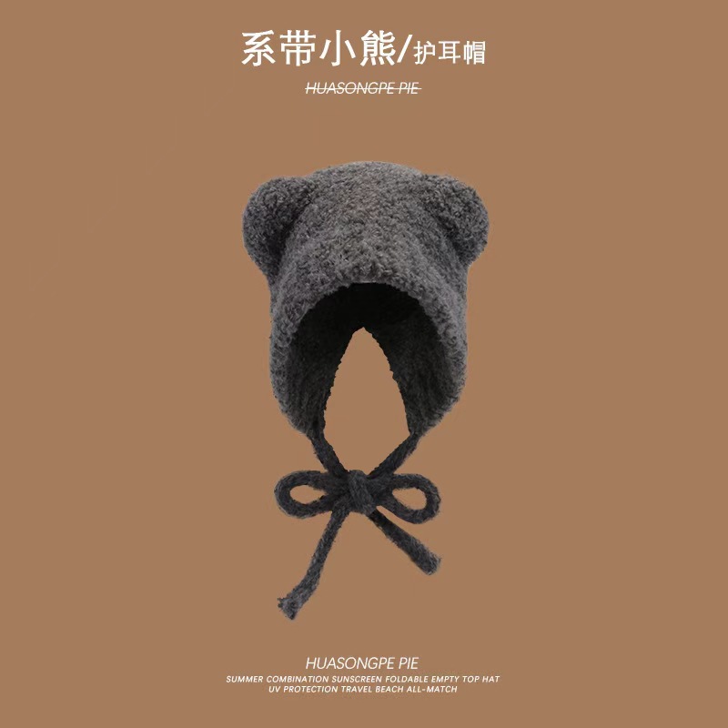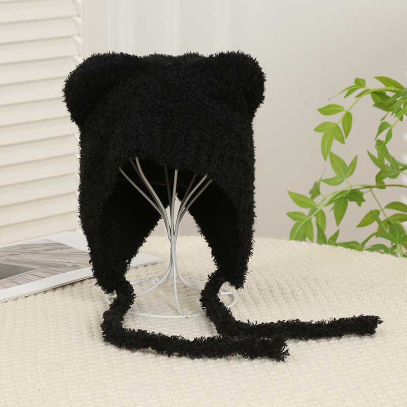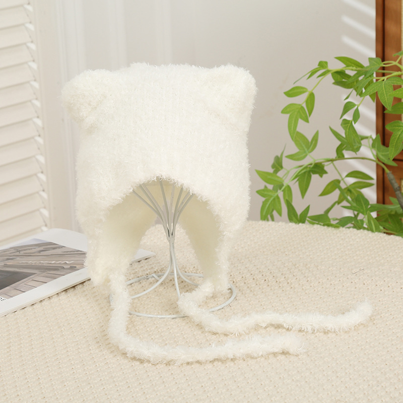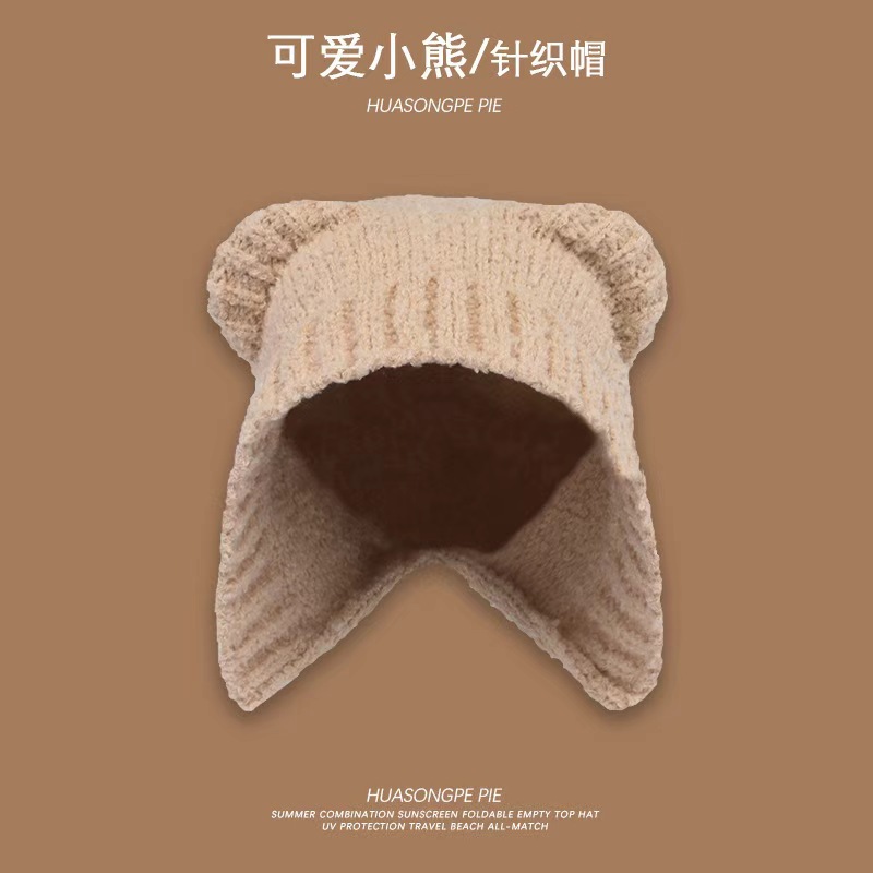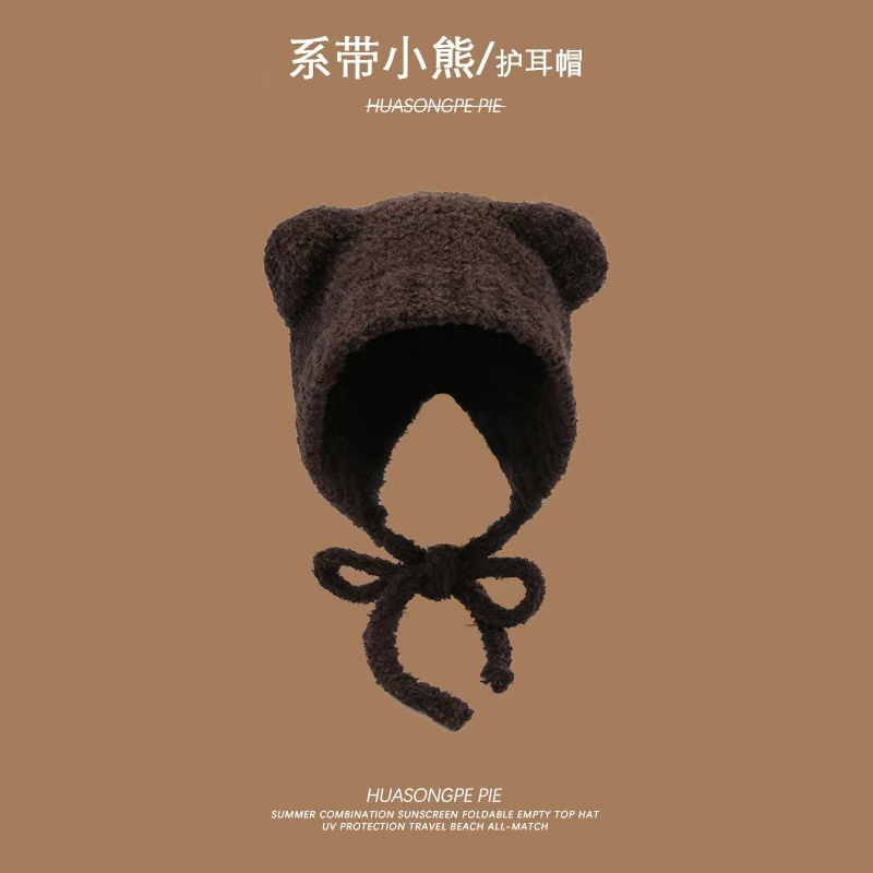 여성을위한 귀여운 곰 귀 모자 겨울 따뜻한 니트 귀 보호 모자 달콤하고 젊은 감기 방지 모직 모자 플러시