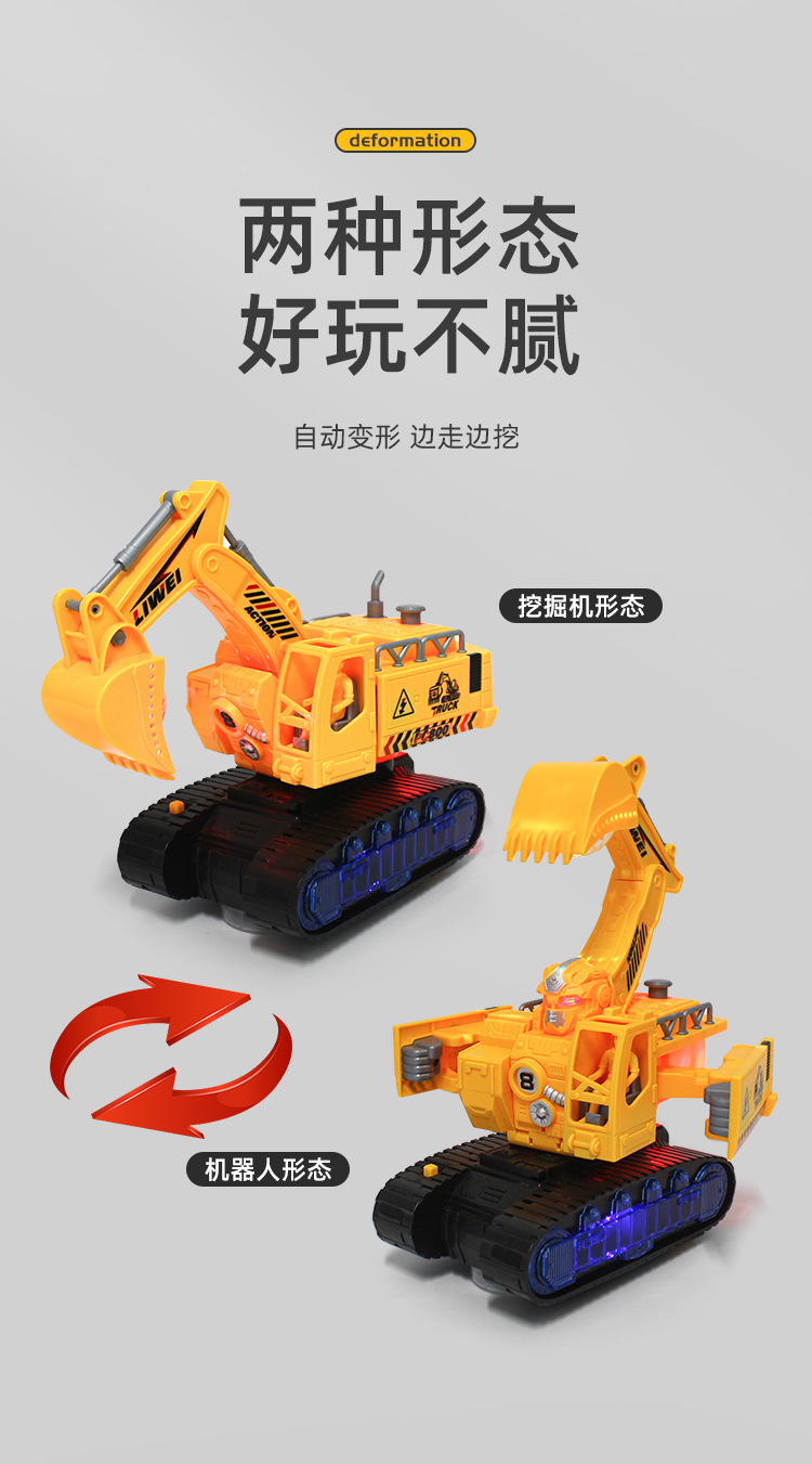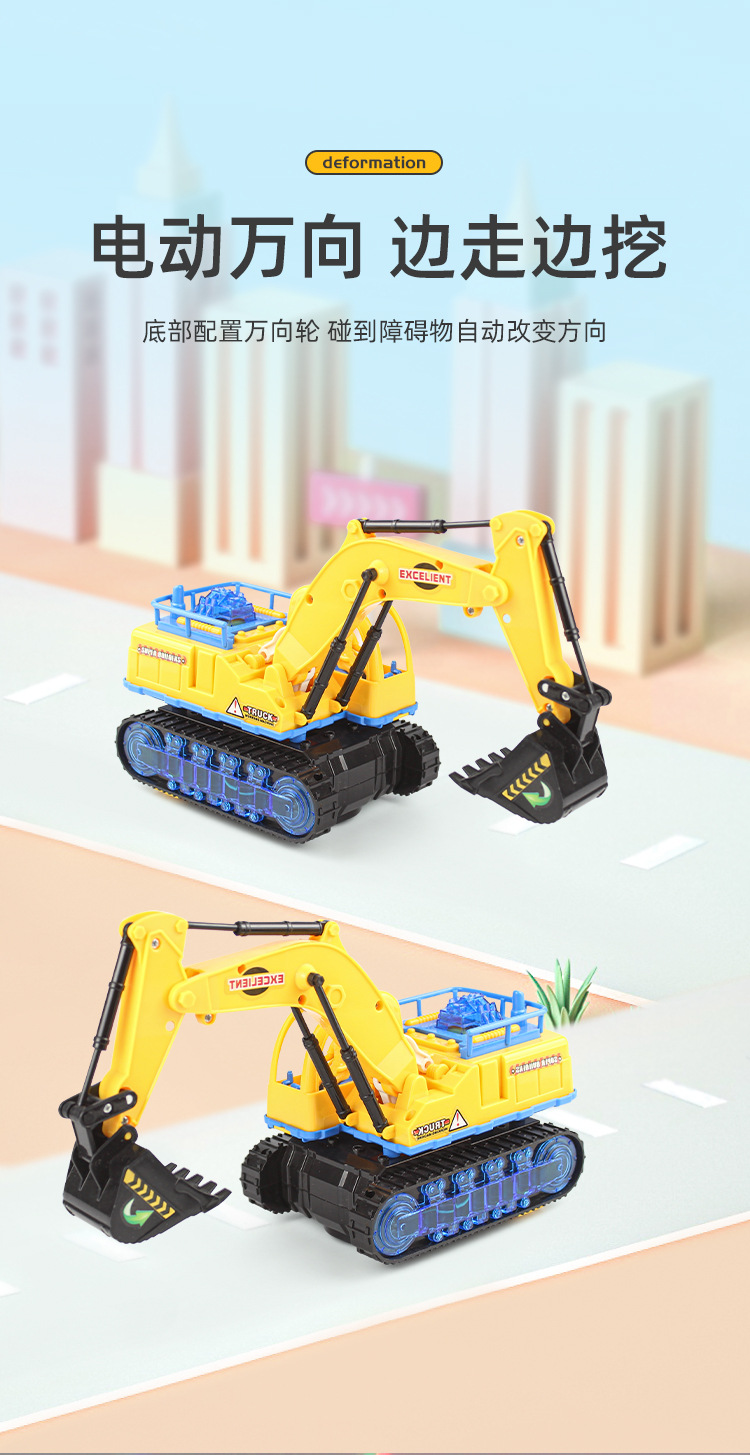 어린이 전기 범용 굴삭기 시리즈 음악 빛 변형 시뮬레이션 엔지니어링 차량 교육 장난감 도매 마구간