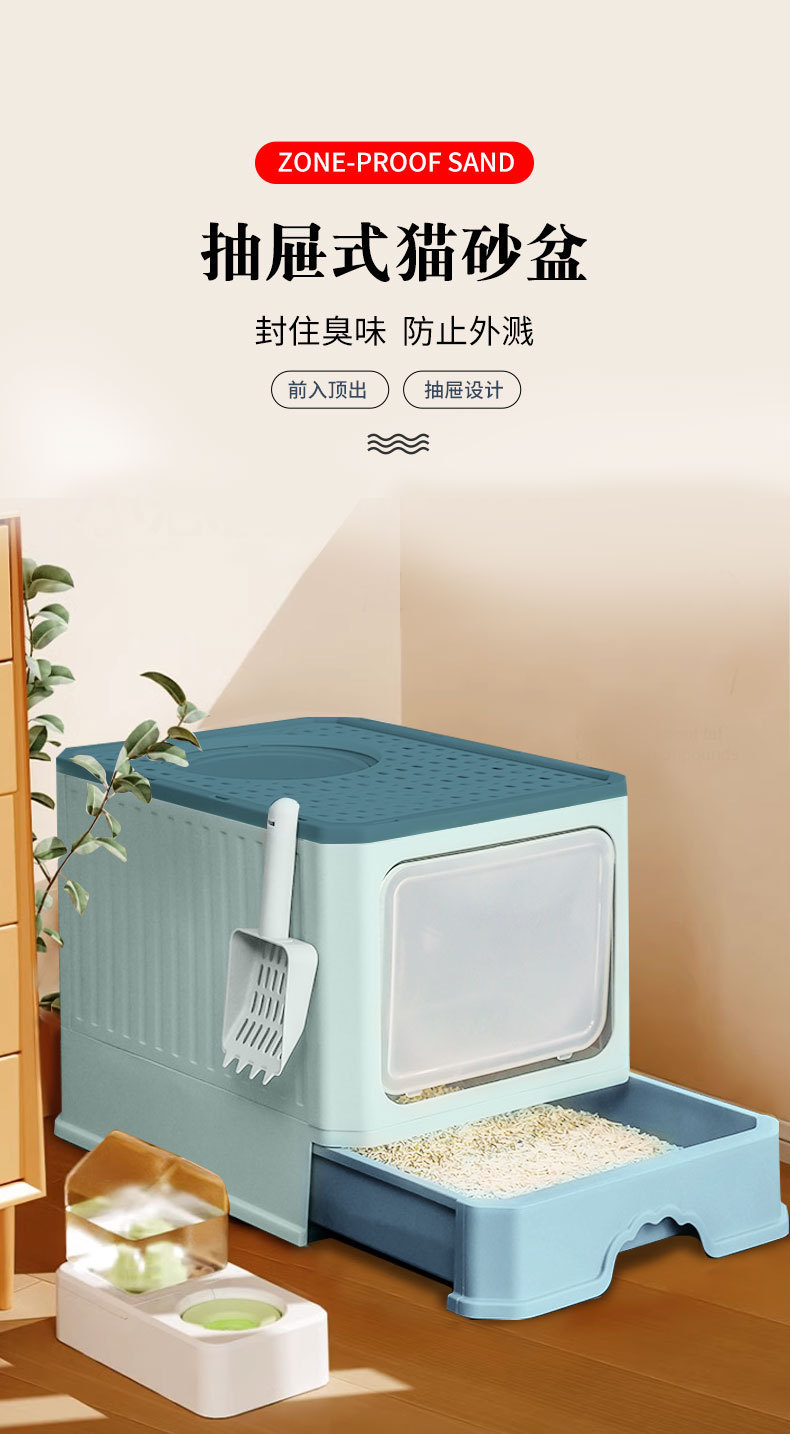 고양이 쓰레기 분지 완전히 밀폐 된 안티 스플래시 대형 접는 냄새 방지 서랍 고양이 화장실 안티 스플래시 고양이 용품스토어 가기
