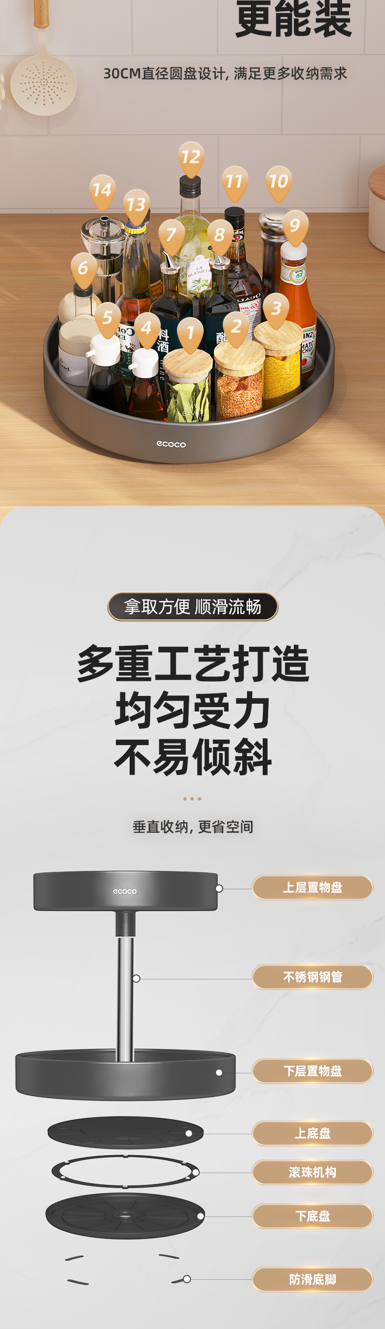 주방 보관 랙 카운터 탑 회전 가능한 조정 가능한 저장 랙 가정용 다기능 오일, 소금, 소스 및 식초 저장 아티팩트스토어 가기