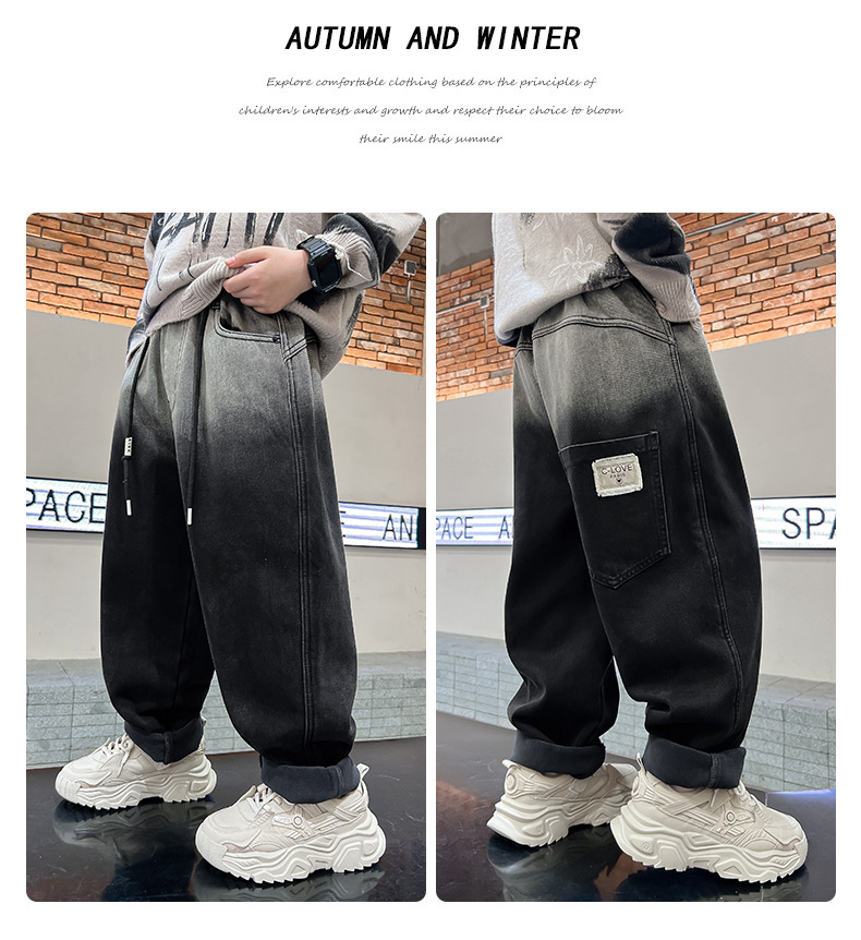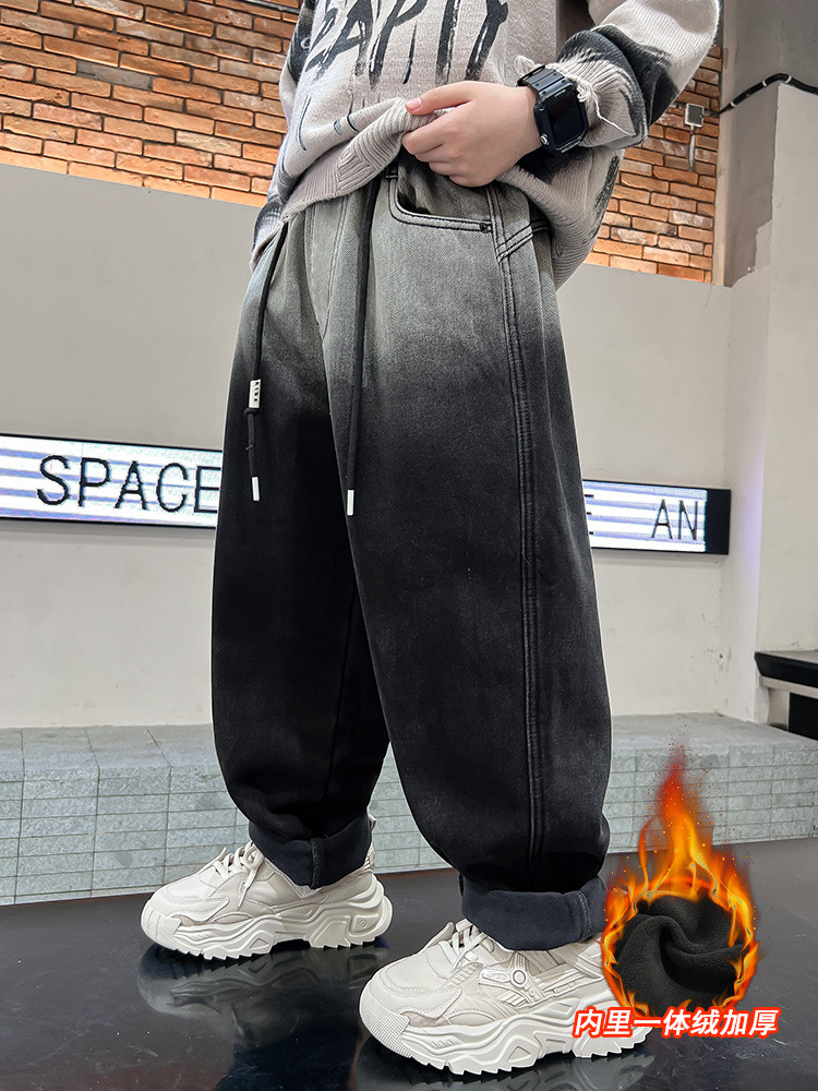 남아용 기모 바지 가을 겨울 올인원 기모 두꺼운 아동용 청바지 남아 겨울 바지 2025 신상 트렌드