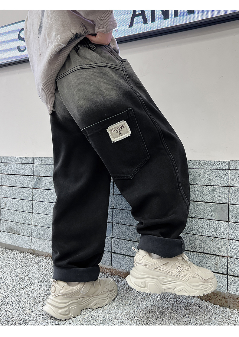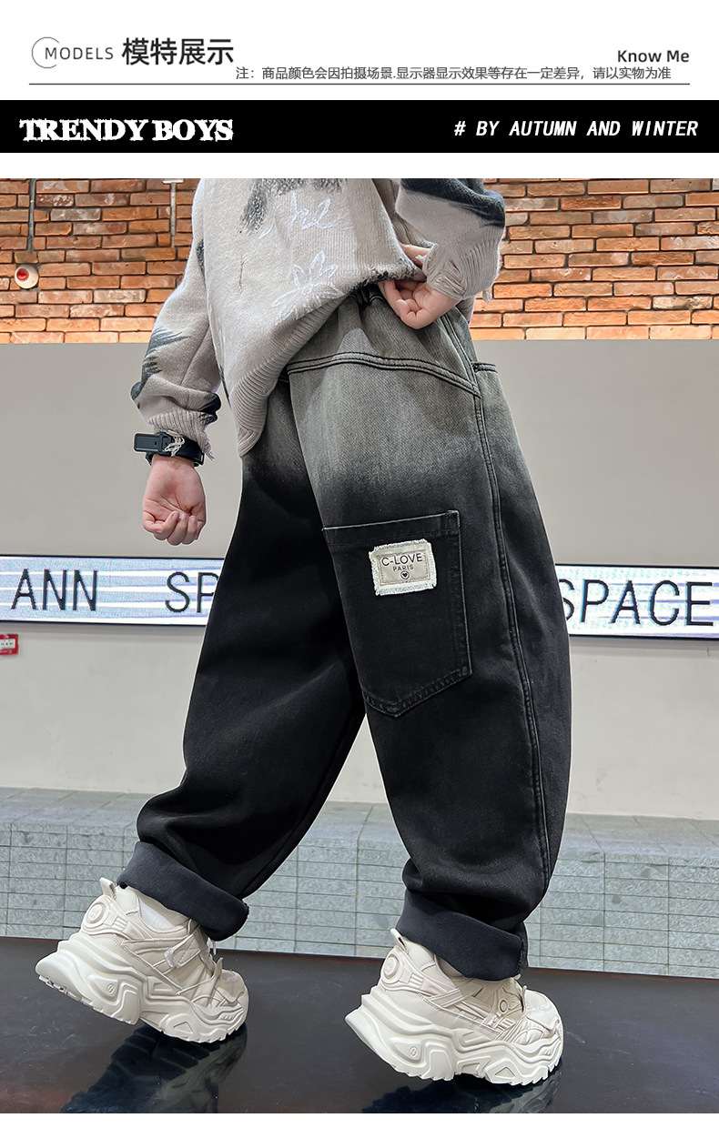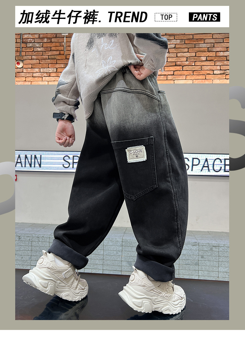 남아용 기모 바지 가을 겨울 올인원 기모 두꺼운 아동용 청바지 남아 겨울 바지 2025 신상 트렌드스토어 가기