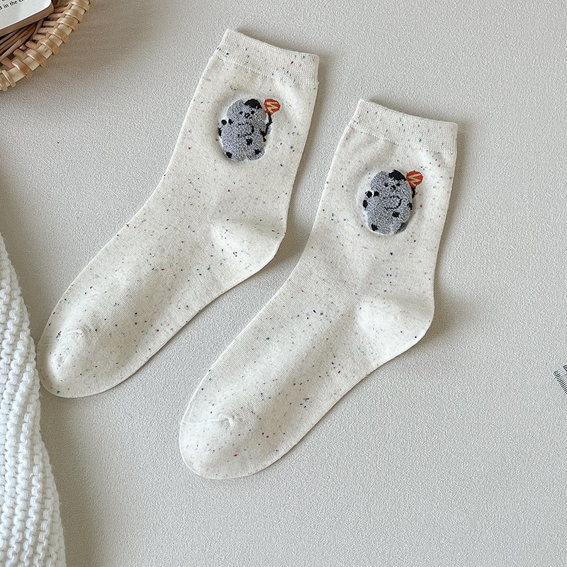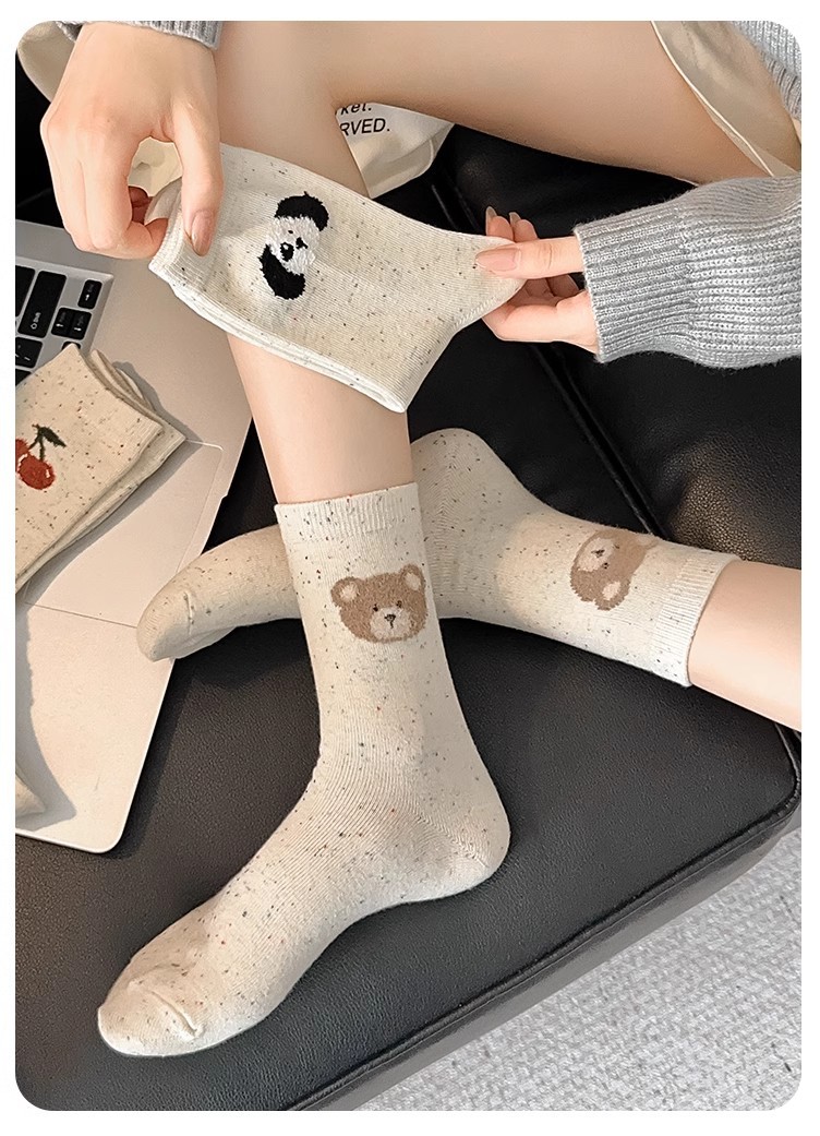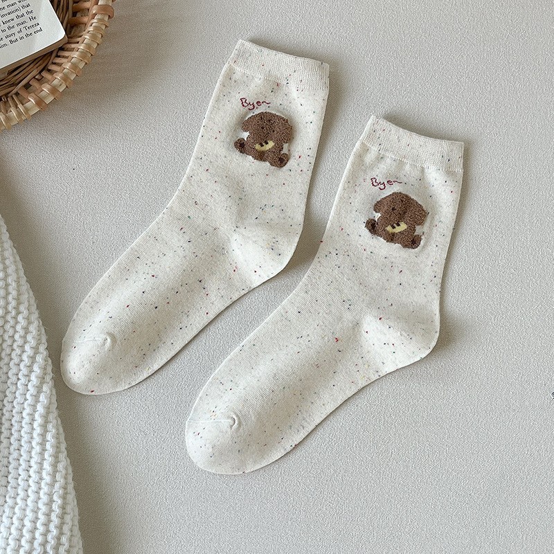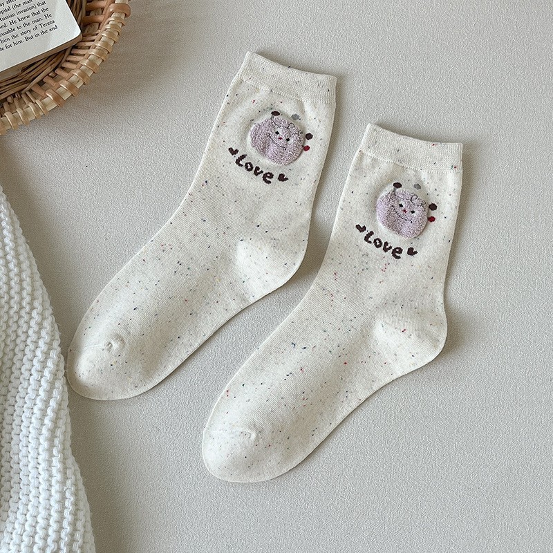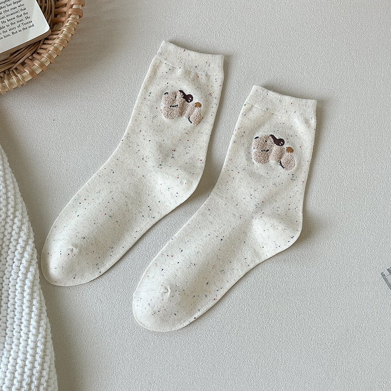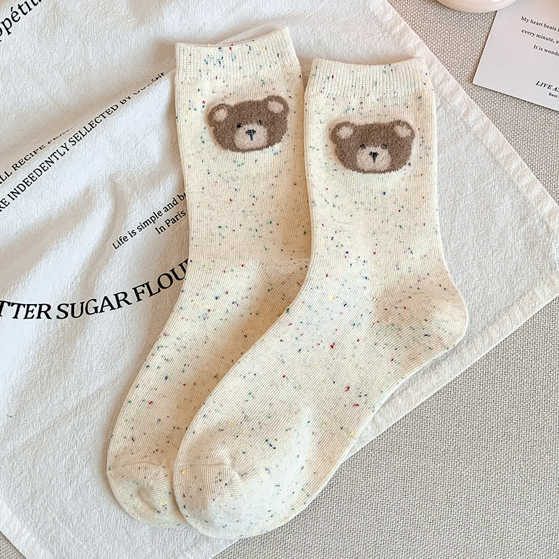 도트 원사 만화 곰 양말 여성용 미드 팟 양말 Instagram 스타일 유행 가을과 겨울 순면 일본 스타일 귀여운 강아지 더미 양말