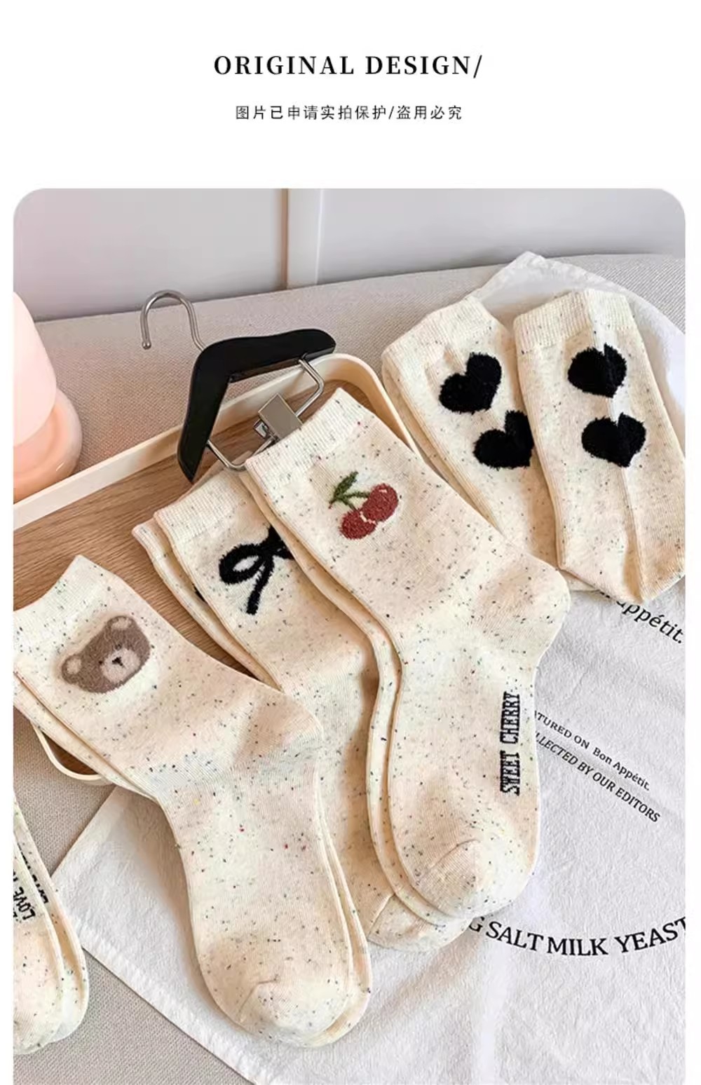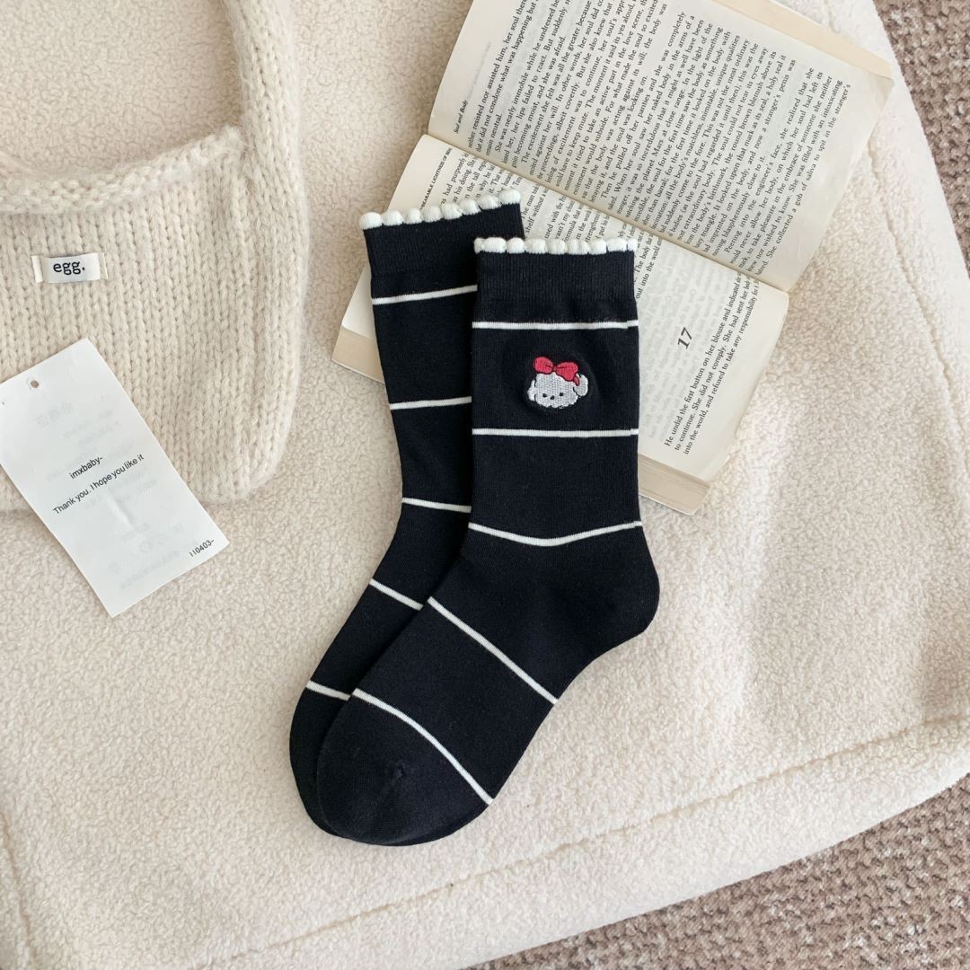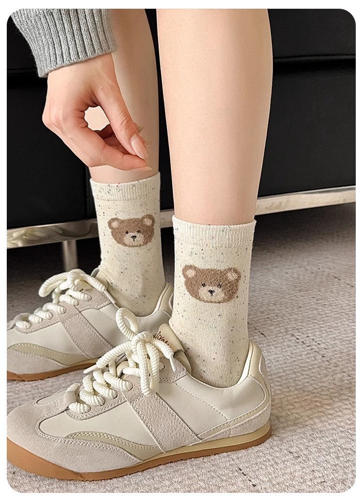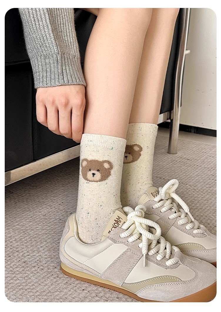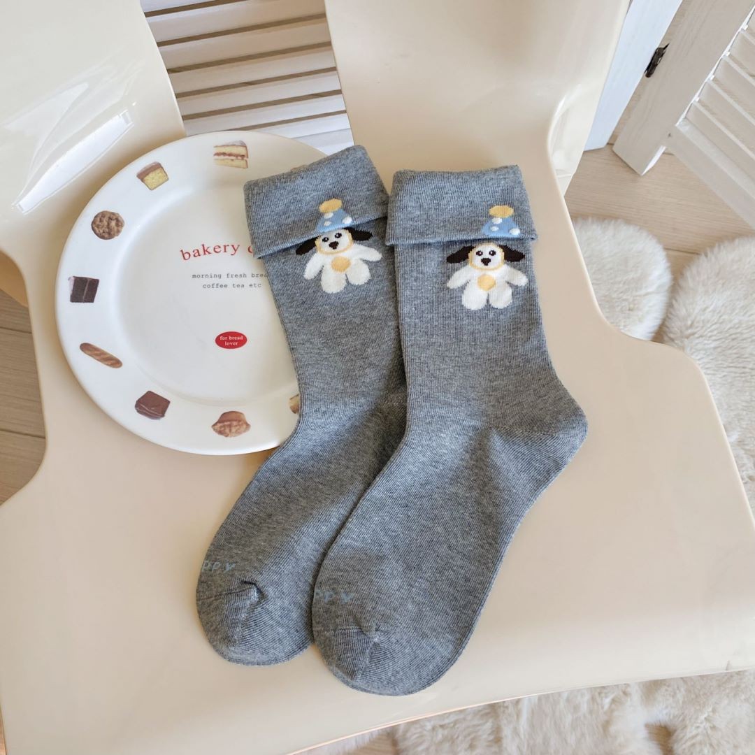 도트 원사 만화 곰 양말 여성용 미드 팟 양말 Instagram 스타일 유행 가을과 겨울 순면 일본 스타일 귀여운 강아지 더미 양말