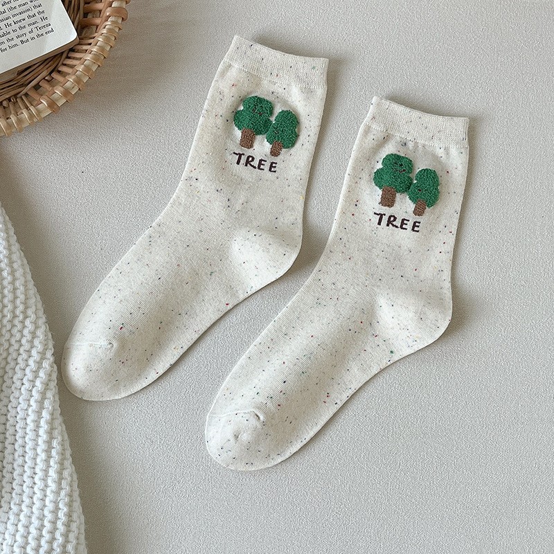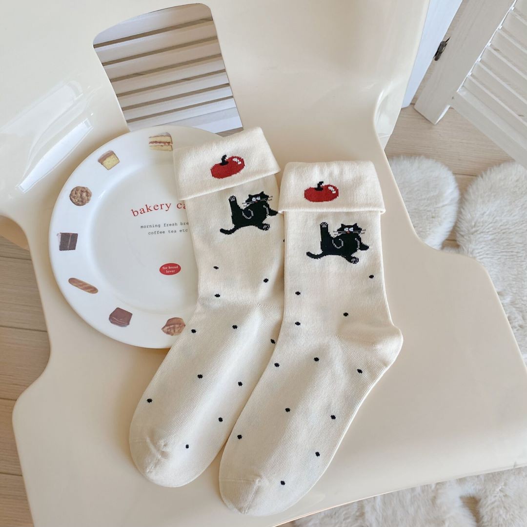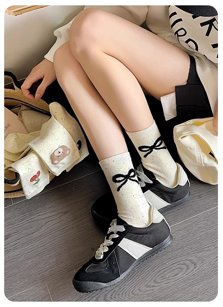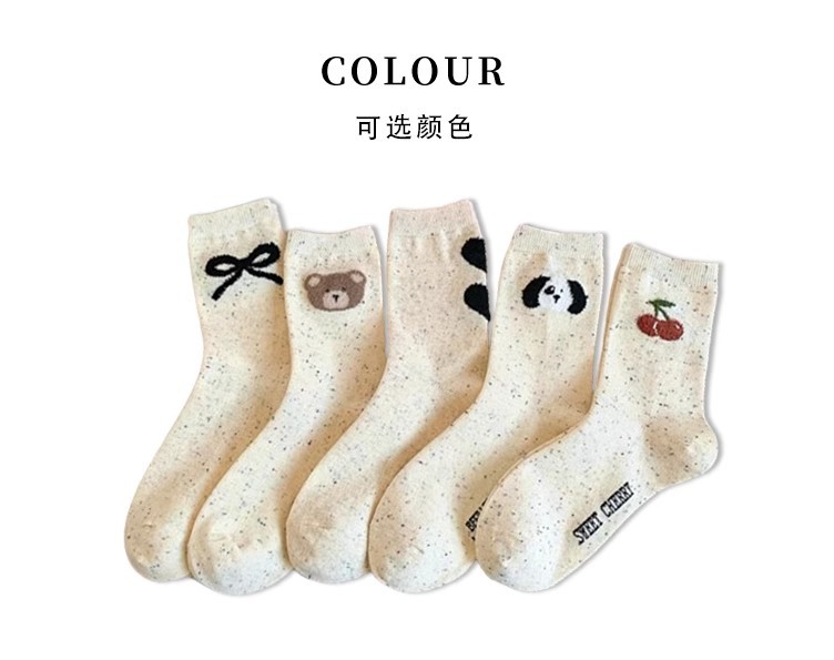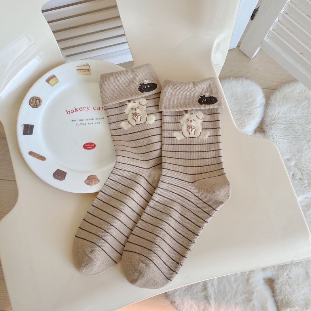 도트 원사 만화 곰 양말 여성용 미드 팟 양말 Instagram 스타일 유행 가을과 겨울 순면 일본 스타일 귀여운 강아지 더미 양말