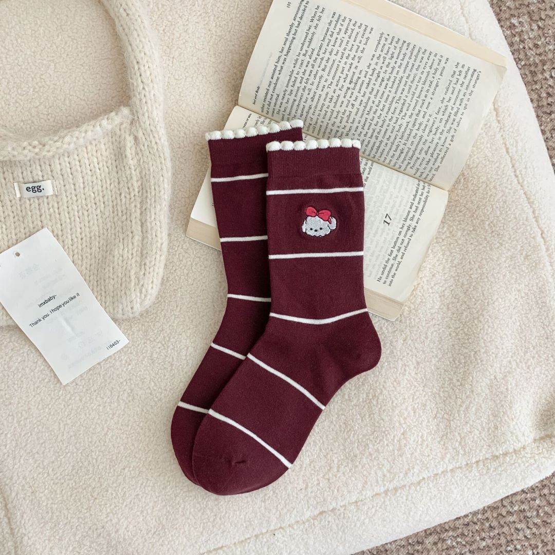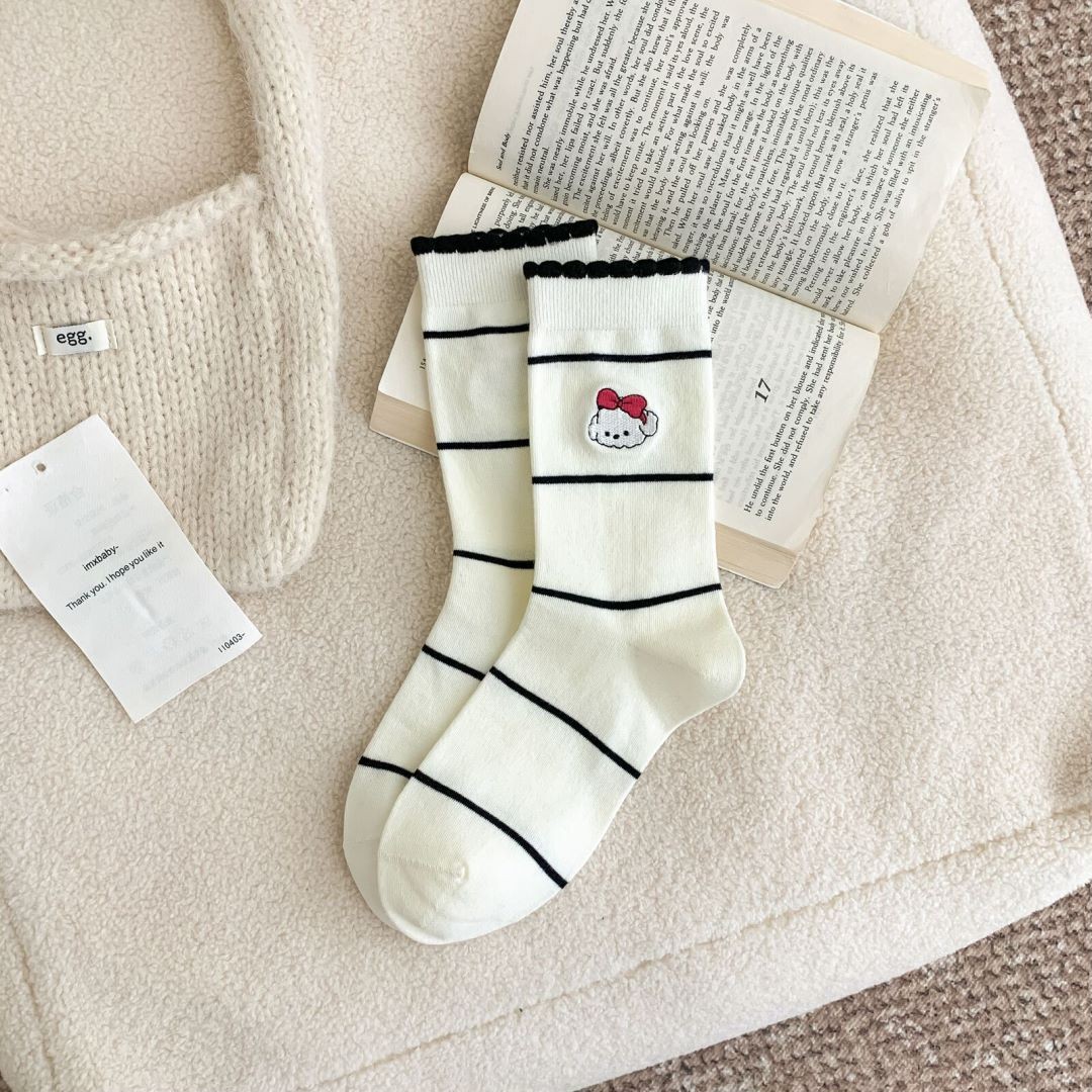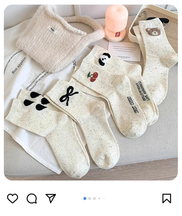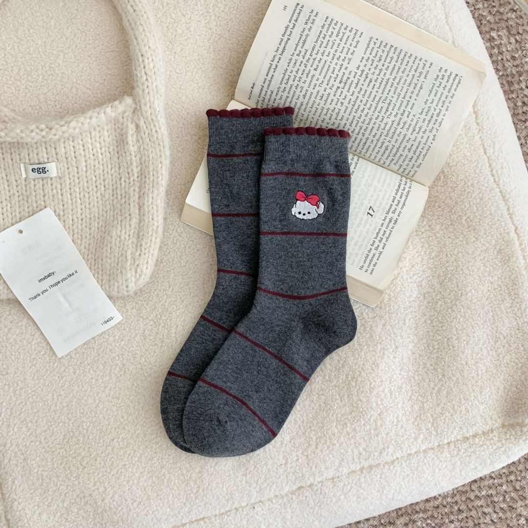 도트 원사 만화 곰 양말 여성용 미드 팟 양말 Instagram 스타일 유행 가을과 겨울 순면 일본 스타일 귀여운 강아지 더미 양말스토어 가기