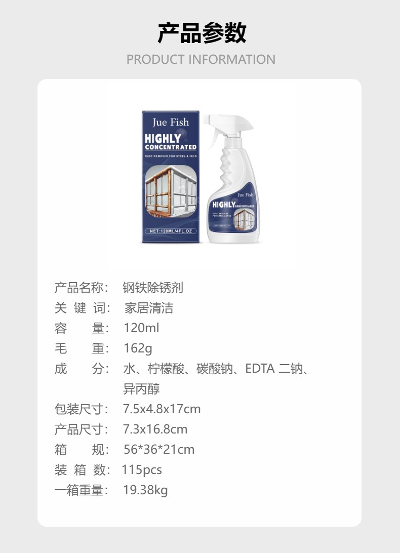 JUE FISH 철제 녹 제거제 스테인리스 녹 제거 청소제 가정용 실외 주방용품 청소제