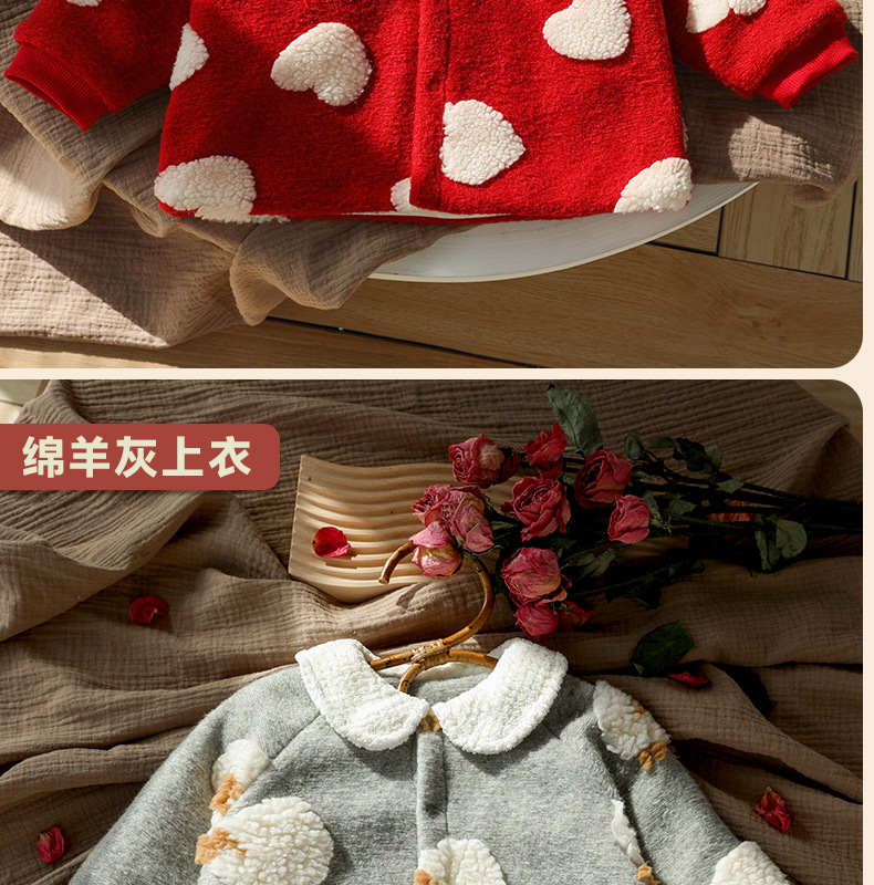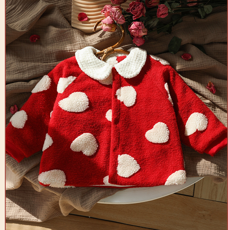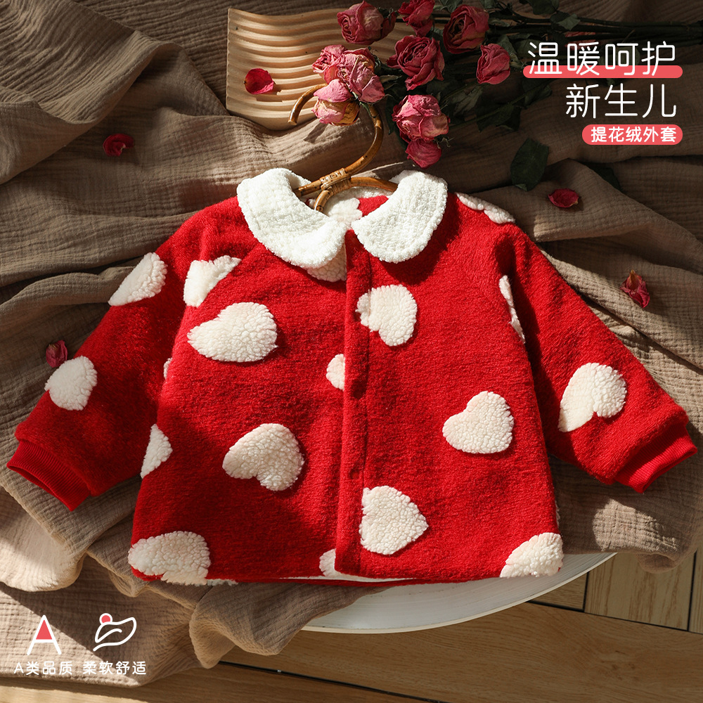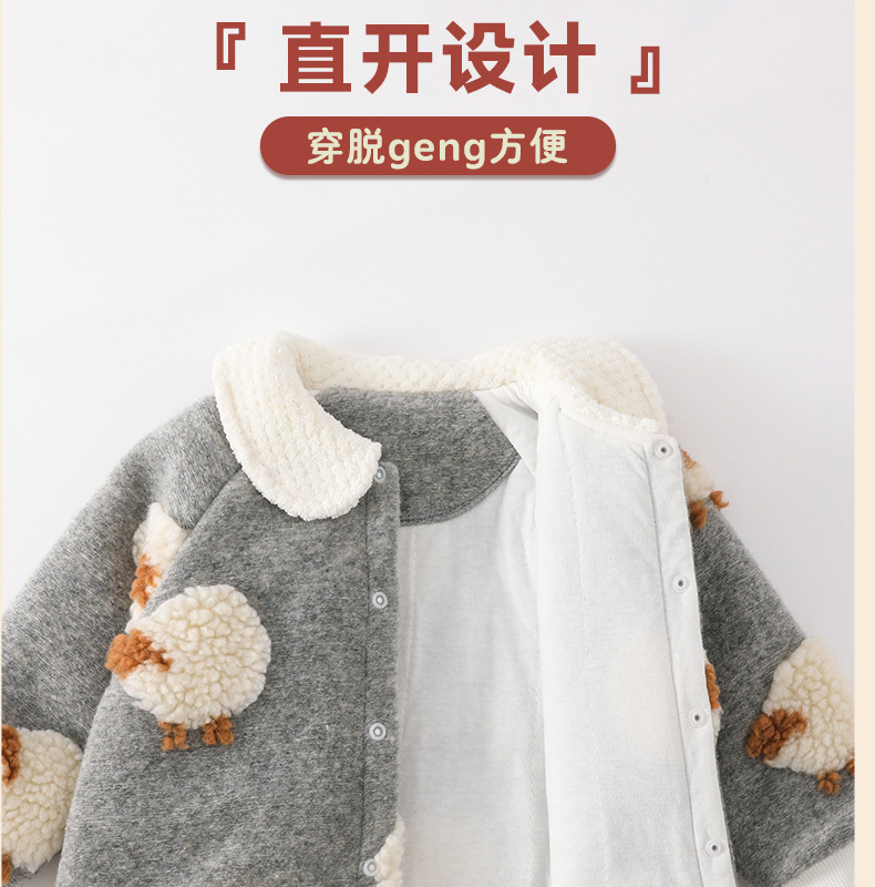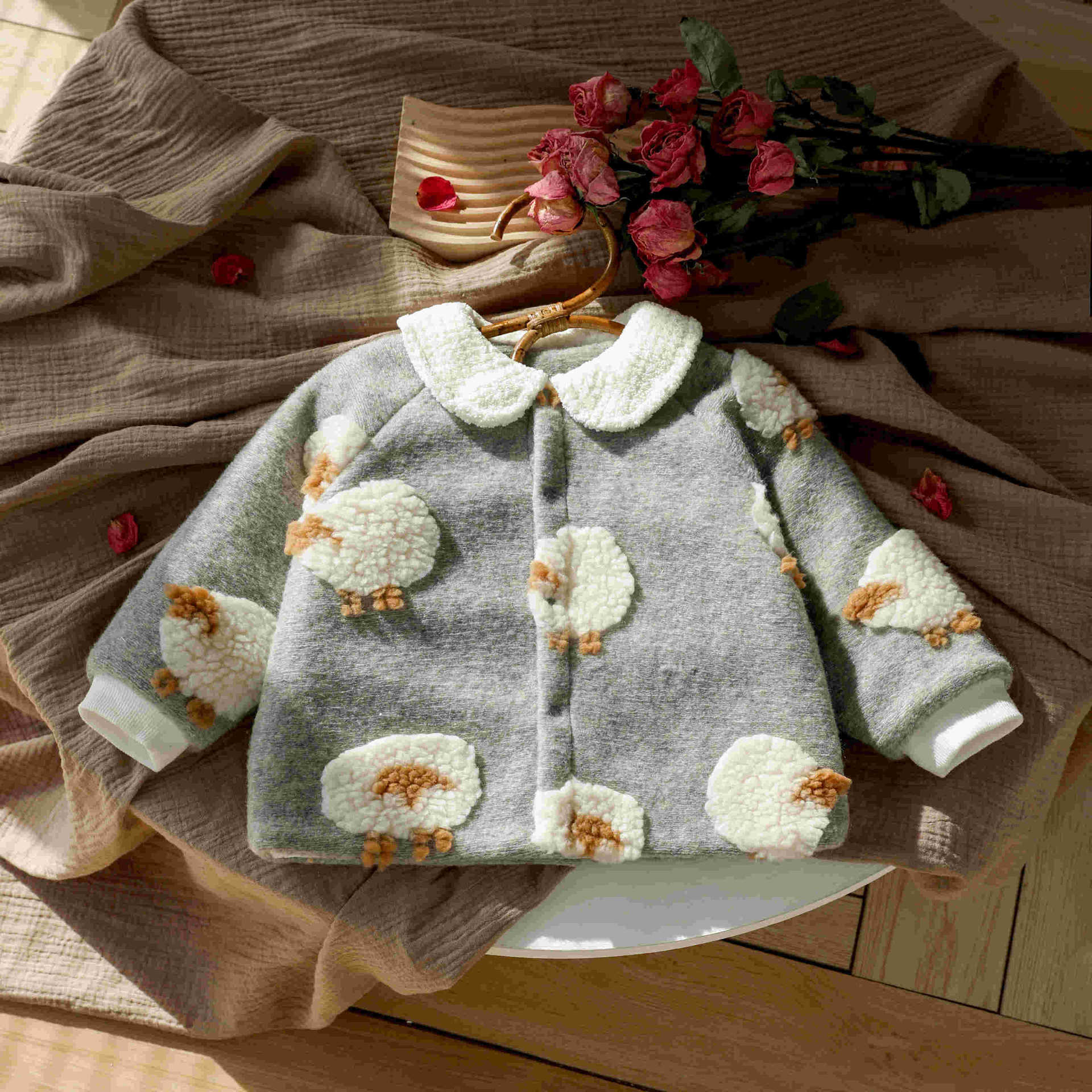 안샤오야 여아 겨울 코트 두꺼운 자카드 벨벳 누빔 아동 외출복 유아 보온 상의