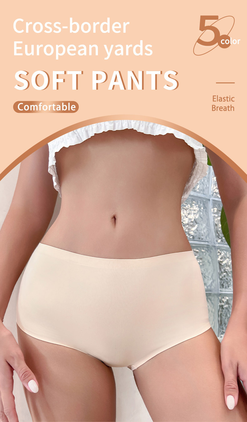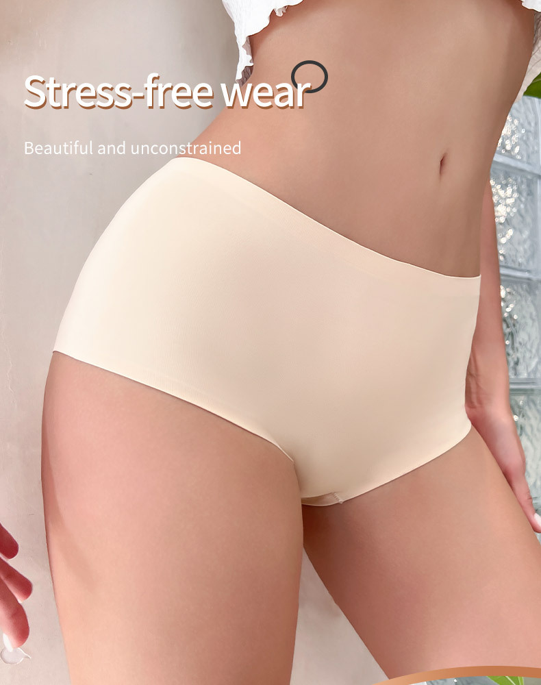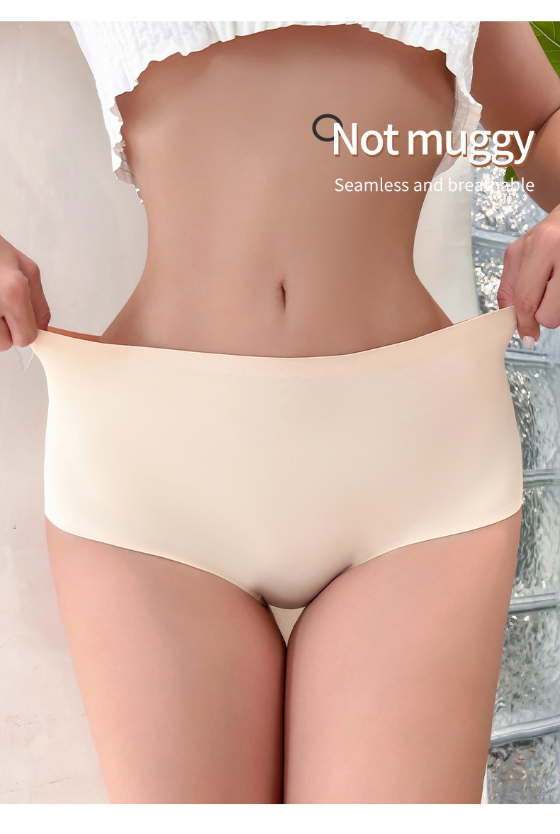 통기성 좋은 인기 여성 속옷, 원피스 무봉제 아이스 실크 중간 허리 삼각팬티, 대형 사이즈, 해외 직구, 재고 있음스토어 가기