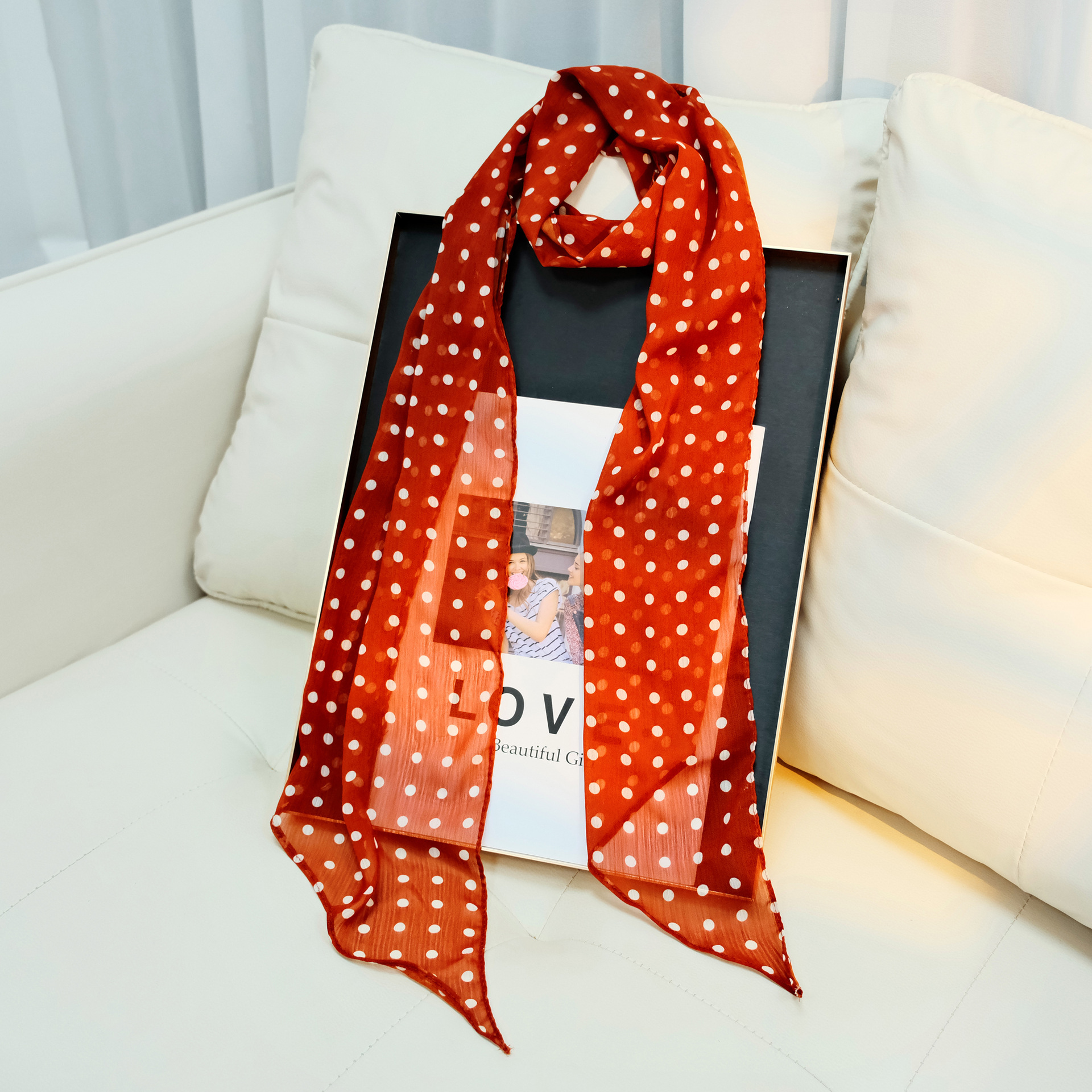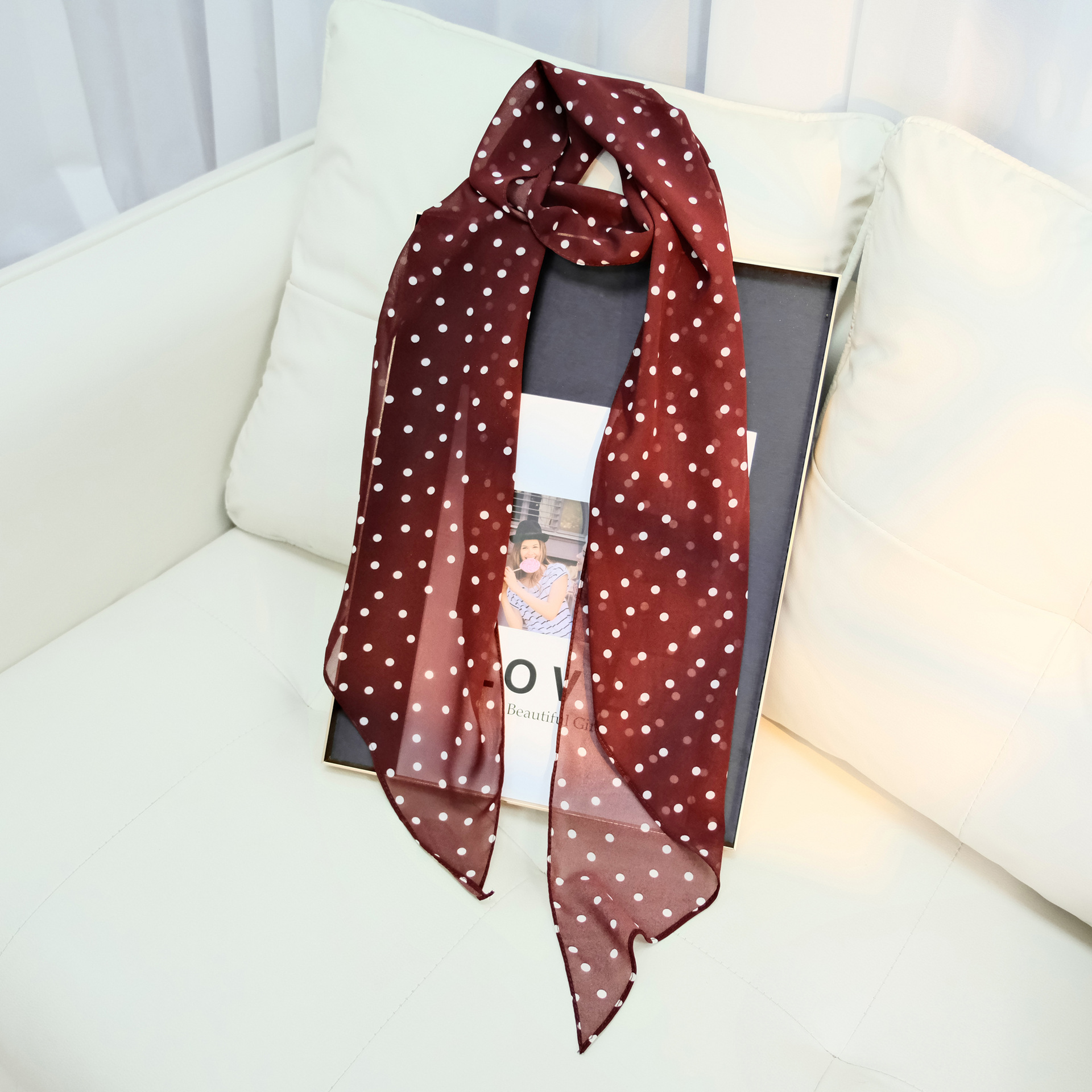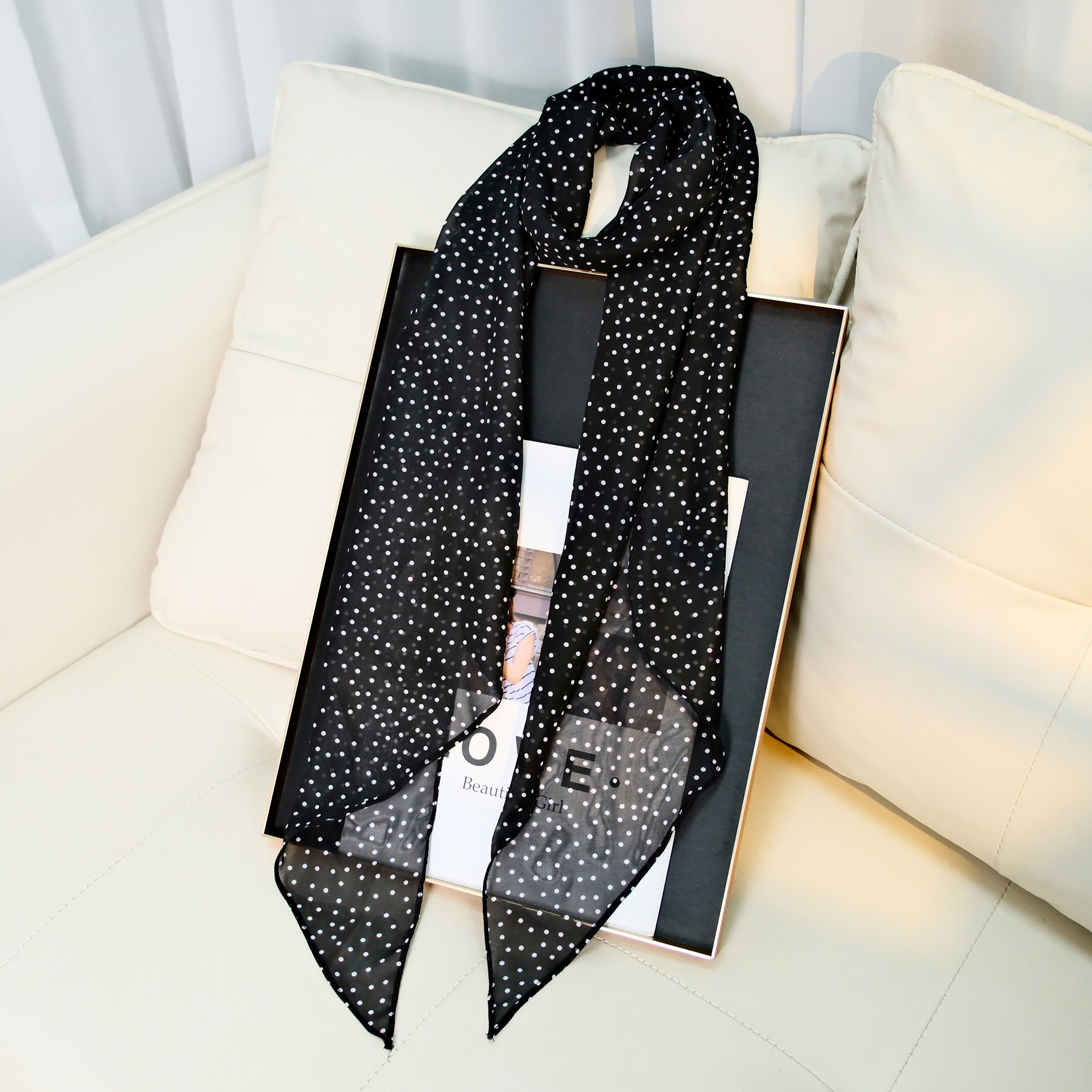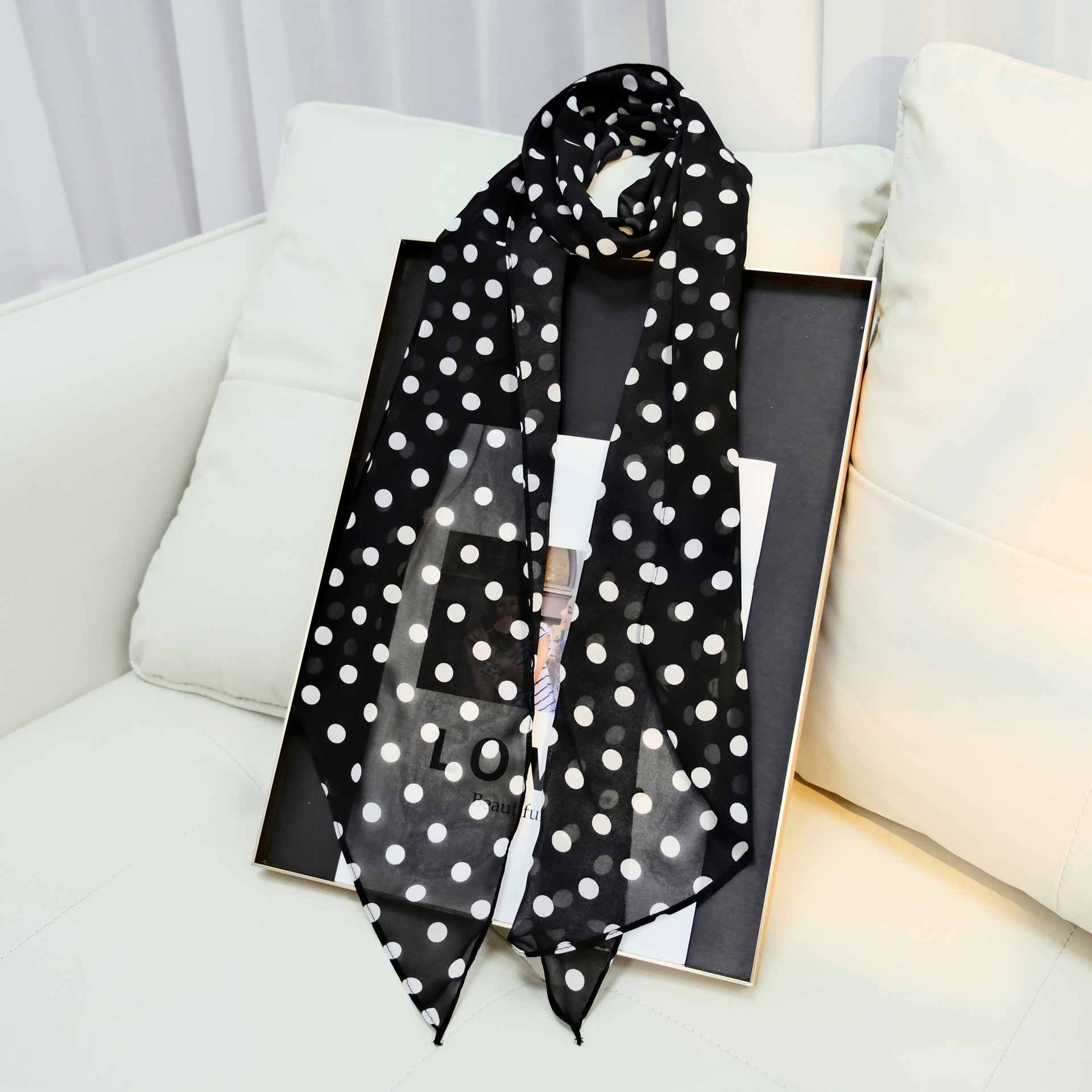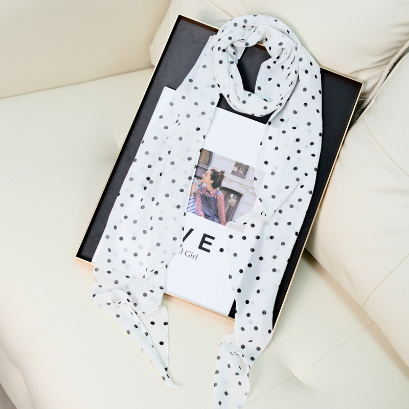 한국 스타일 Ins 스타일 190cm 도트 인쇄 진주 쉬폰 실크 스카프 고급 스카프 긴 스카프 여성용 리본 벨트