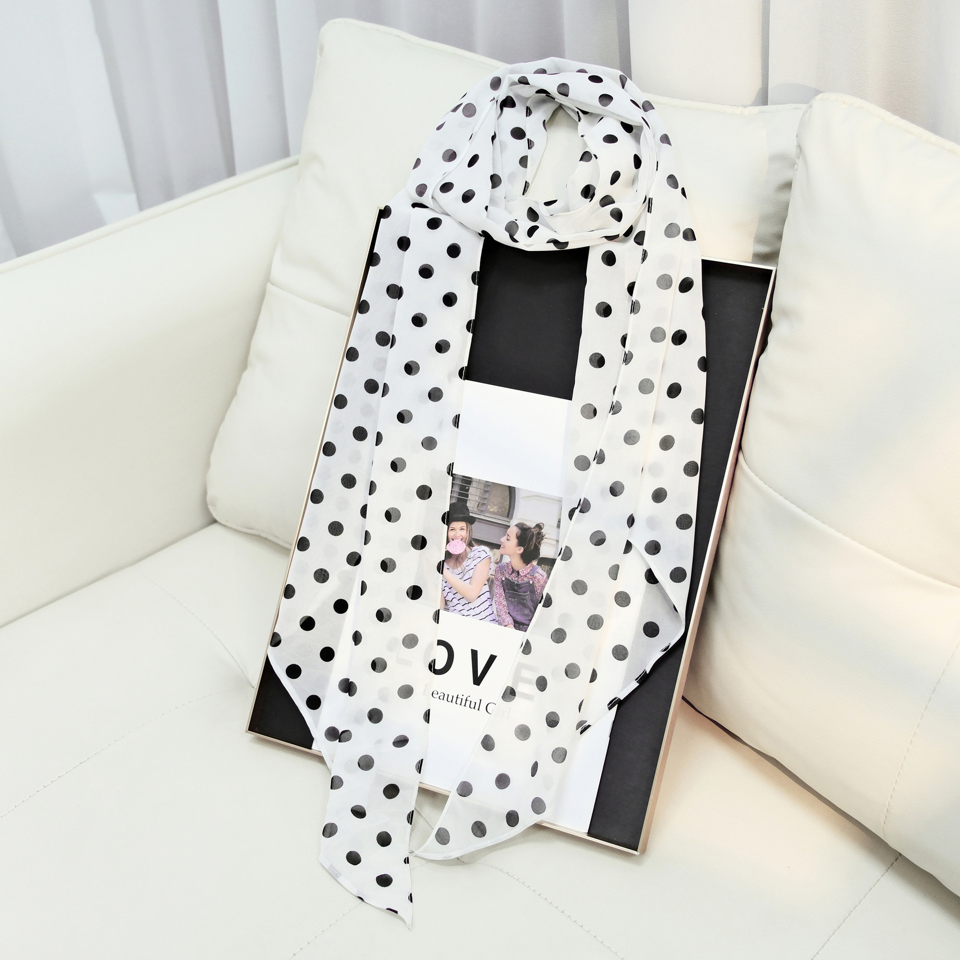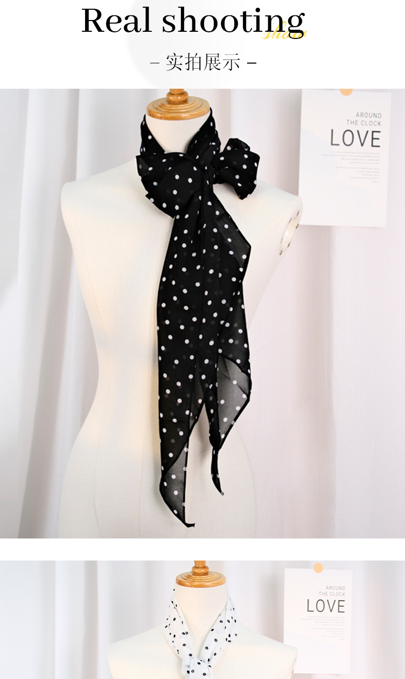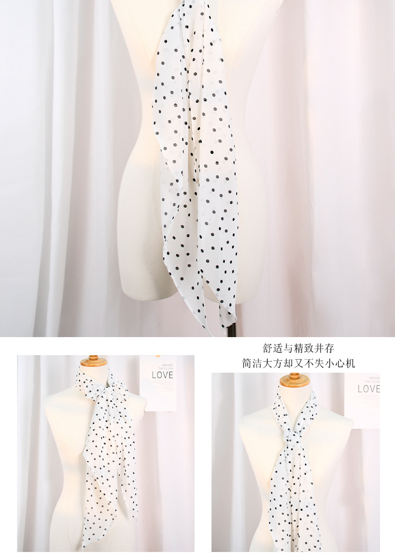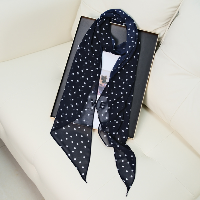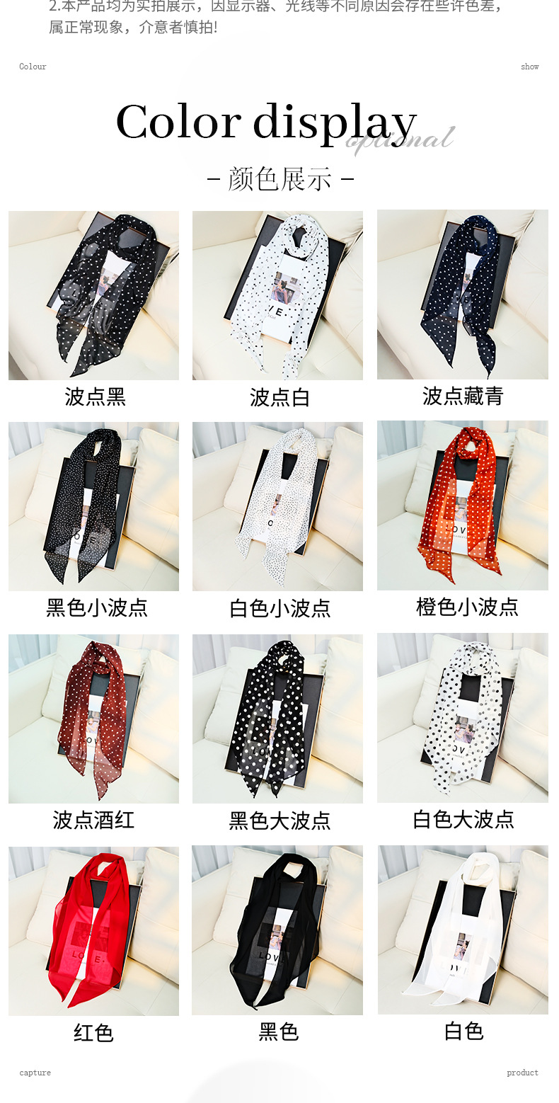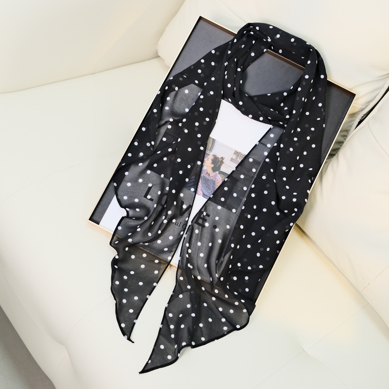 한국 스타일 Ins 스타일 190cm 도트 인쇄 진주 쉬폰 실크 스카프 고급 스카프 긴 스카프 여성용 리본 벨트
