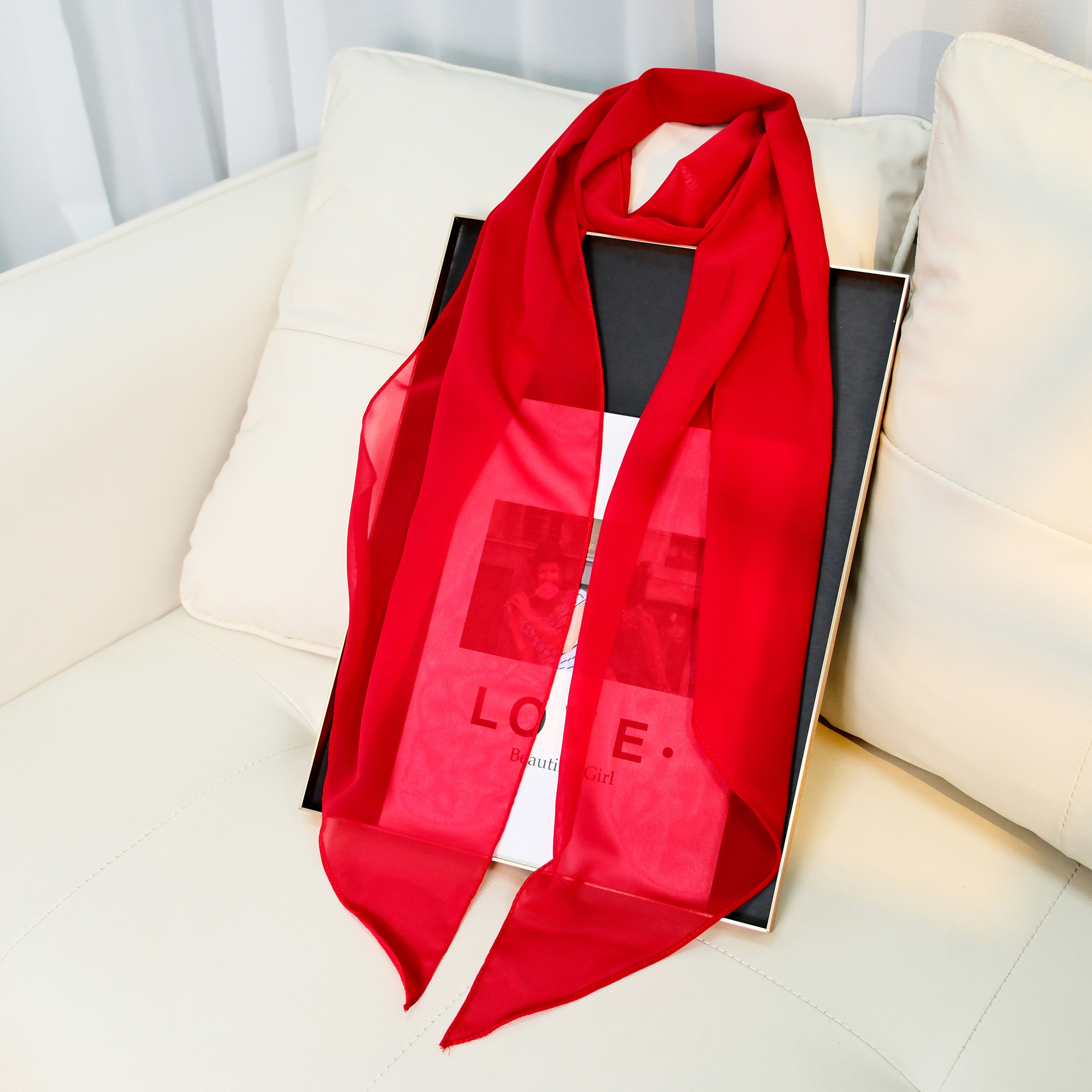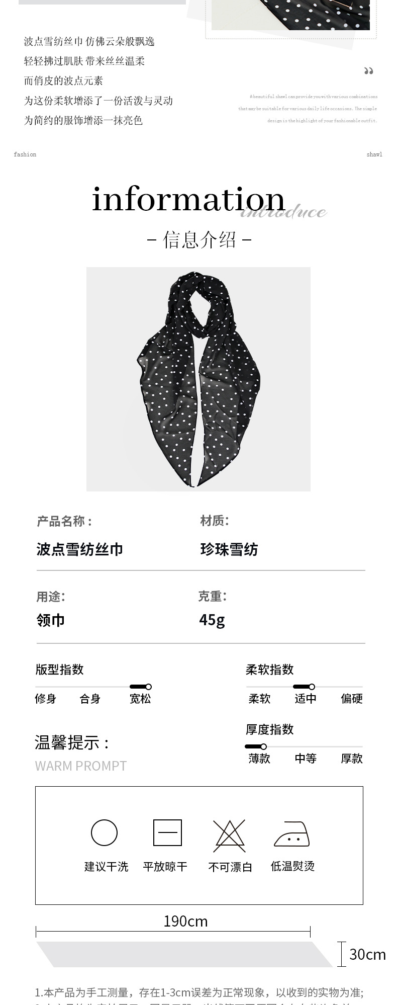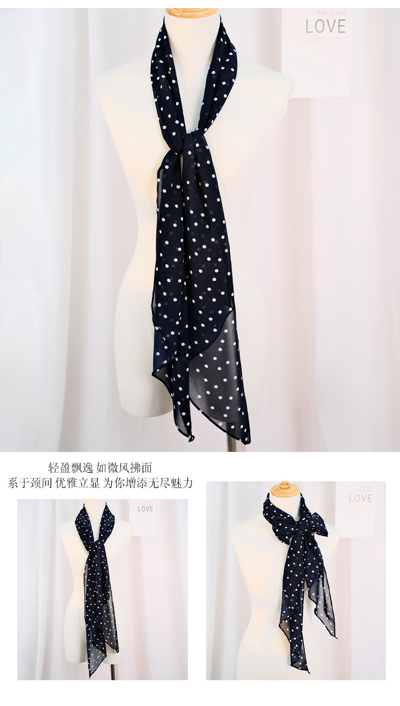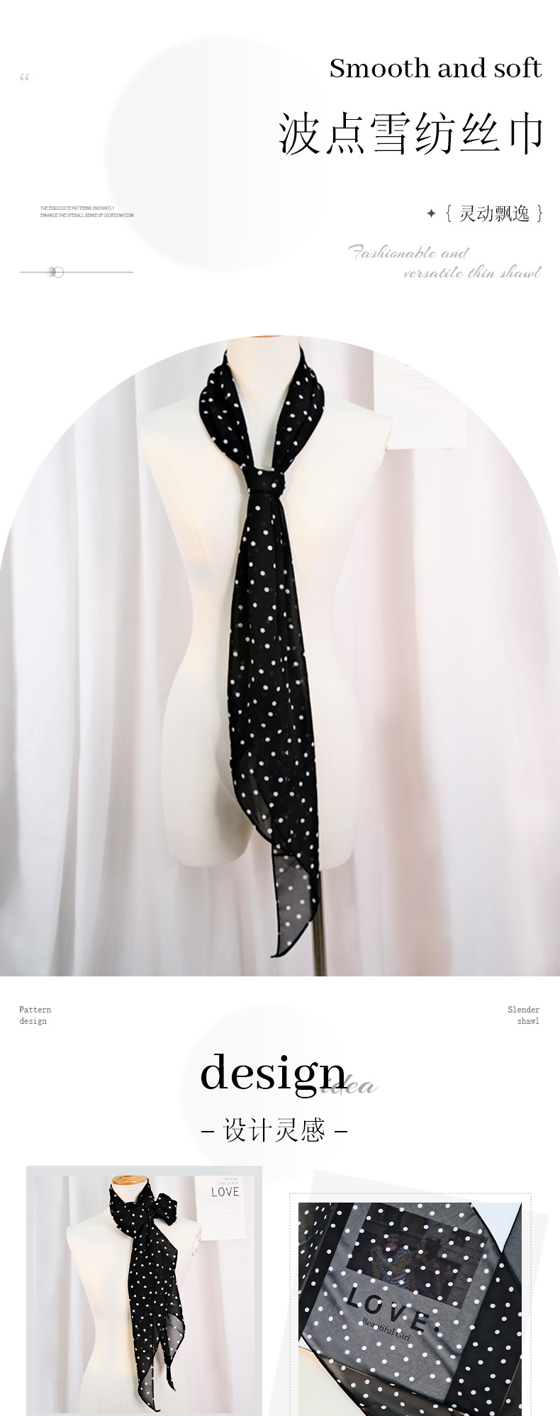 한국 스타일 Ins 스타일 190cm 도트 인쇄 진주 쉬폰 실크 스카프 고급 스카프 긴 스카프 여성용 리본 벨트