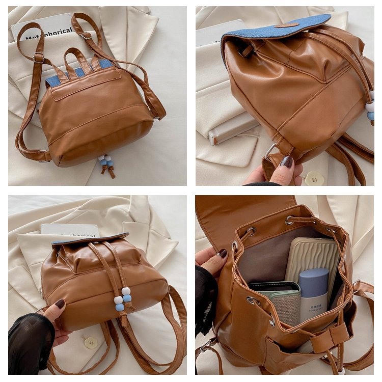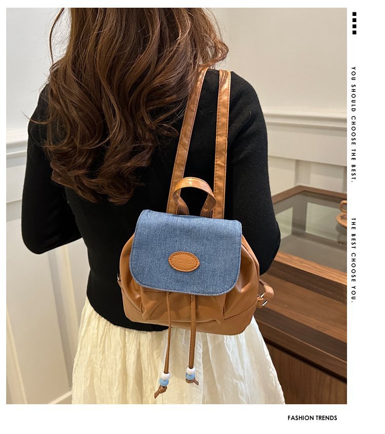 새로운 성격 복고풍 귀여운 높은 가치 데님 2024 패션 유행 여자 세련된 배낭 작은 배낭스토어 가기