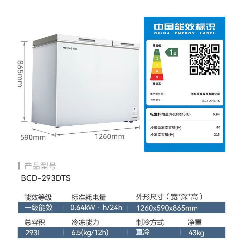 Meiling Frezer 220L 가정용 이중 온도 두 배 상자 작은 냉동고 상업용 대용량 냉동 냉동고 수평 냉장고스토어 가기