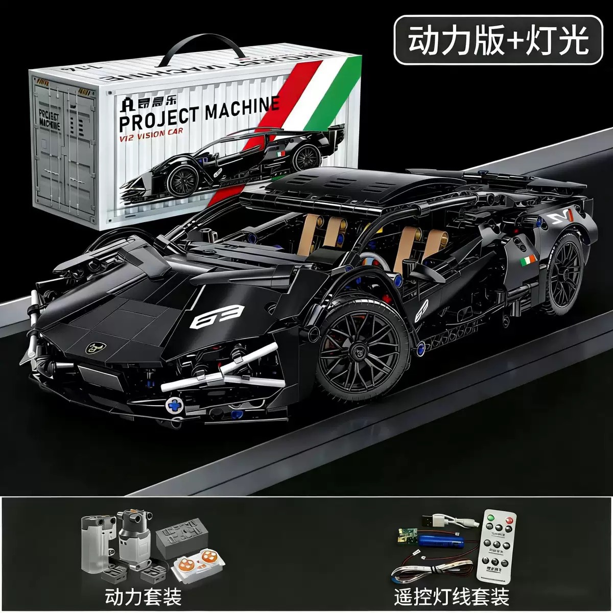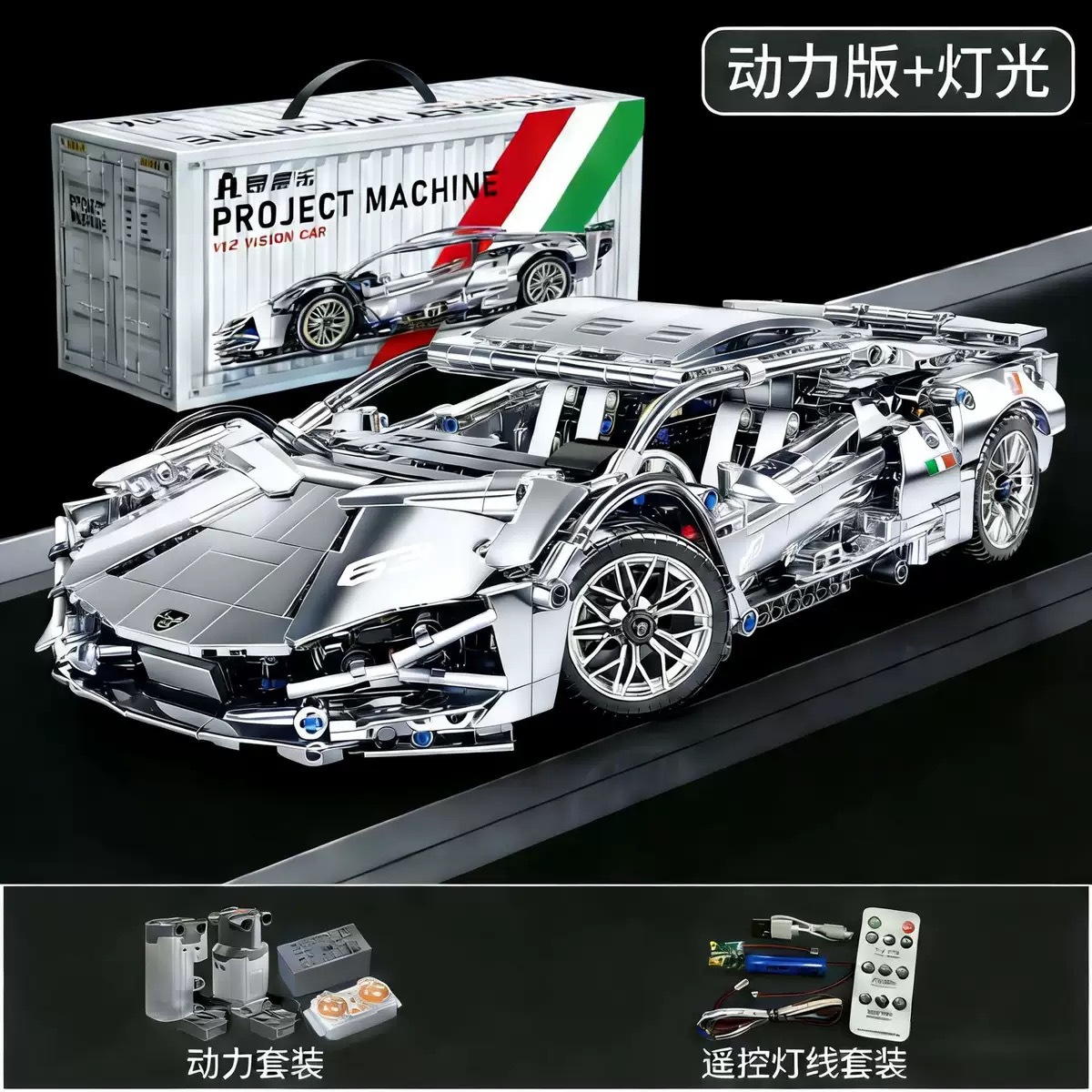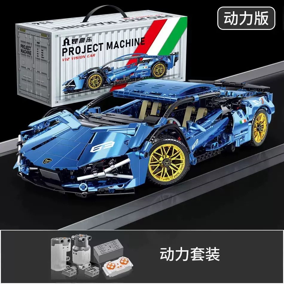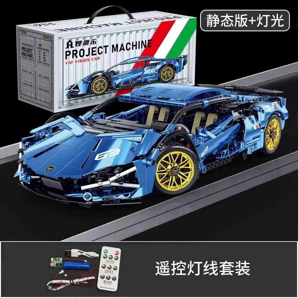 • 전기 도금 그라데이션 람보 슈퍼카 - 1280+ 입자 [정적 버전 + 원격 제어 조명]