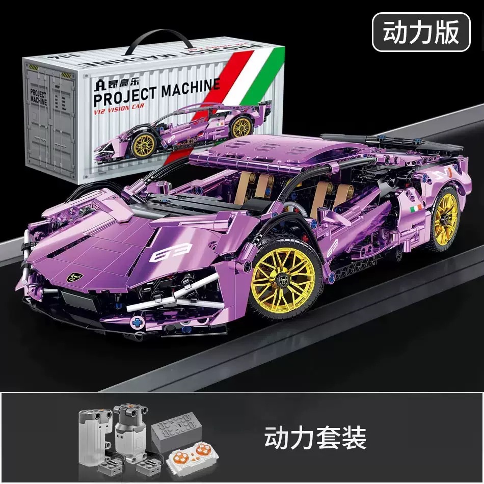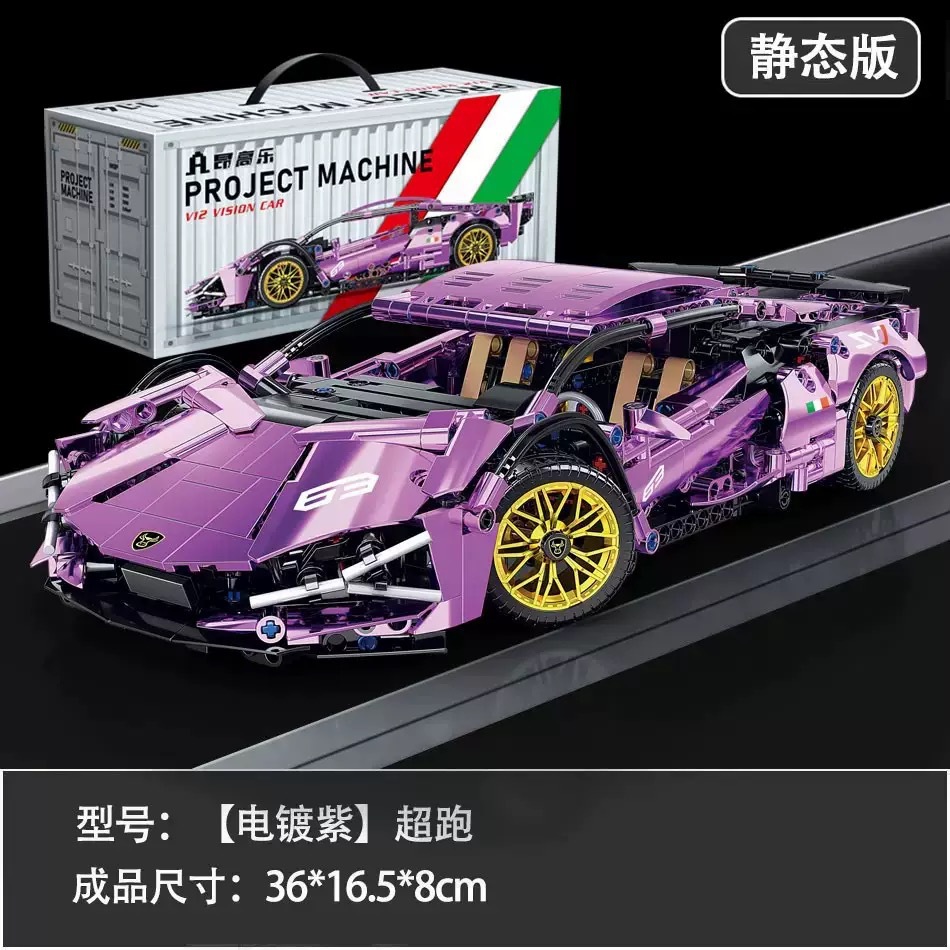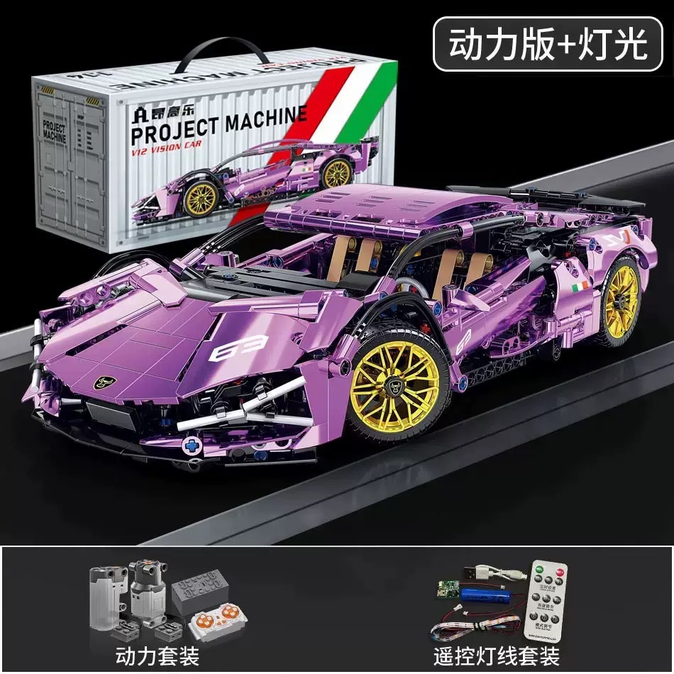 • 도금 퍼플 람보 슈퍼카 (무선 조종 조명 + 동력 장치)