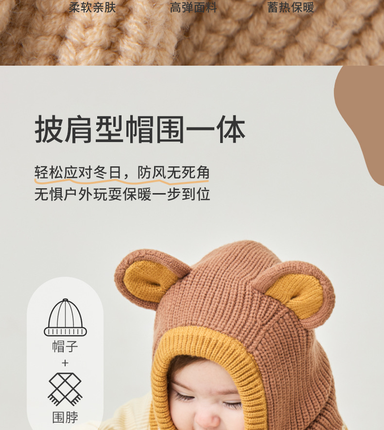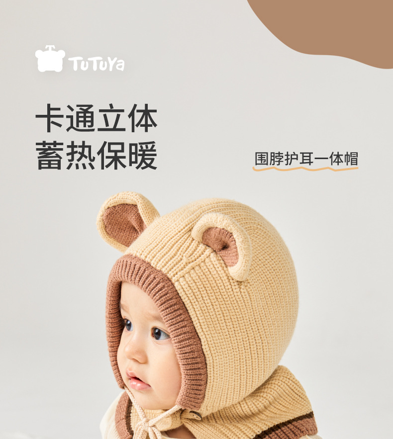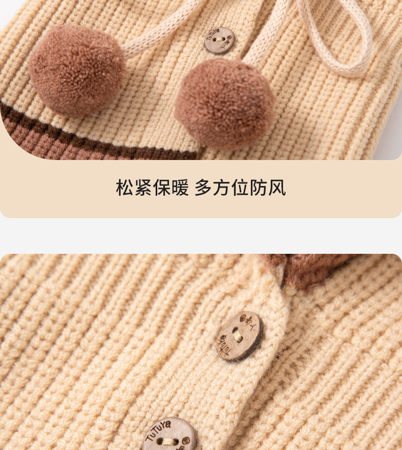 Tutuya 어린이 모자 가을과 겨울 소년과 소녀 아기 스카프 원피스 따뜻한 니트 울 귀 보호 캡