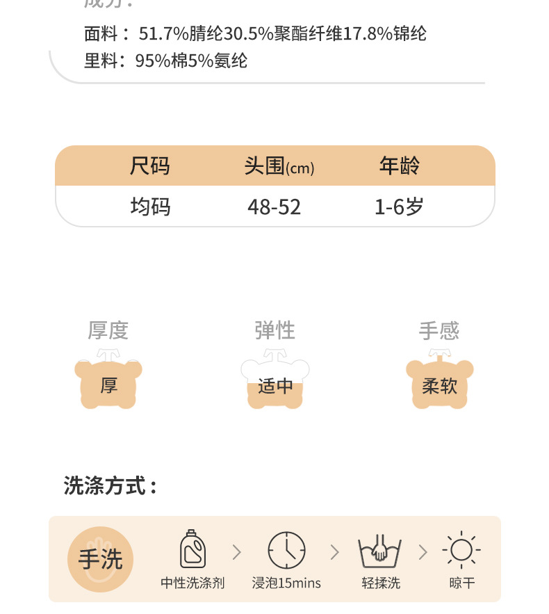 • 프리 사이즈: (1-6세/머리 둘레 46-54cm에 적합)