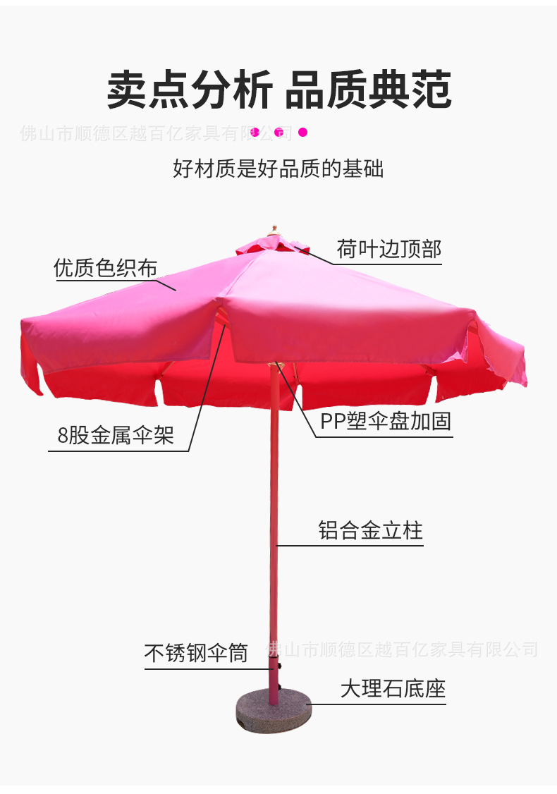 • 주조 알루미늄 우산 트레이 럭셔리 모델: 원형 2m [곡선 우산 표면] 48열 중앙 기둥 우산 [베이스 포함]