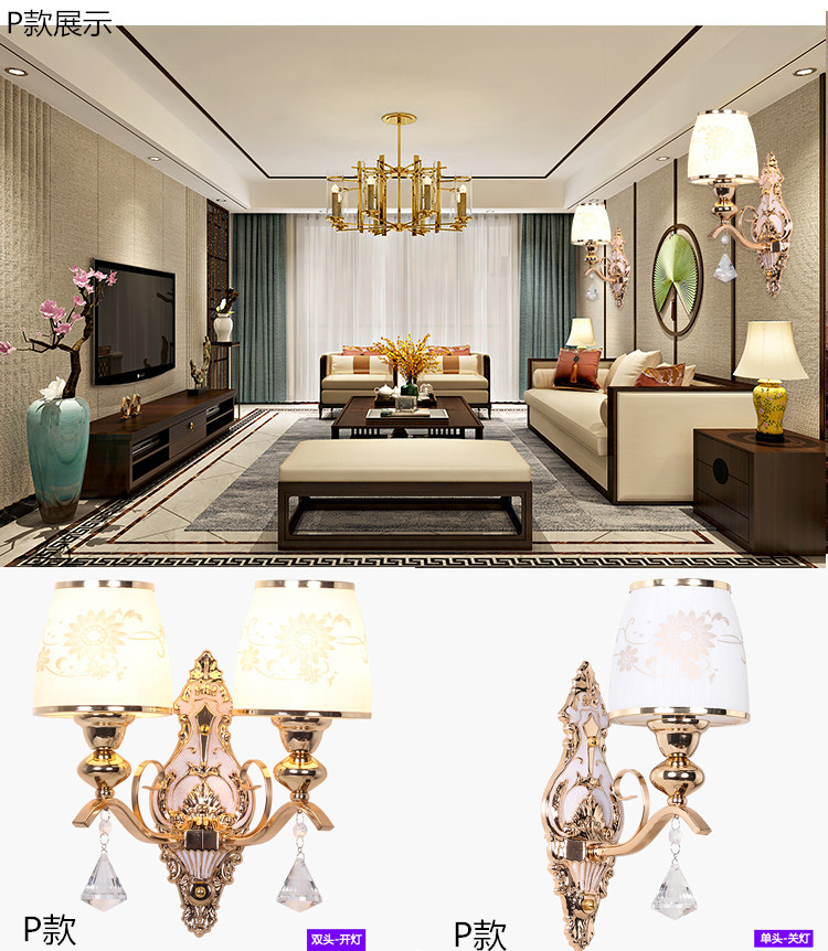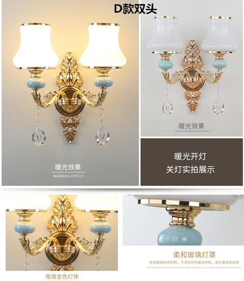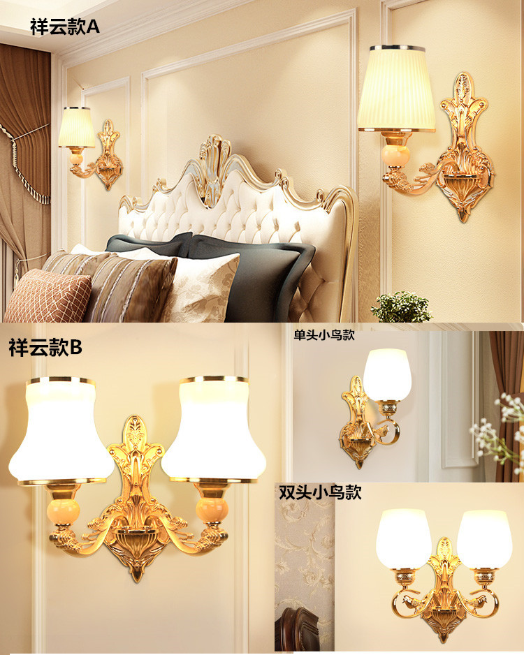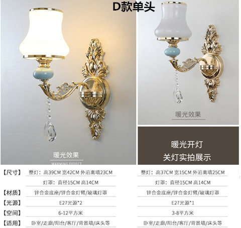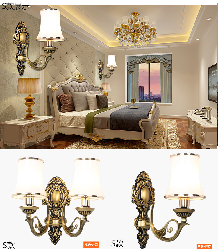 침실 램프 벽 램프 침실 거실 아메리칸 스타일 유럽 스타일 벽 램프 간단한 복고풍 현대 간단한 배경 벽 벽 벽 램프스토어 가기