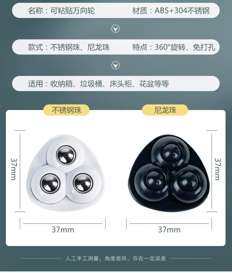 페이스트 유니버설 휠 캐스터 볼 구멍이 뚫린 저장 상자 침대 옆 테이블 볼 음소거 하드웨어 액세서리 3 구슬 작은 슬립스토어 가기