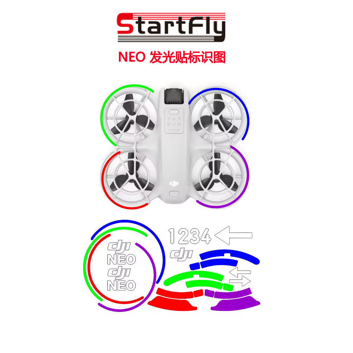 DJI NEO 빛나는 스티커 빛나는 멋진 영화 셀카 작은 드론 액세서리를위한 StartFly스토어 가기