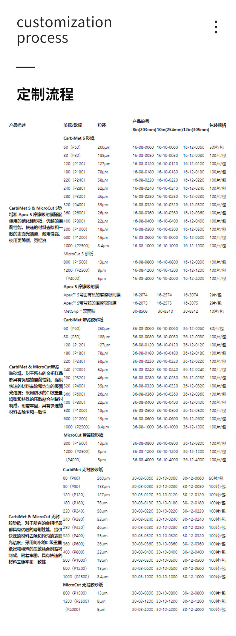 Buehler 샌드페이퍼 수입 금속 조직 접착 샌드페이퍼 36101000 좋은 품질의 샌드페이퍼