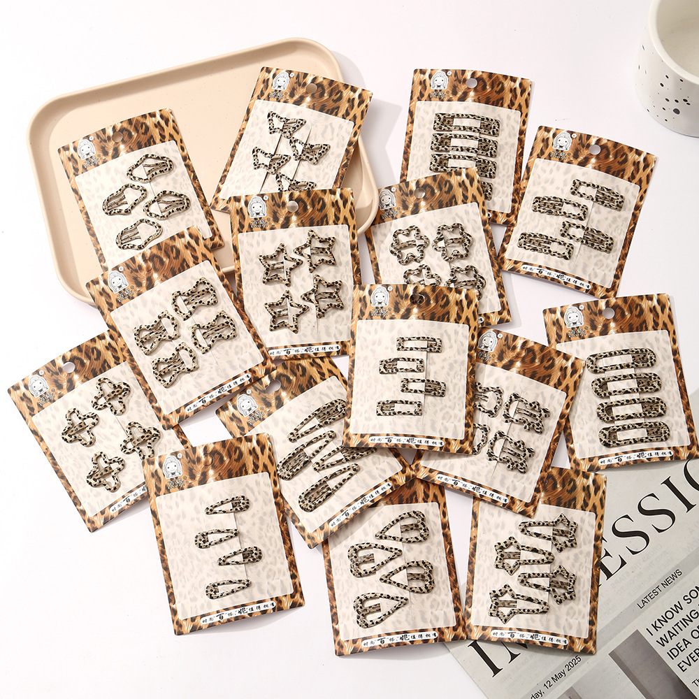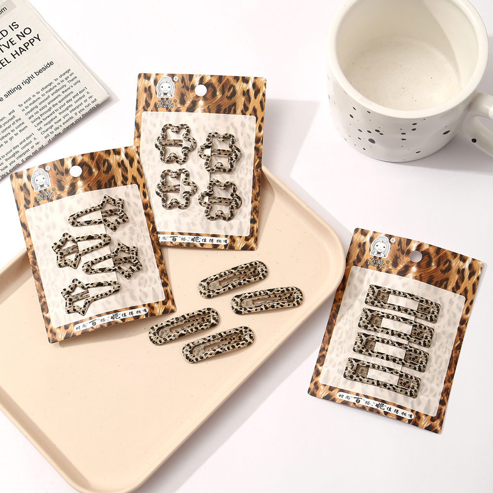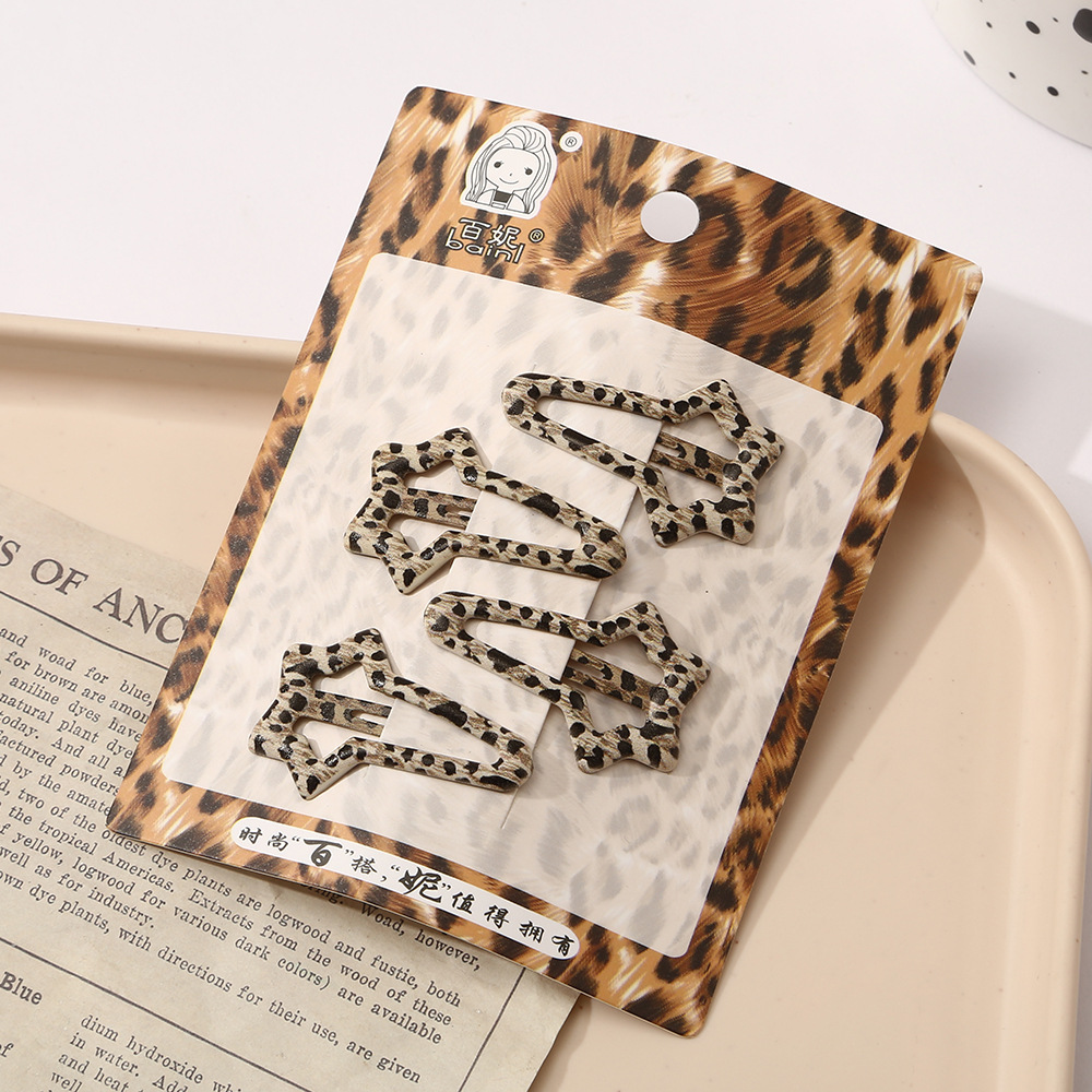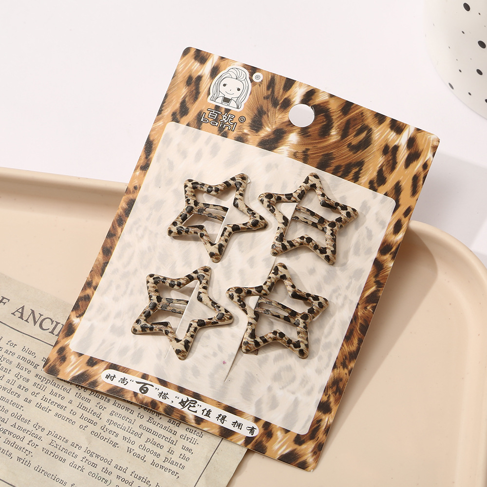 간단한 우아한 레오파드 무늬 bb 클립 틈새 빈 스타 Bangs 클립 깨진 헤어핀 구름 사이드 클립 헤어핀 헤어 액세서리
