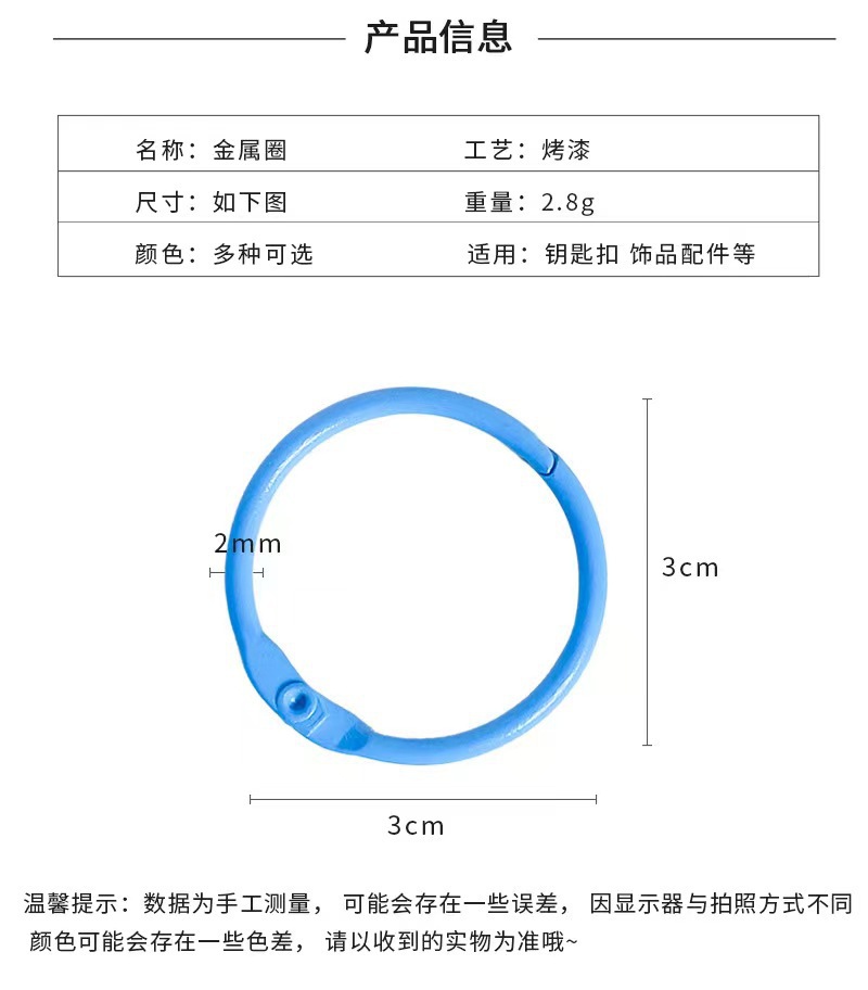 30mm 컬러 카드 링 페인트 링 버클 오픈 링 느슨한 잎 링 보관 링 키 체인 DIY 보석 액세서리 도매스토어 가기
