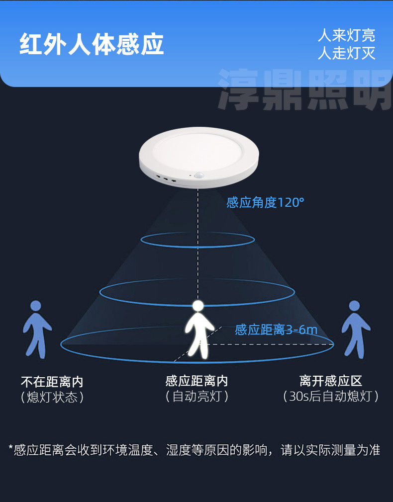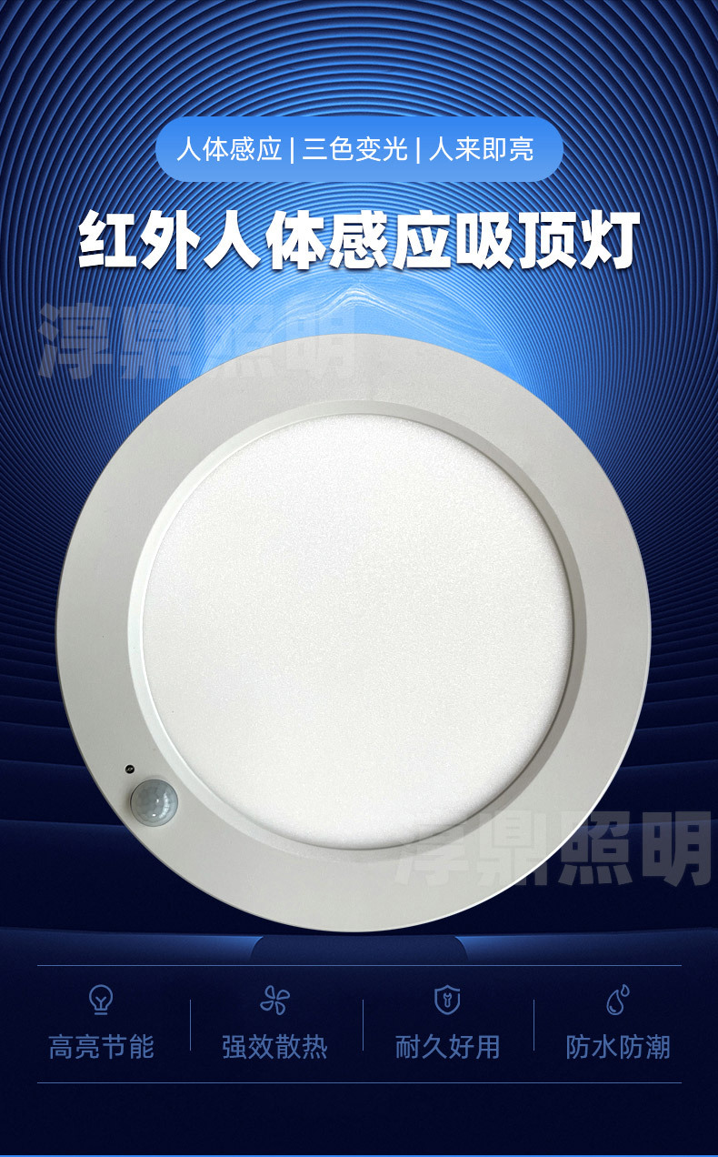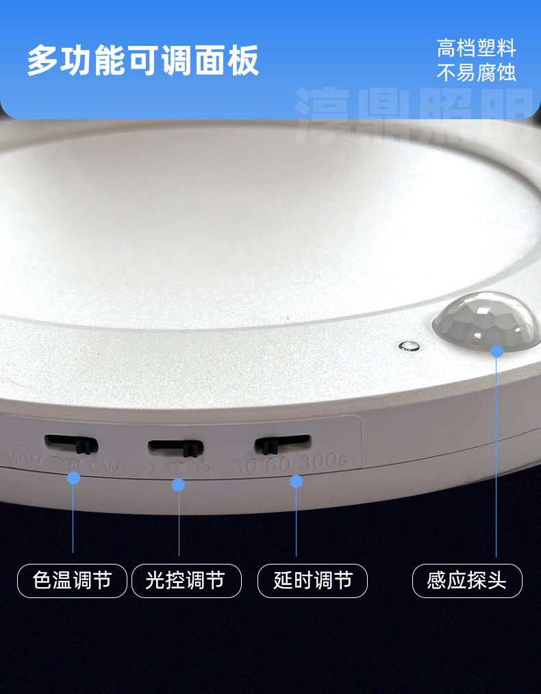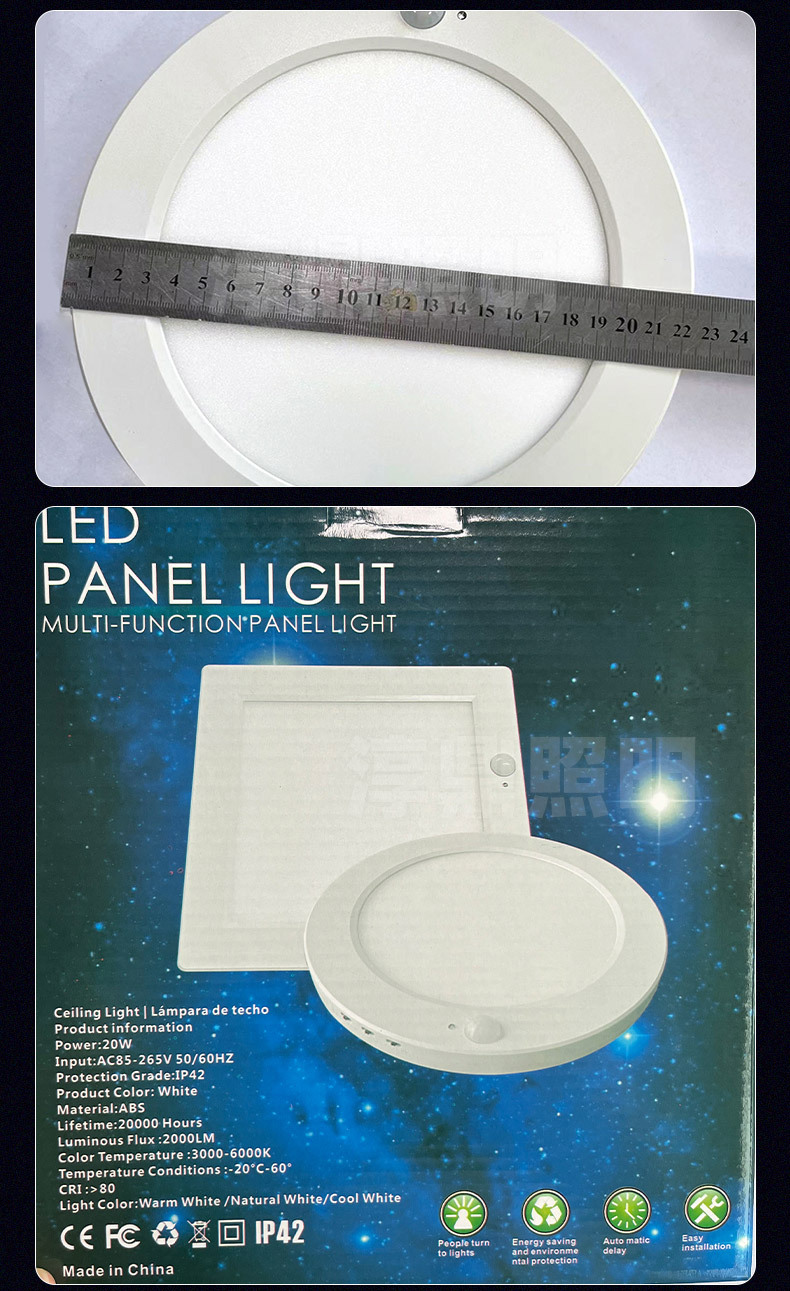 표면 장착형 인체 유도 3방지 천장 조명 다기능 3색 조광 초박형 복도 자기 유도 패널 조명
