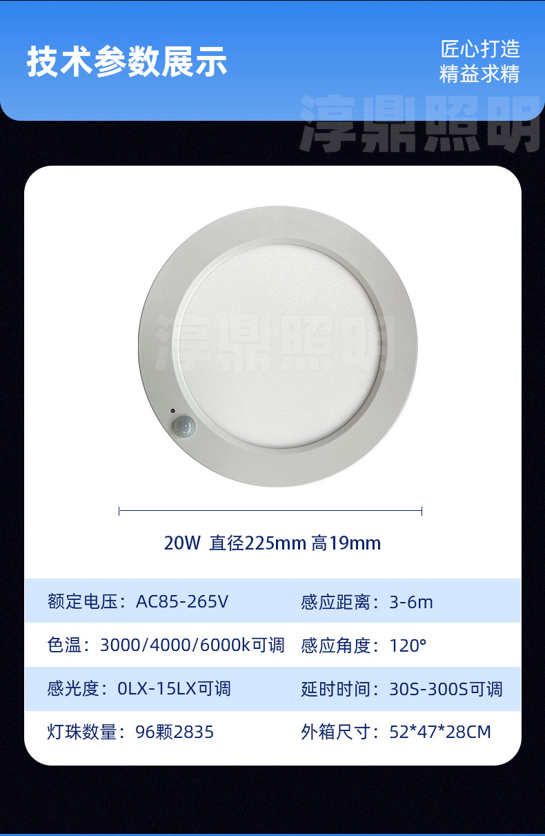 • 유도 천장 조명;ABS;흰색;225MM;LED;20W;3톤 조광;유도 제어
