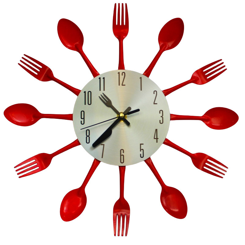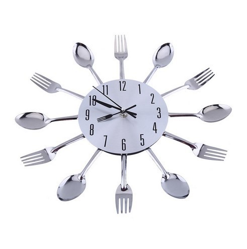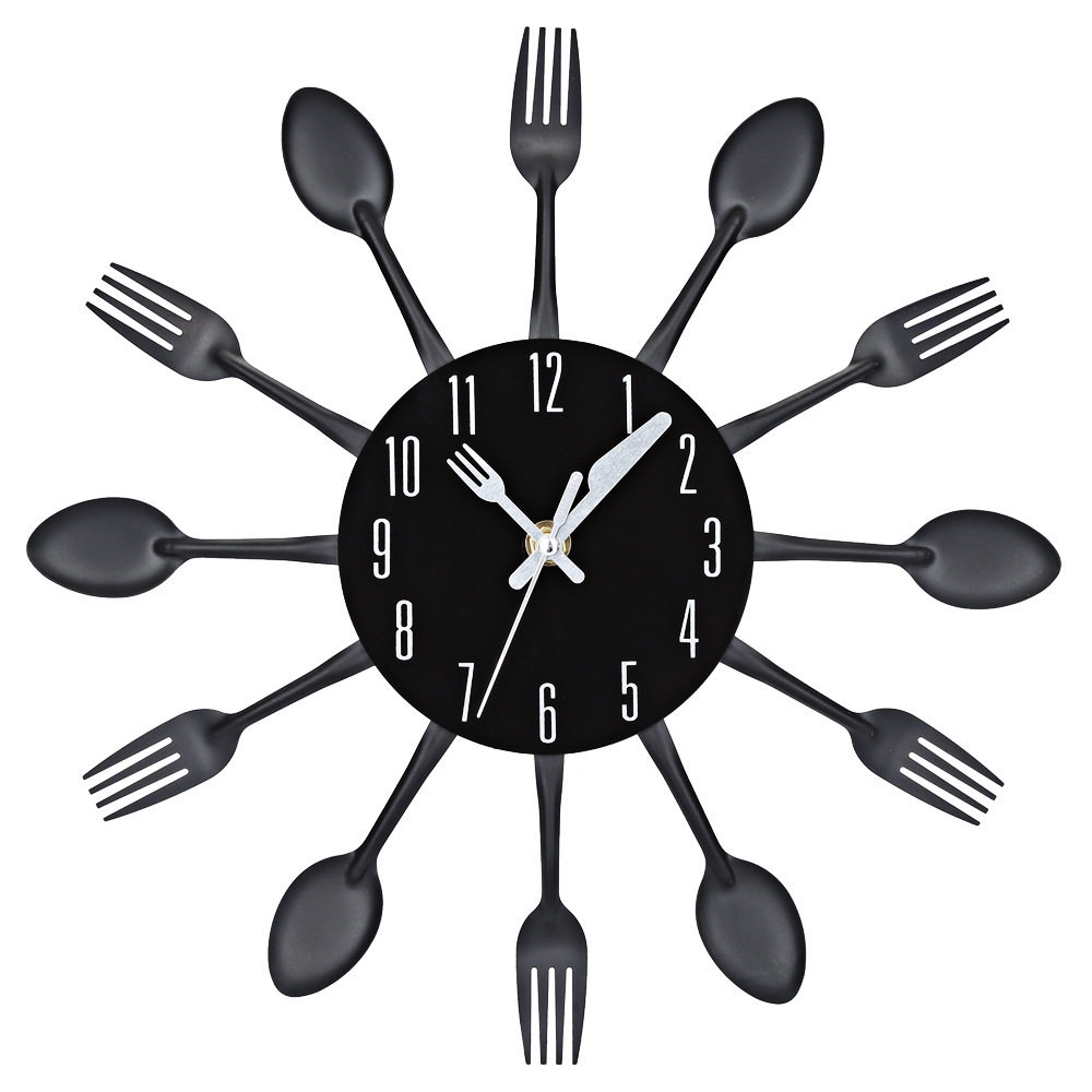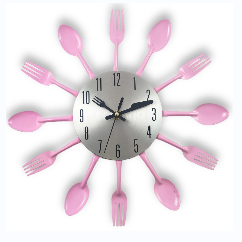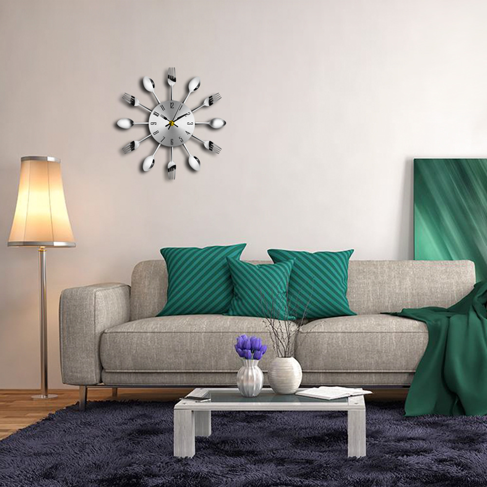 금속 스테인레스 스틸 나이프와 포크 시계 홈 장식 선물 공예 창조적 인 철 금속 입구 침묵 벽 시계