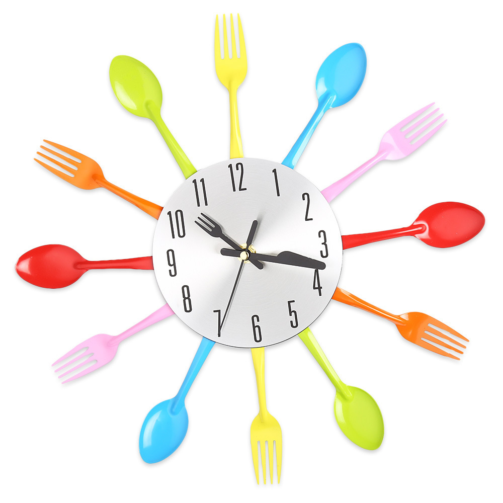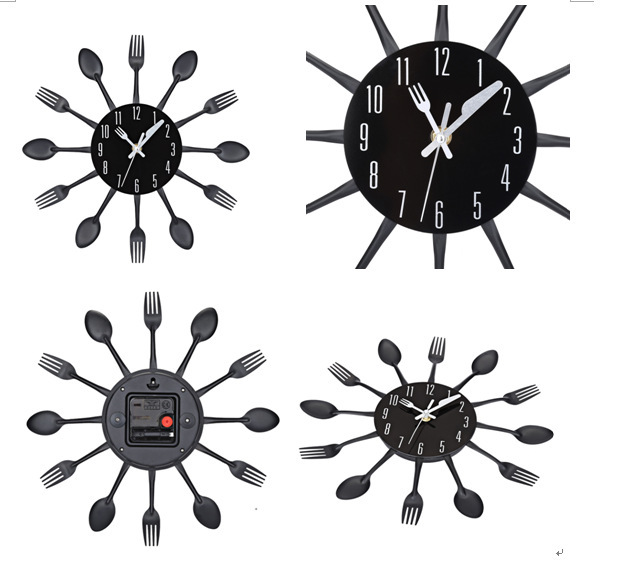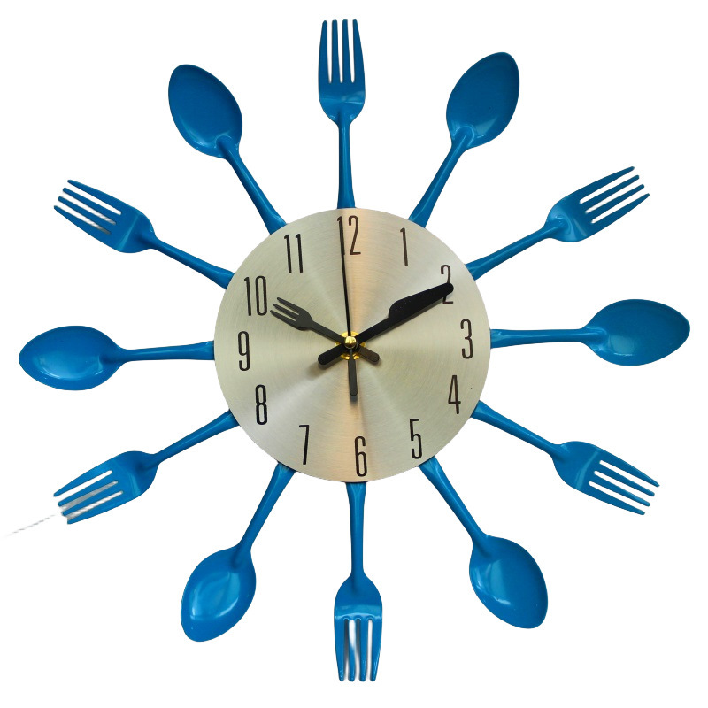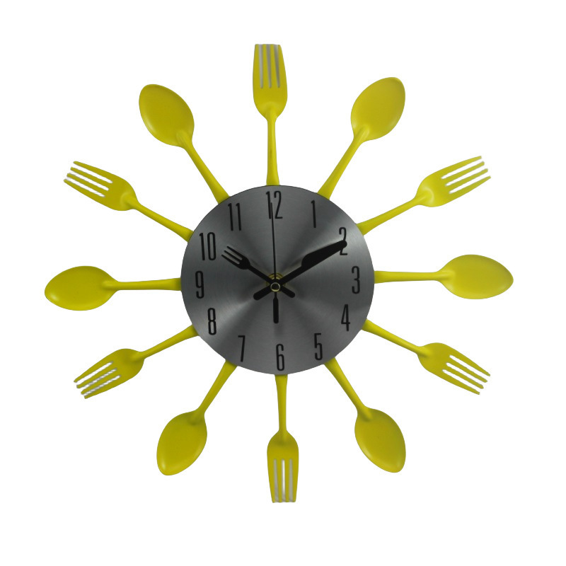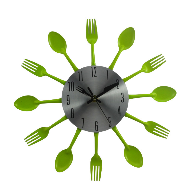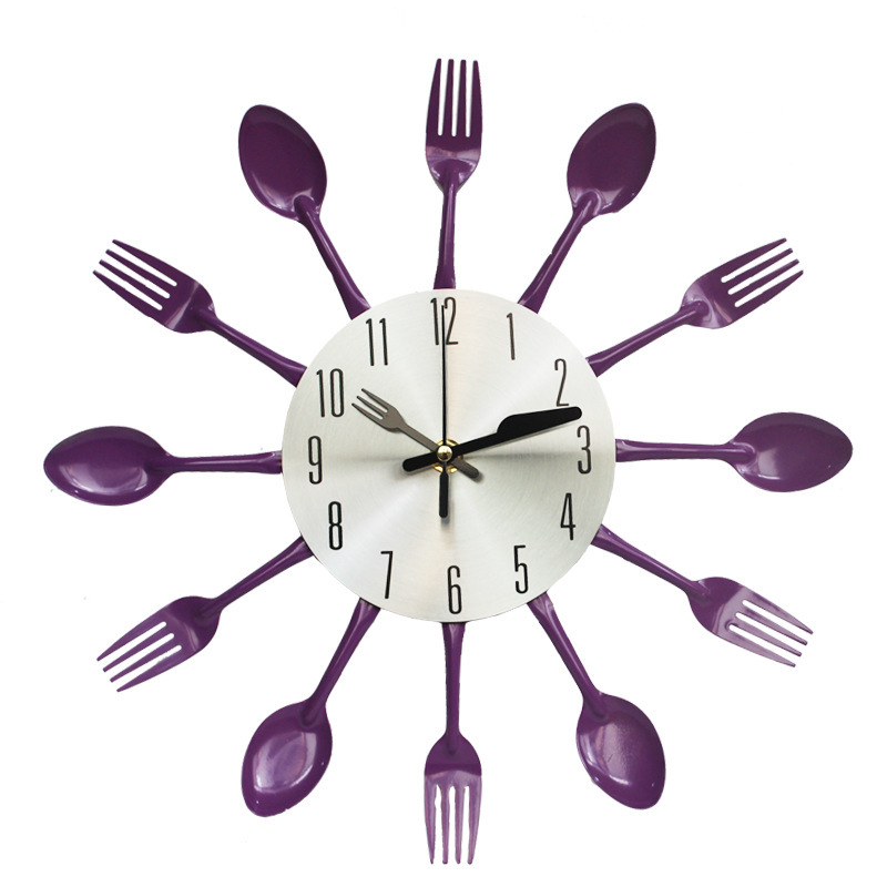 금속 스테인레스 스틸 나이프와 포크 시계 홈 장식 선물 공예 창조적 인 철 금속 입구 침묵 벽 시계