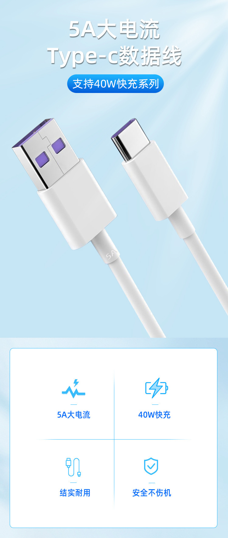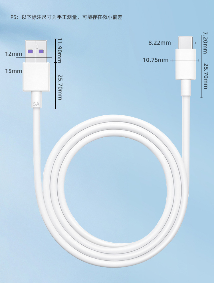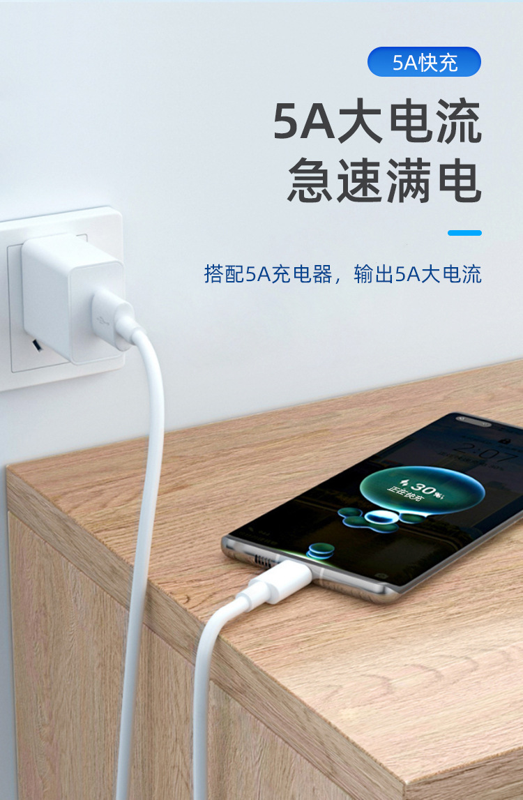 도매 VIVOPPO Xiaomi Huawei Meizu TypeC 흰색 5A1 m 휴대 전화 플래시 충전 데이터 케이블