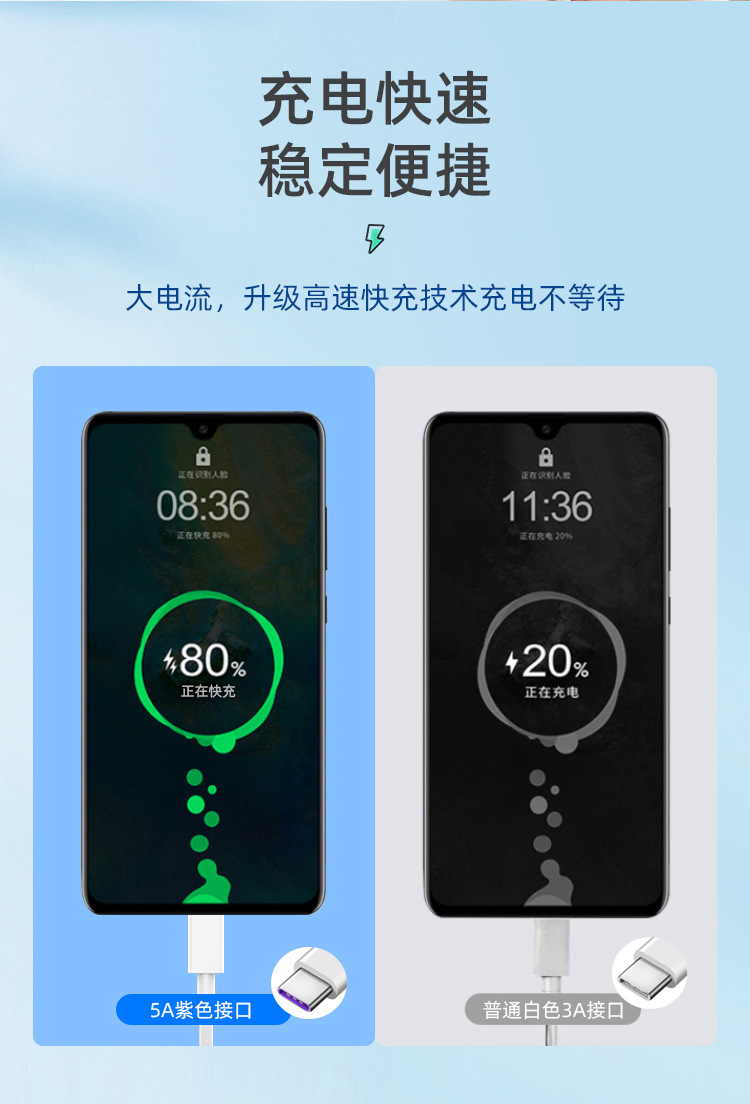 도매 VIVOPPO Xiaomi Huawei Meizu TypeC 흰색 5A1 m 휴대 전화 플래시 충전 데이터 케이블스토어 가기