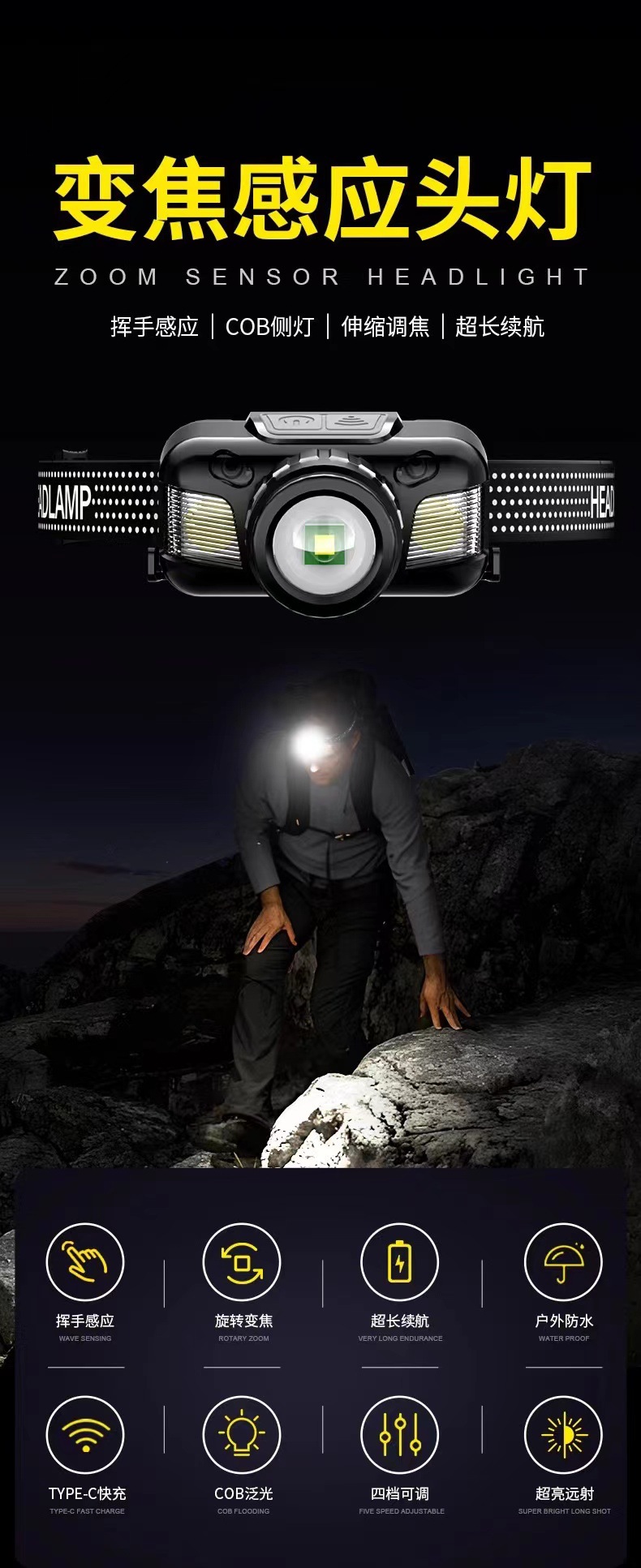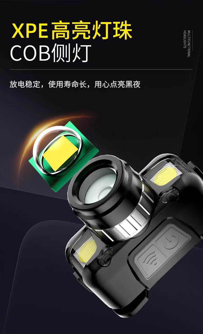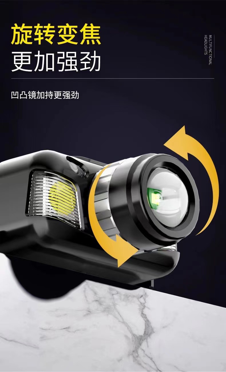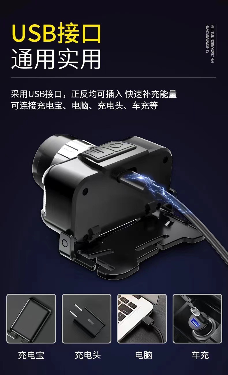 크로스보더 LED 강광 초강력 헤드램프 USB 충전식 야외 줌 기능 장거리 인기 강광 헤드램프 긴 배터리 수명 도매스토어 가기
