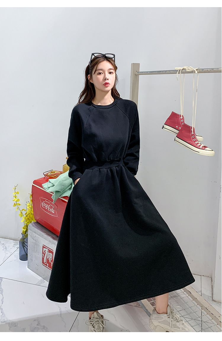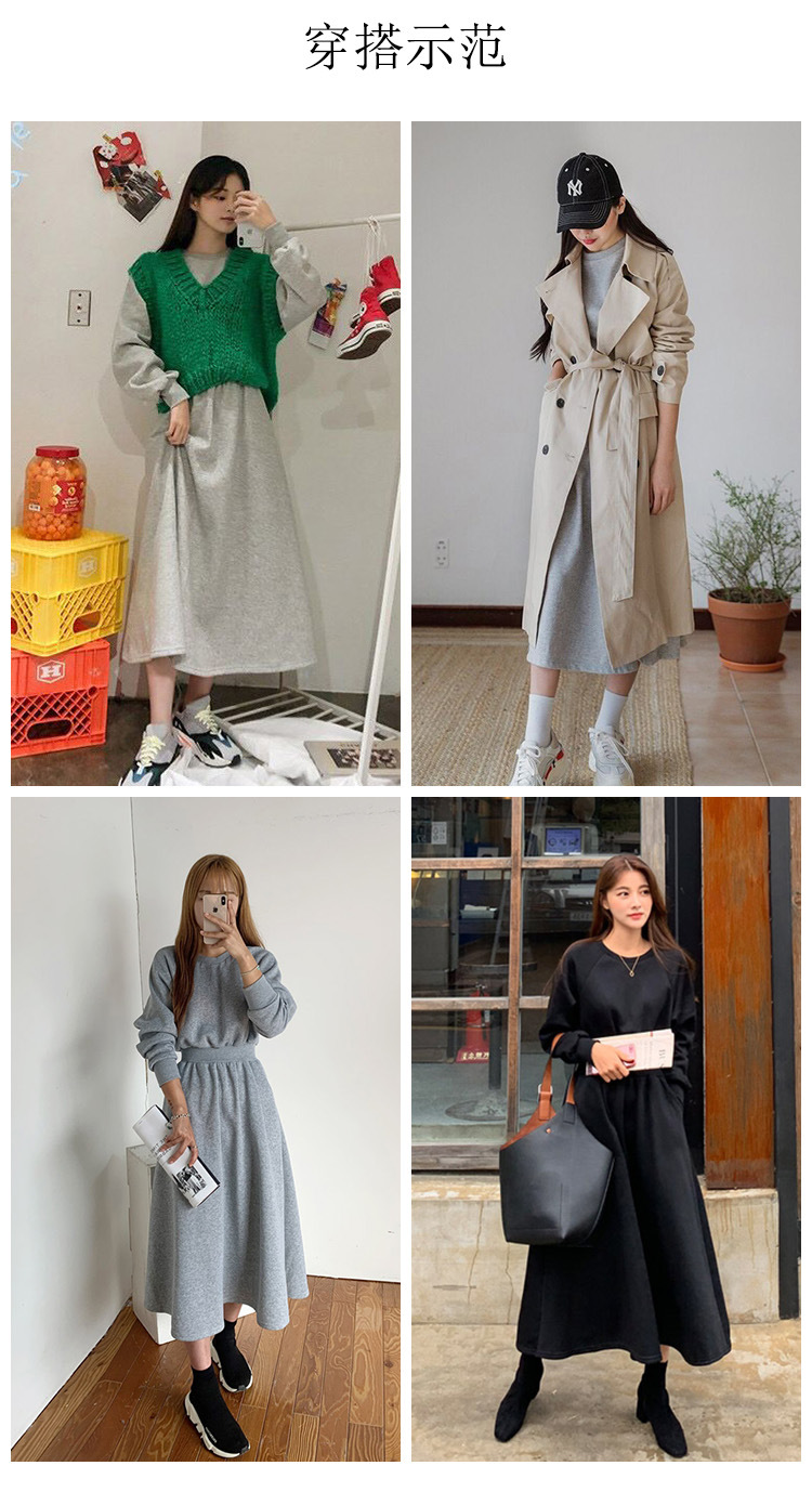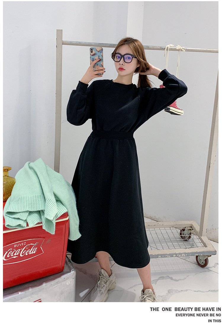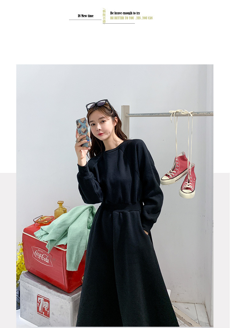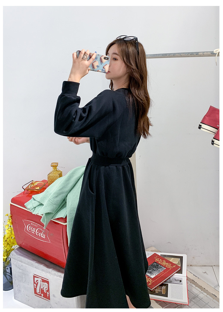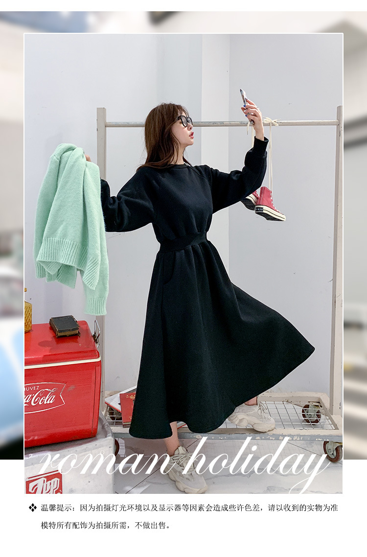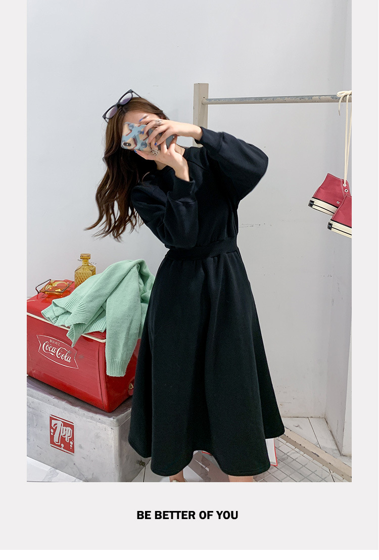 국경 간 가을과 겨울 새로운 한국식 긴팔 서양식 시대 감소 예술적 슬리밍 큰 스윙 허리 긴 땀 원피스 여성스토어 가기